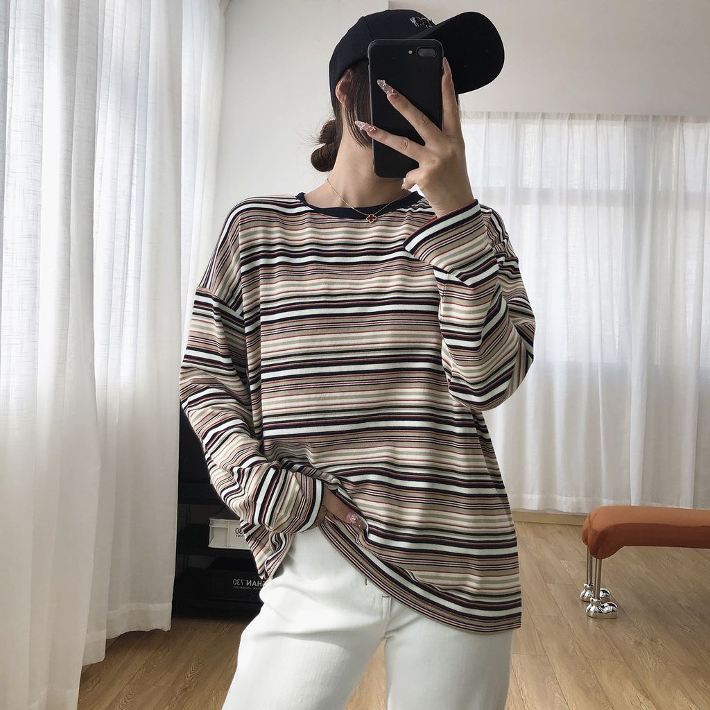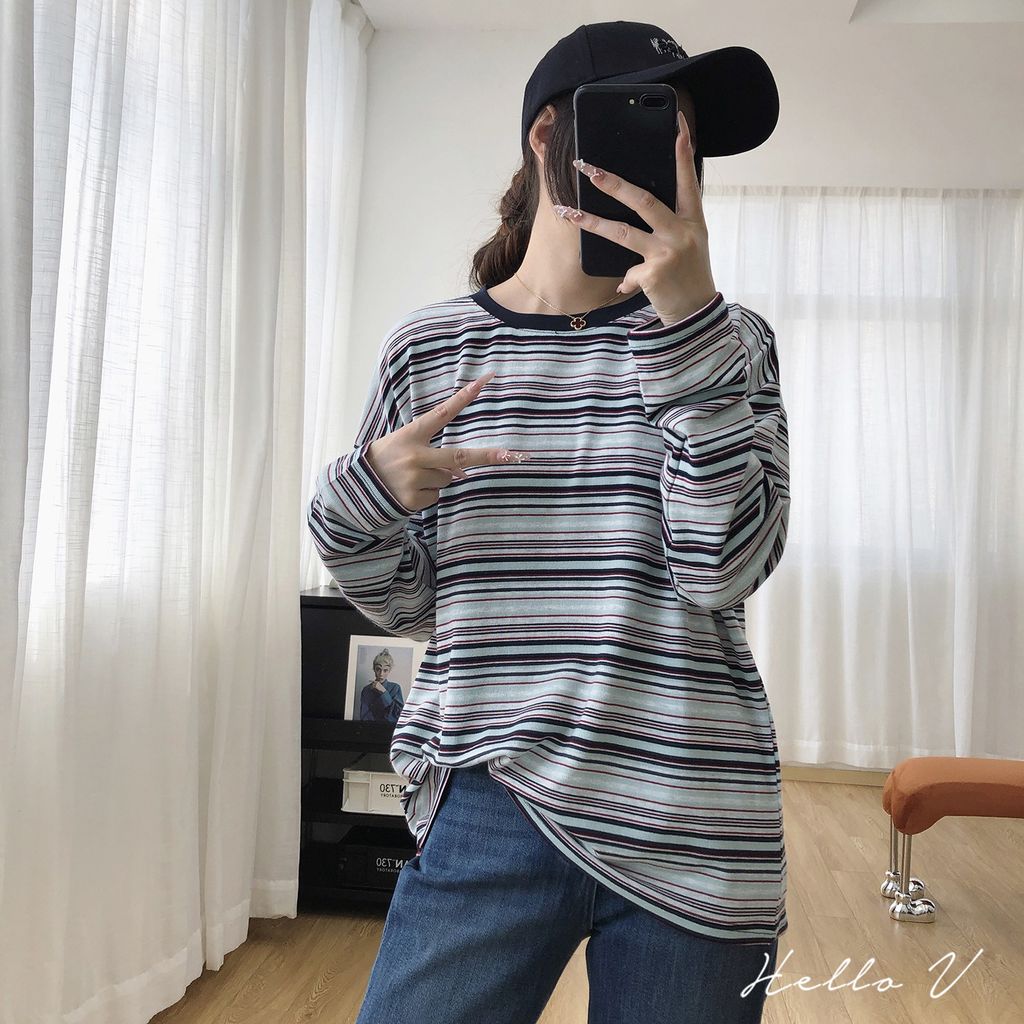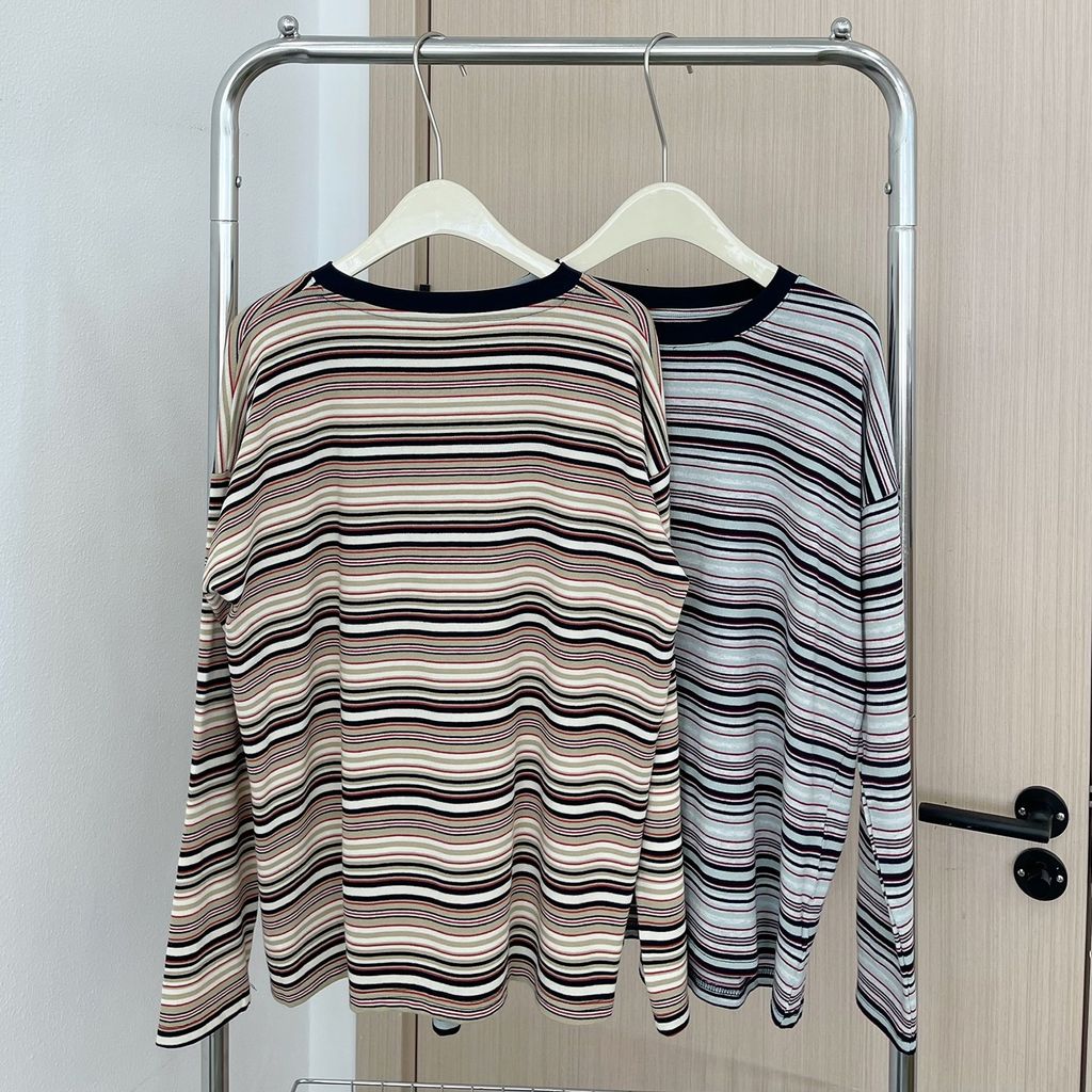 復古撞色條紋上衣 *咖藍*【N1010-22】