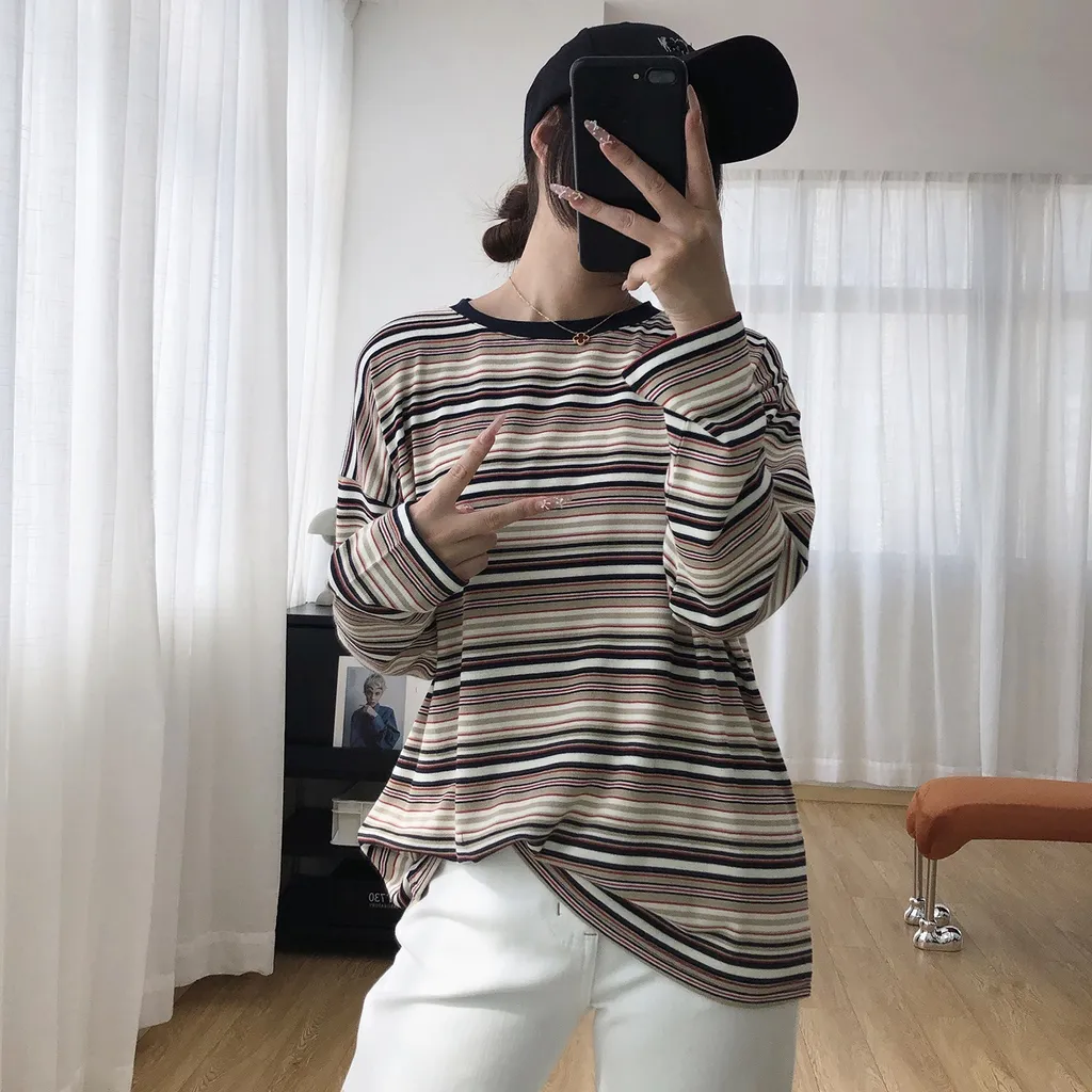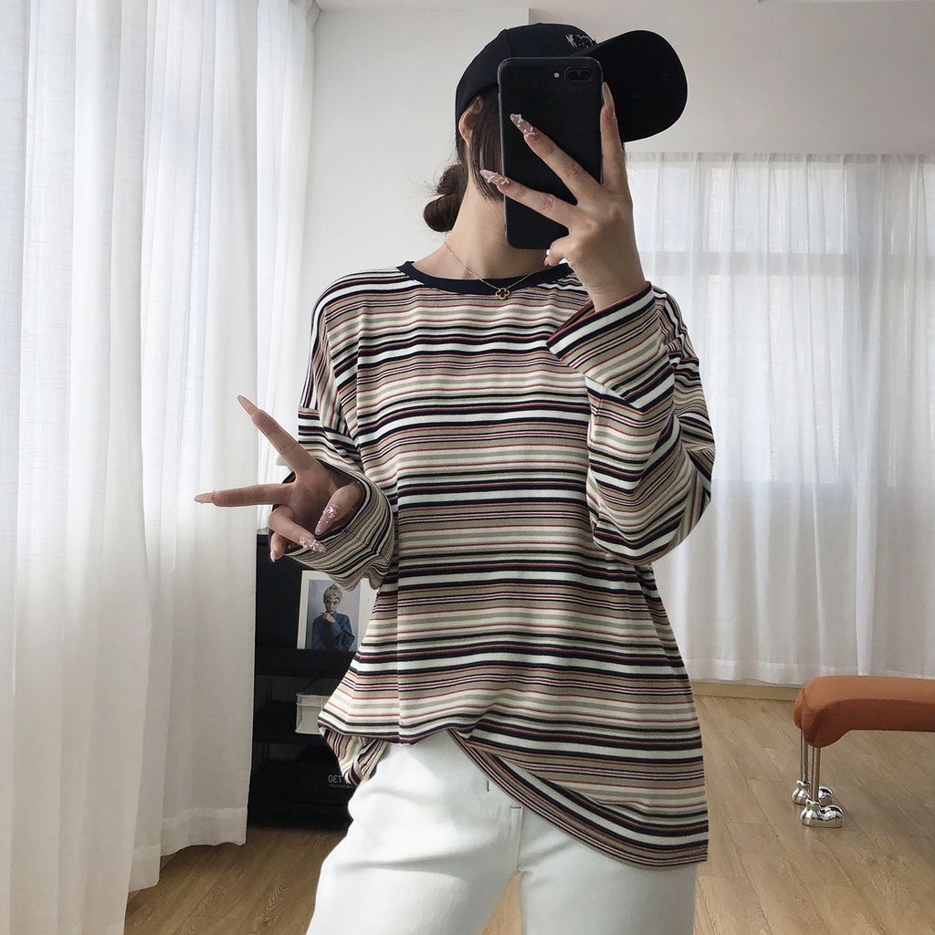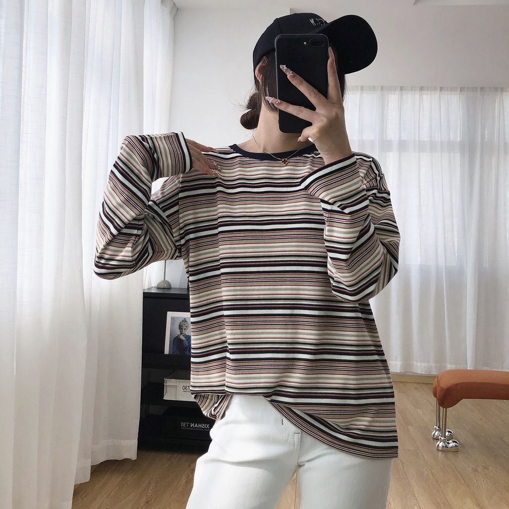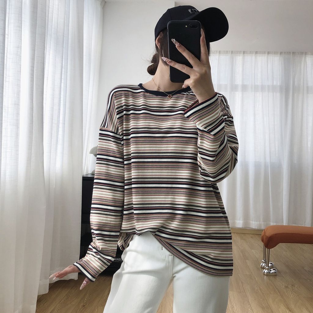 復古撞色條紋上衣 *咖藍*【N1010-22】