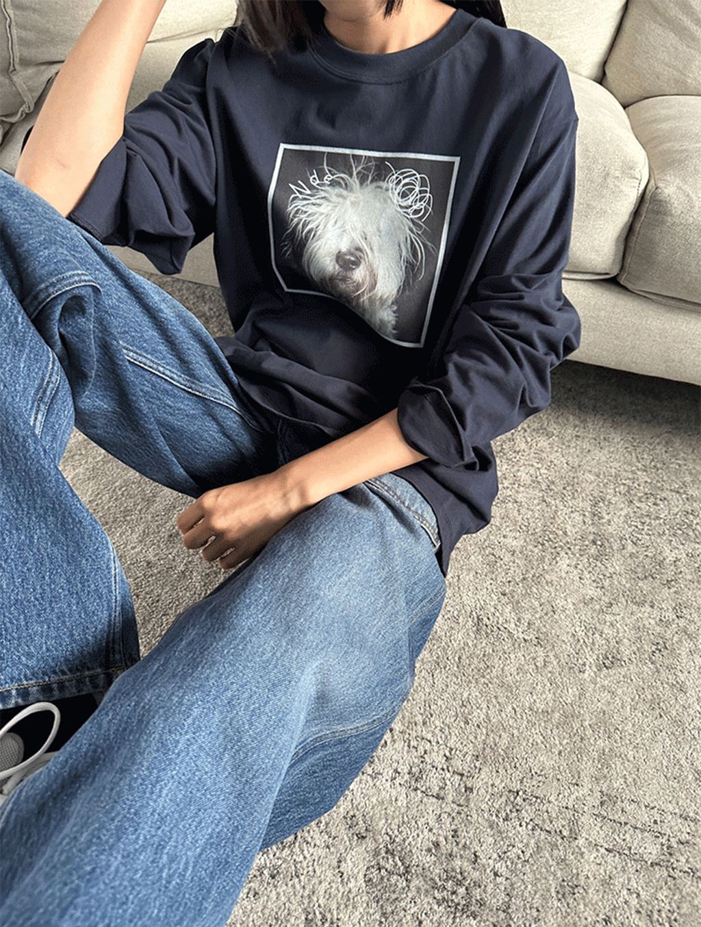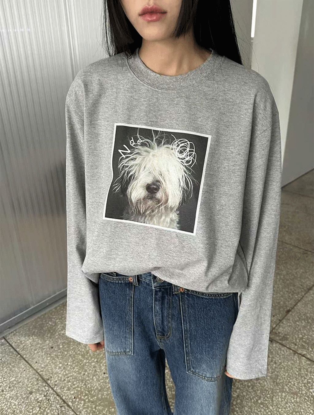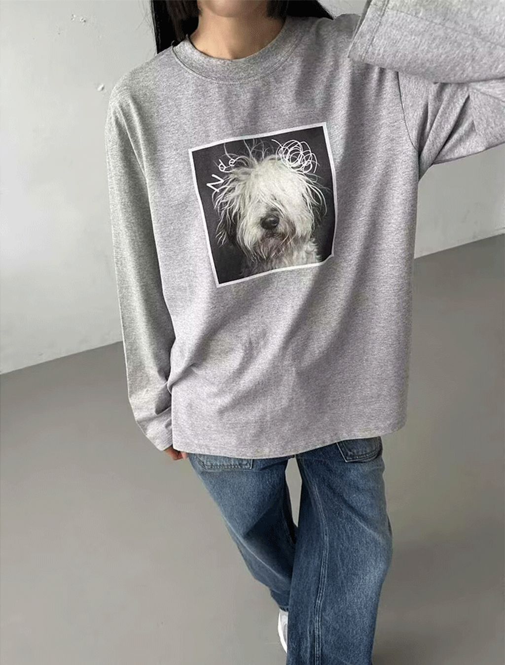 正韓 俏皮小狗狗圖樣好搭長T*白灰藍*【N1010-121】