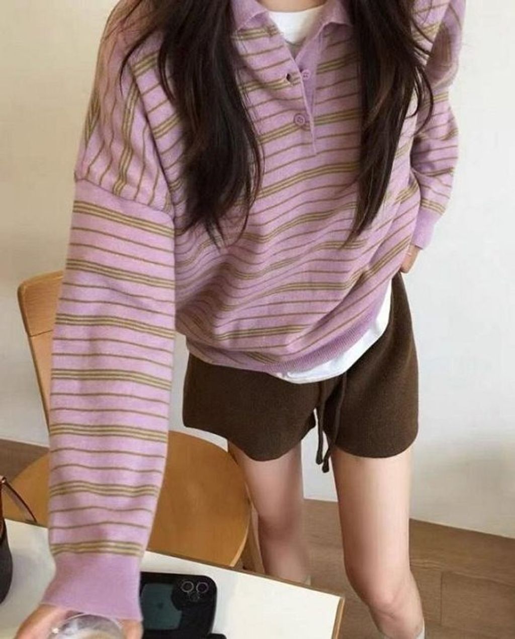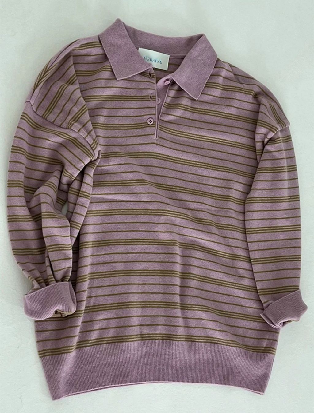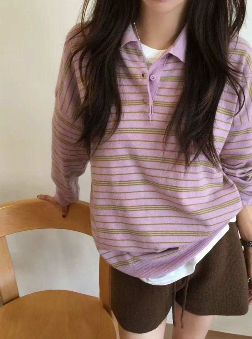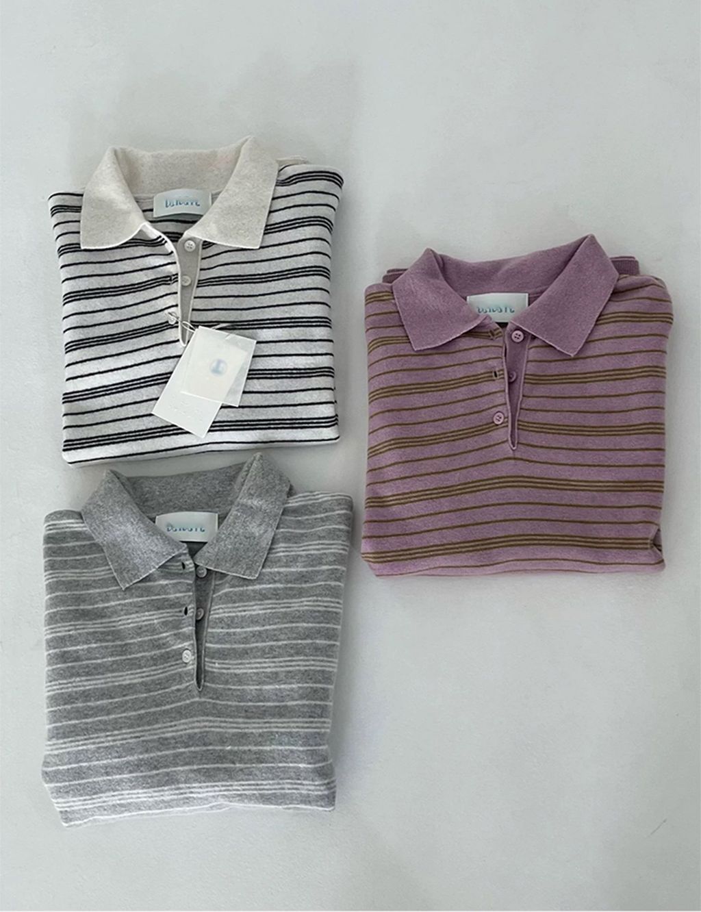 正韓 俏皮梅粉色條紋POLO質感上衣*粉*【N1010-125】