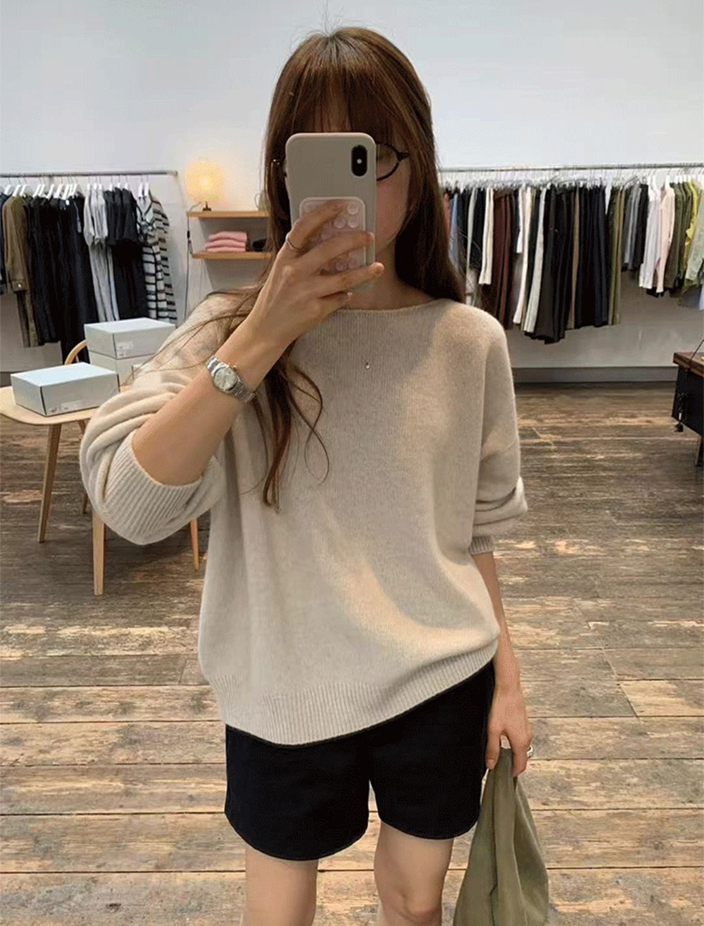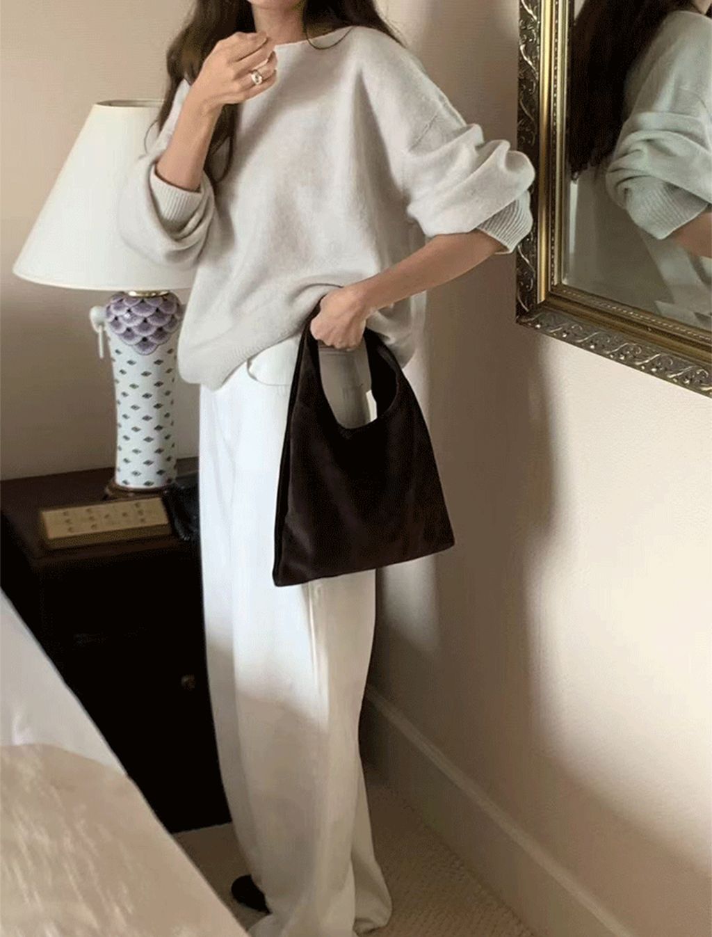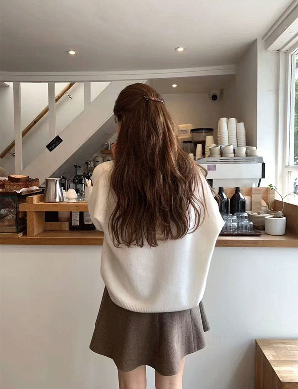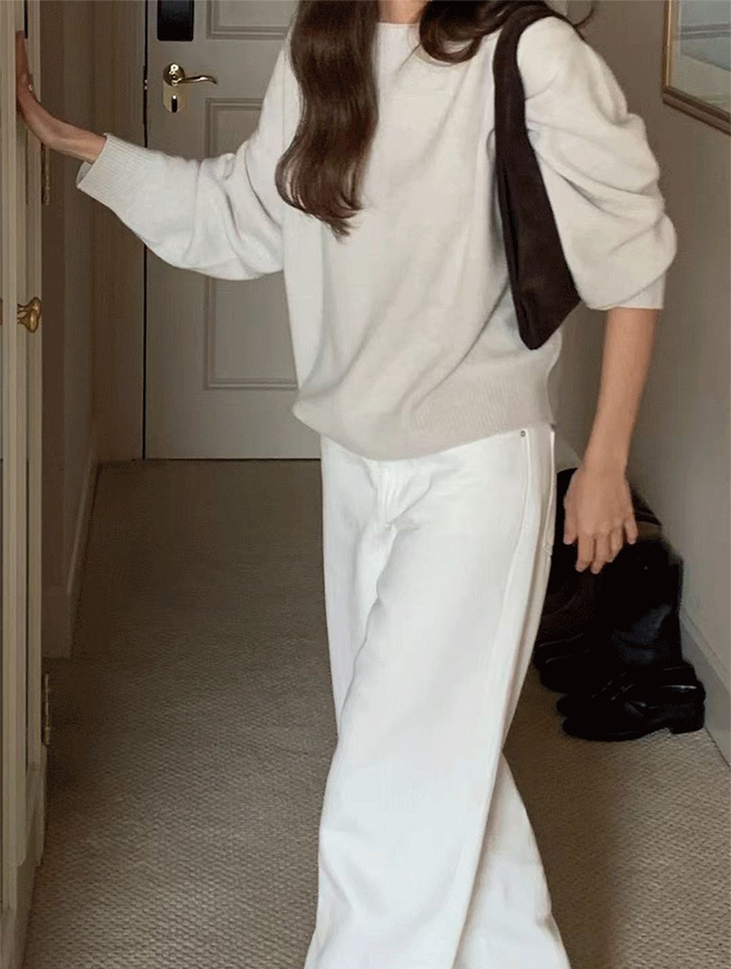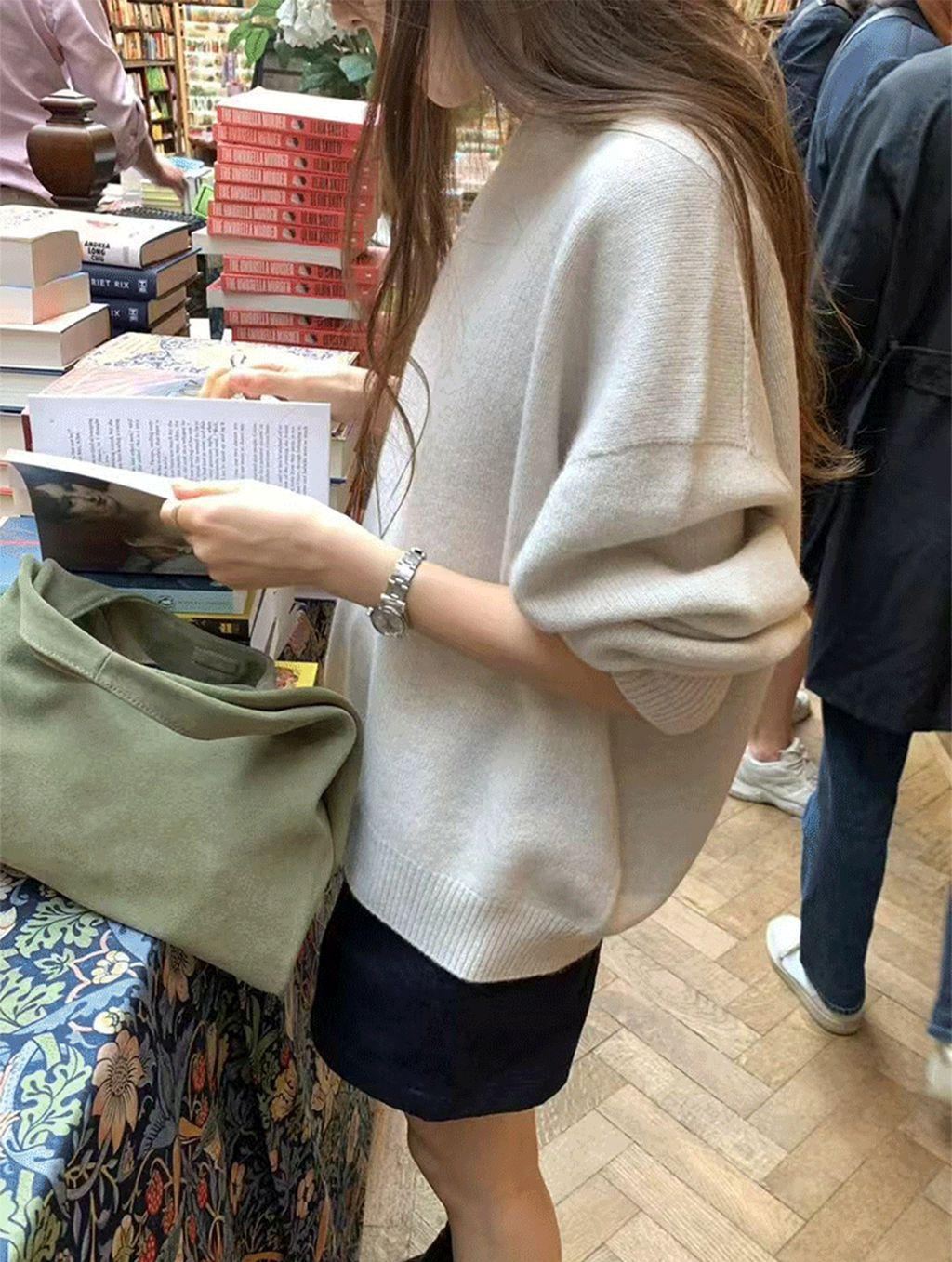 正韓 溫柔氣質女孩寬鬆感針織羊毛毛衣*灰燕麥白*【N1010-134】