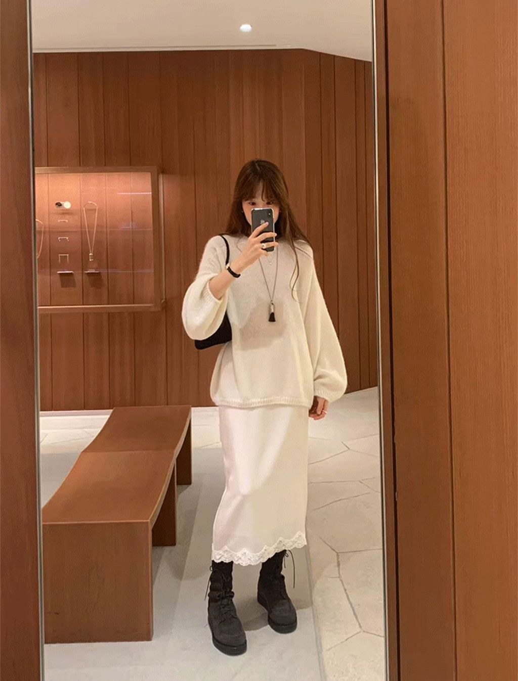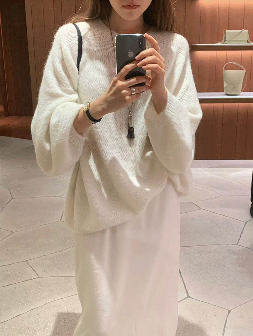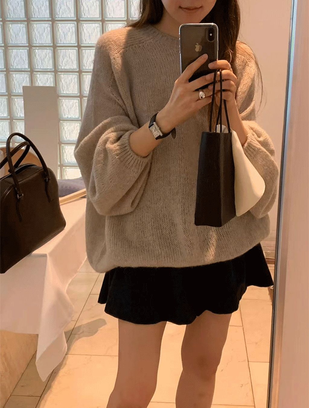 正韓 甜美氣質慵懶風質感羊毛針織毛衣*白燕麥*【N1010-115】