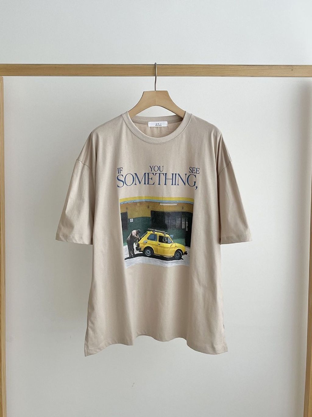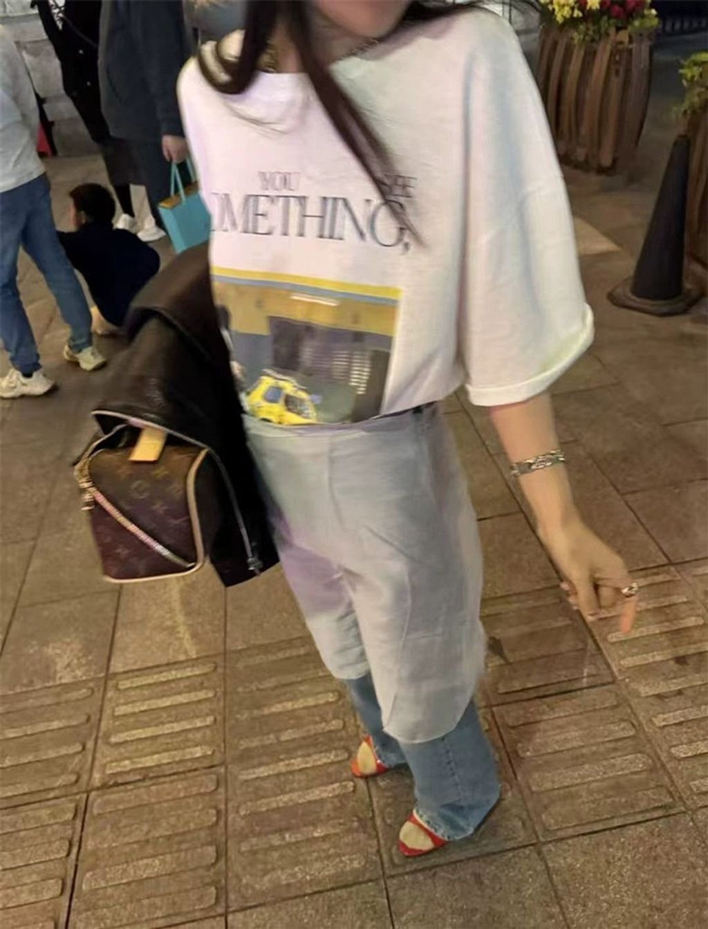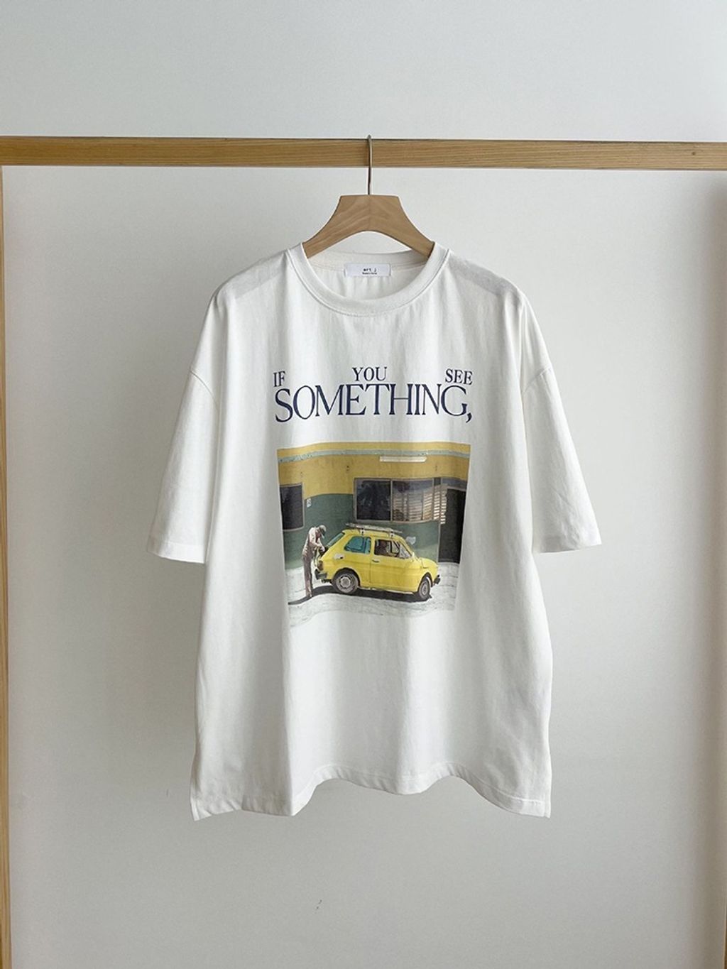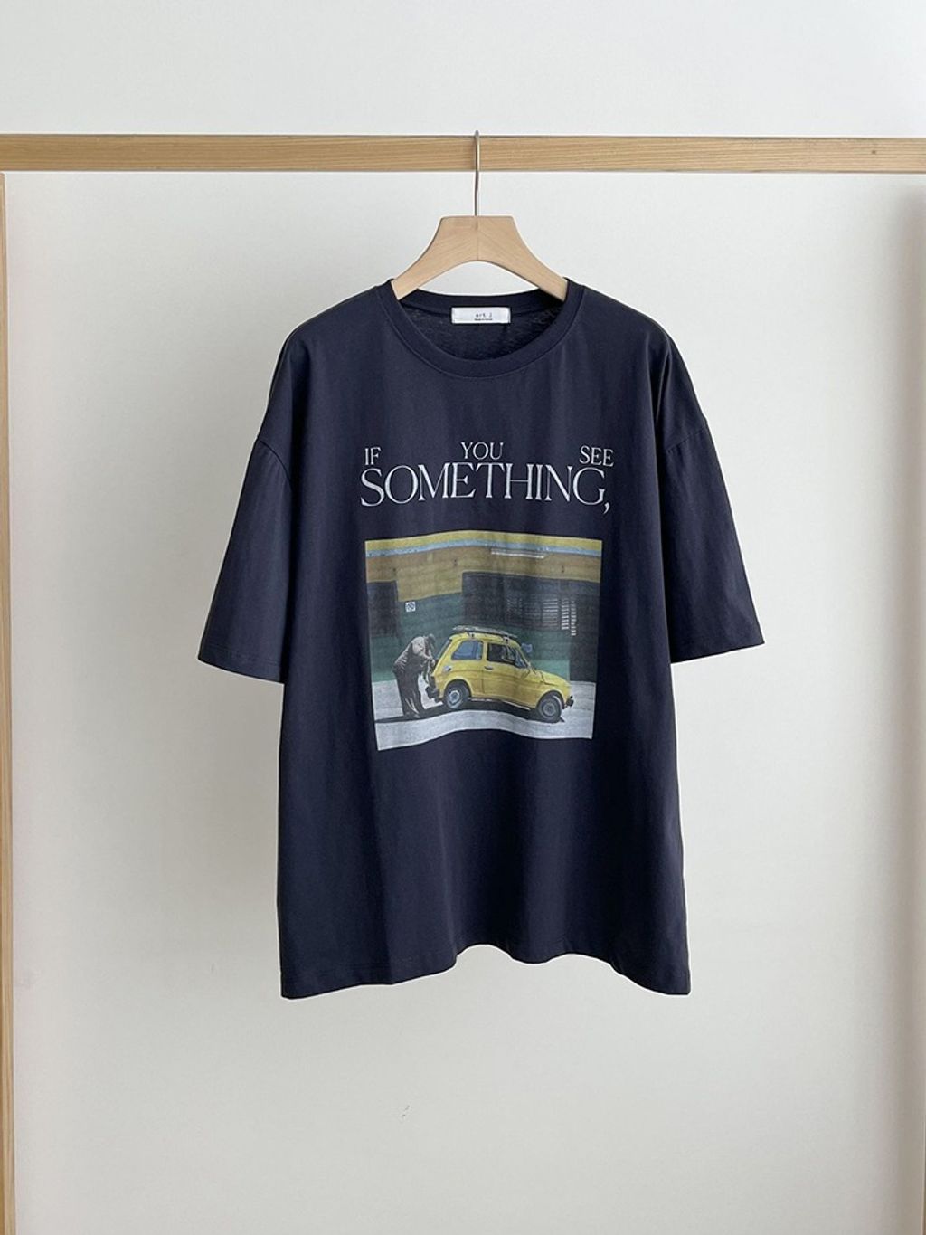 正韓 美式時尚圖樣寬鬆感短T*深藍杏白*【N0731-04】