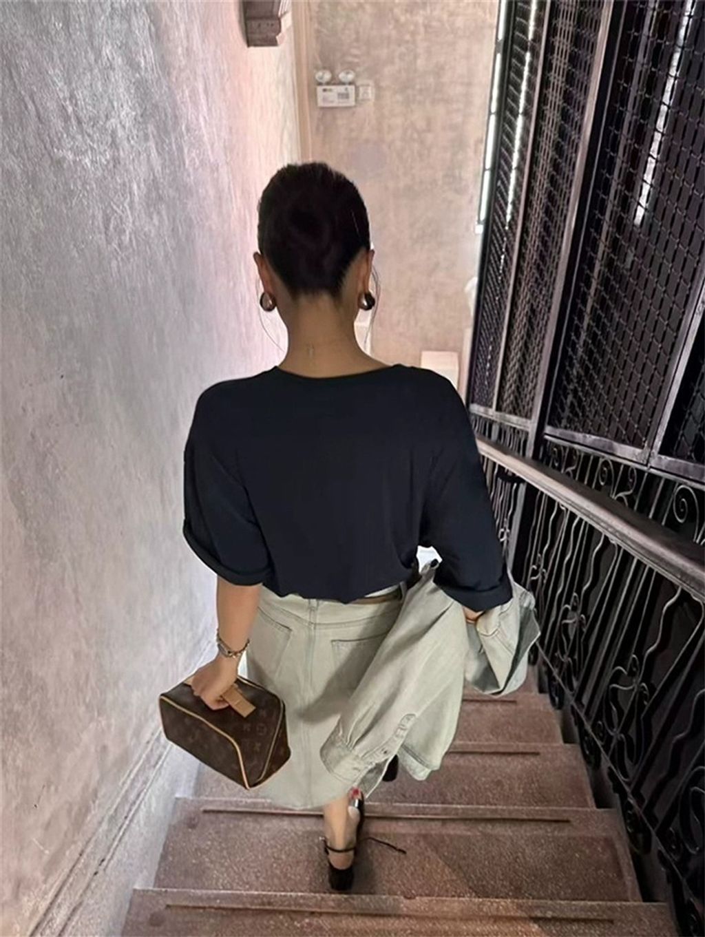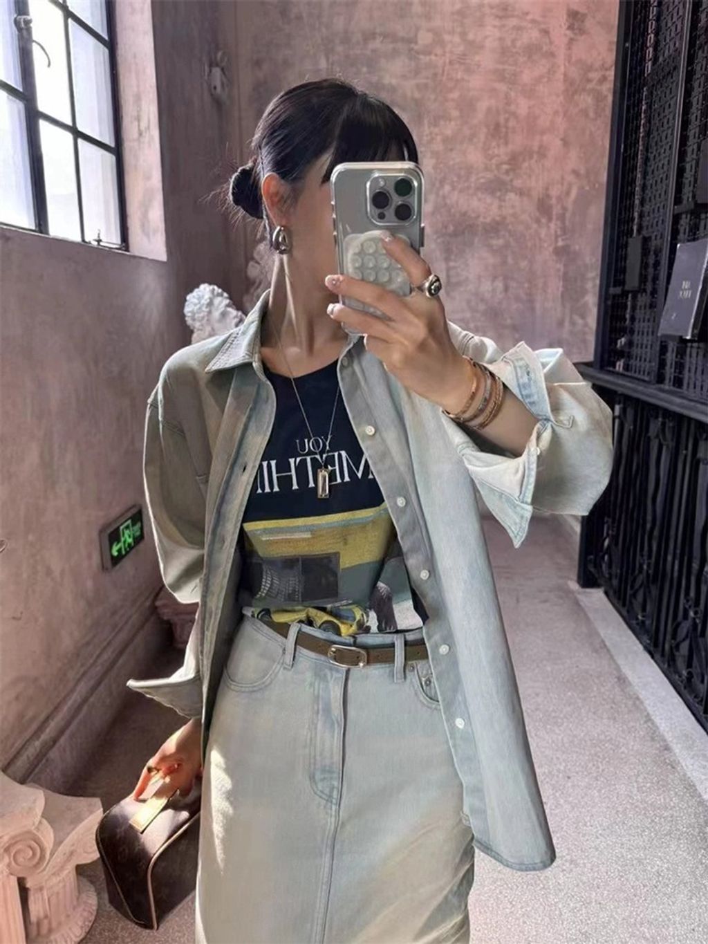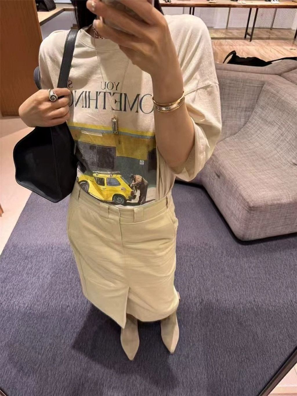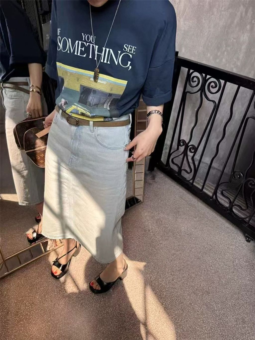 正韓 美式時尚圖樣寬鬆感短T*深藍杏白*【N0731-04】