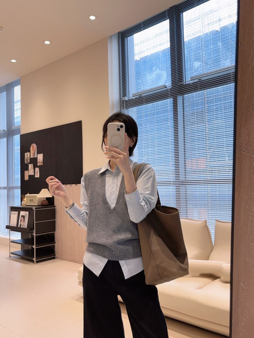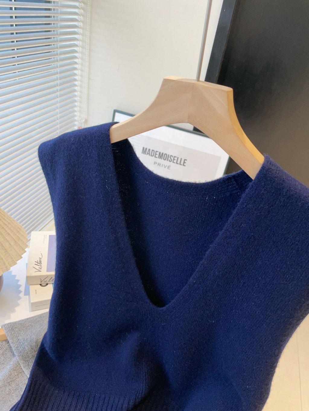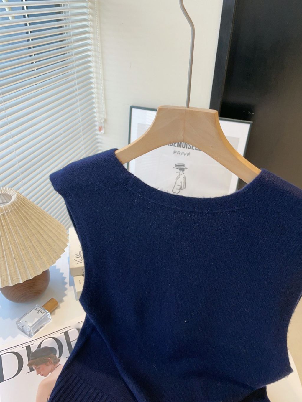 簡約U領設計感100%羊毛背心 *深藍灰*【N1010-08】