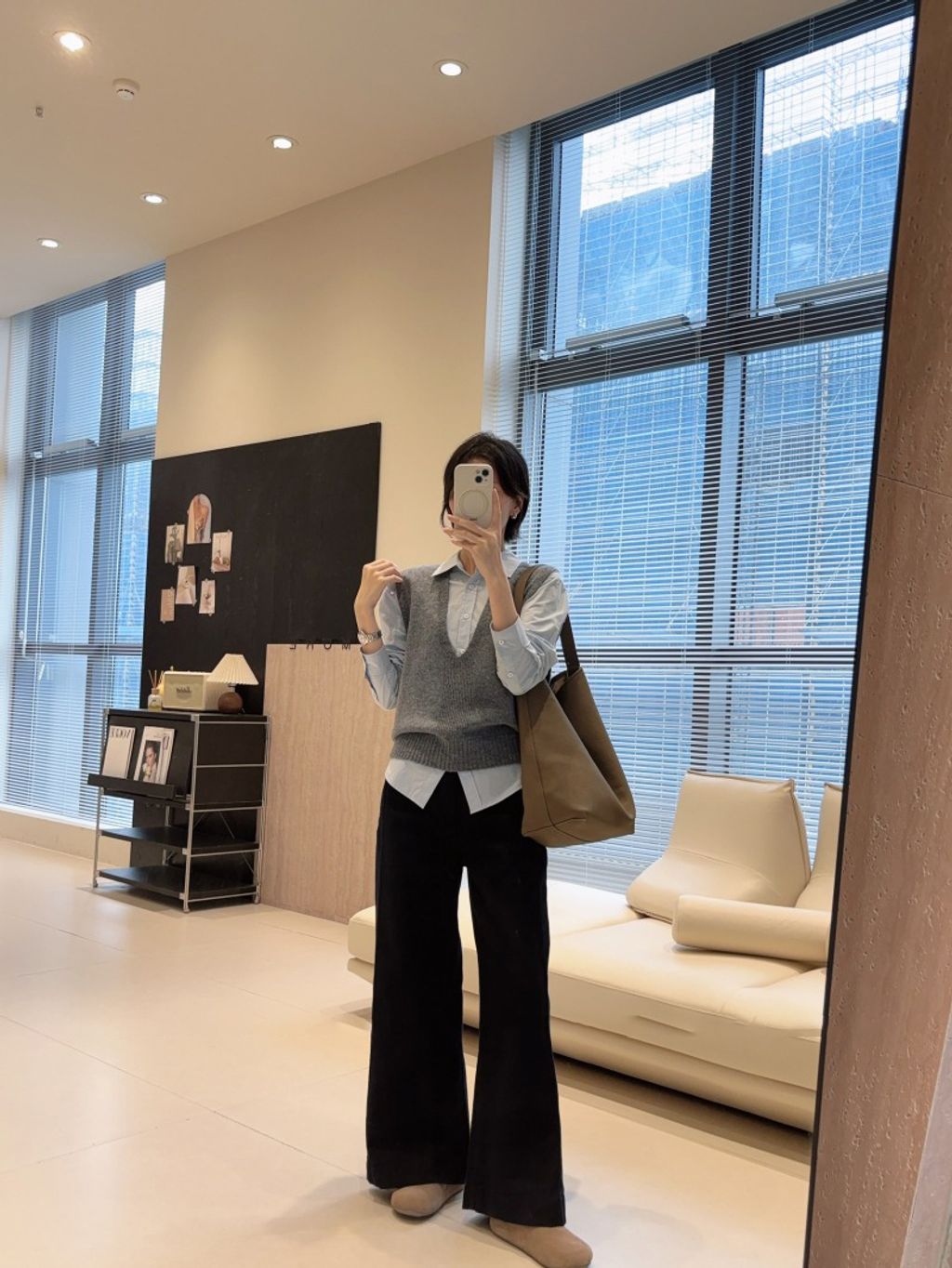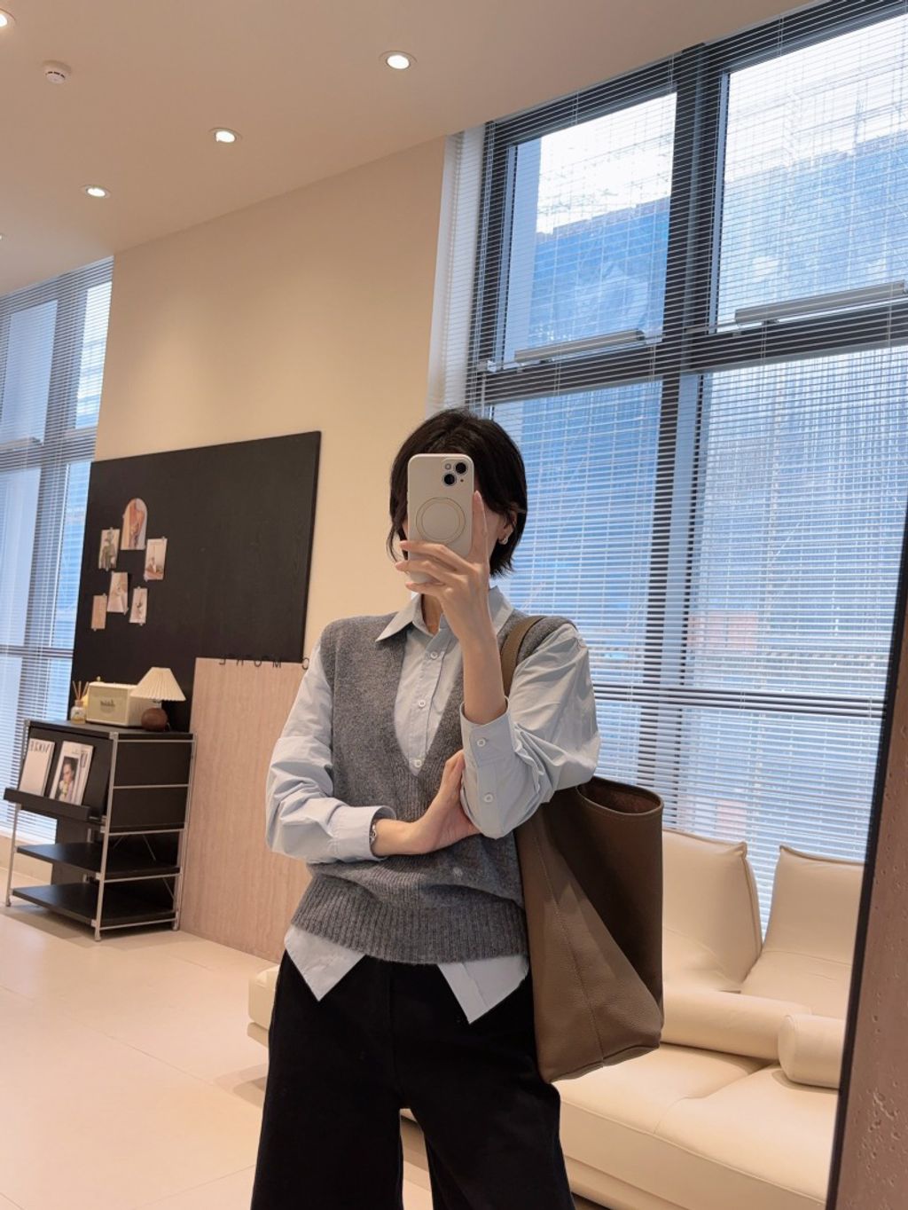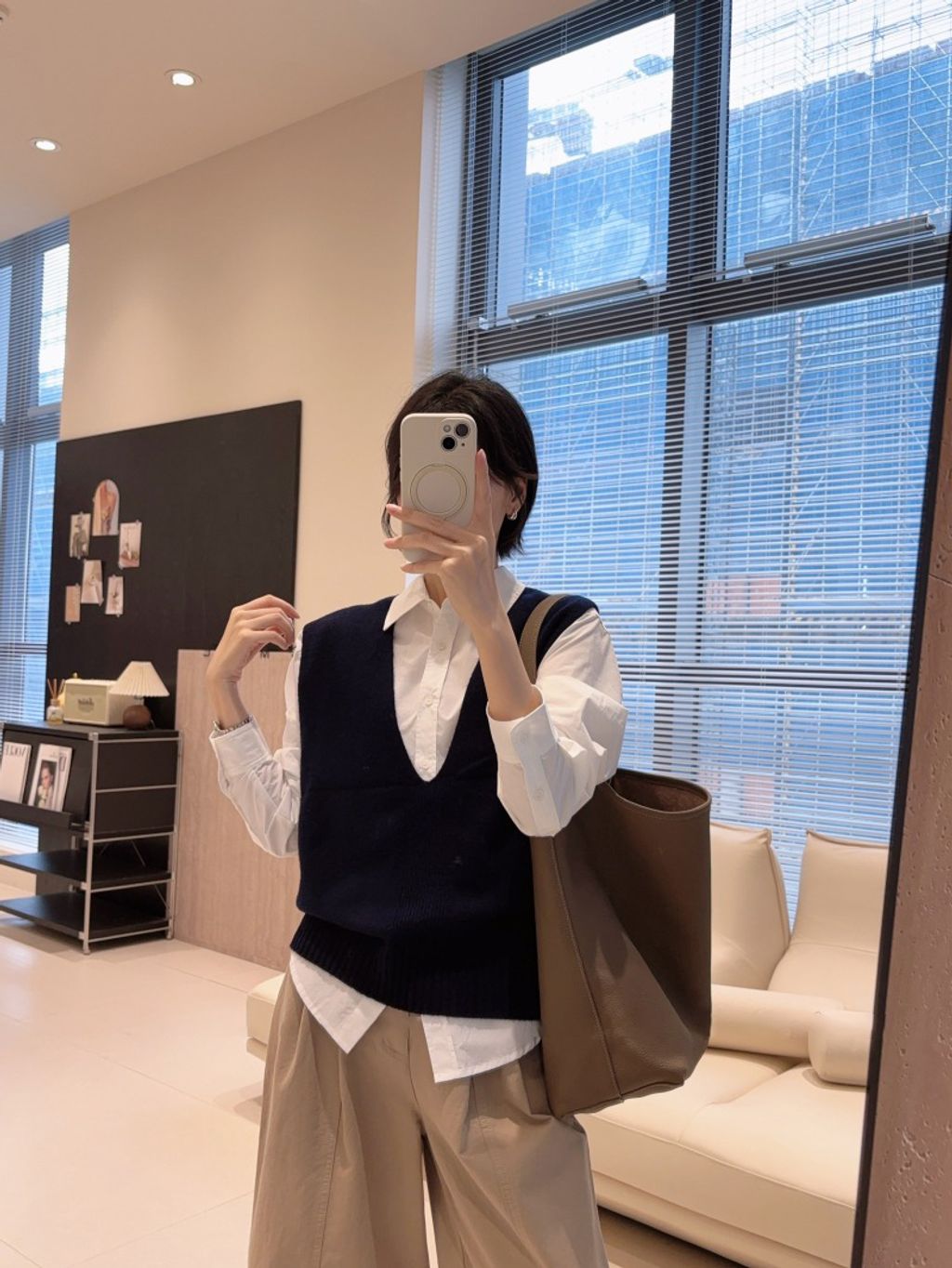 簡約U領設計感100%羊毛背心 *深藍灰*【N1010-08】