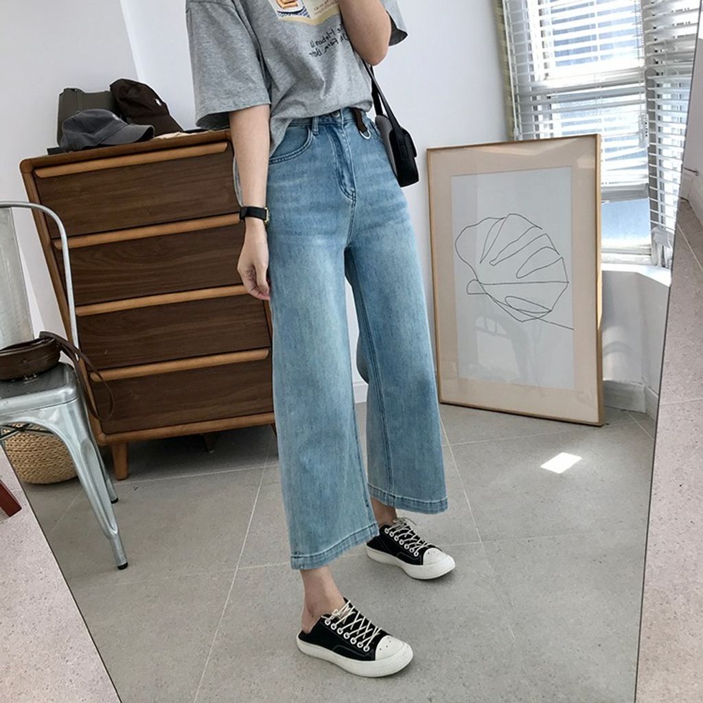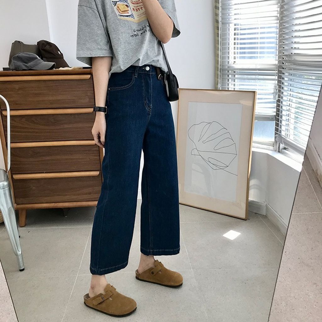 材質:棉彈牛仔布 水洗 寬褲 中高腰 顯瘦顯腿直 柔軟 有彈力