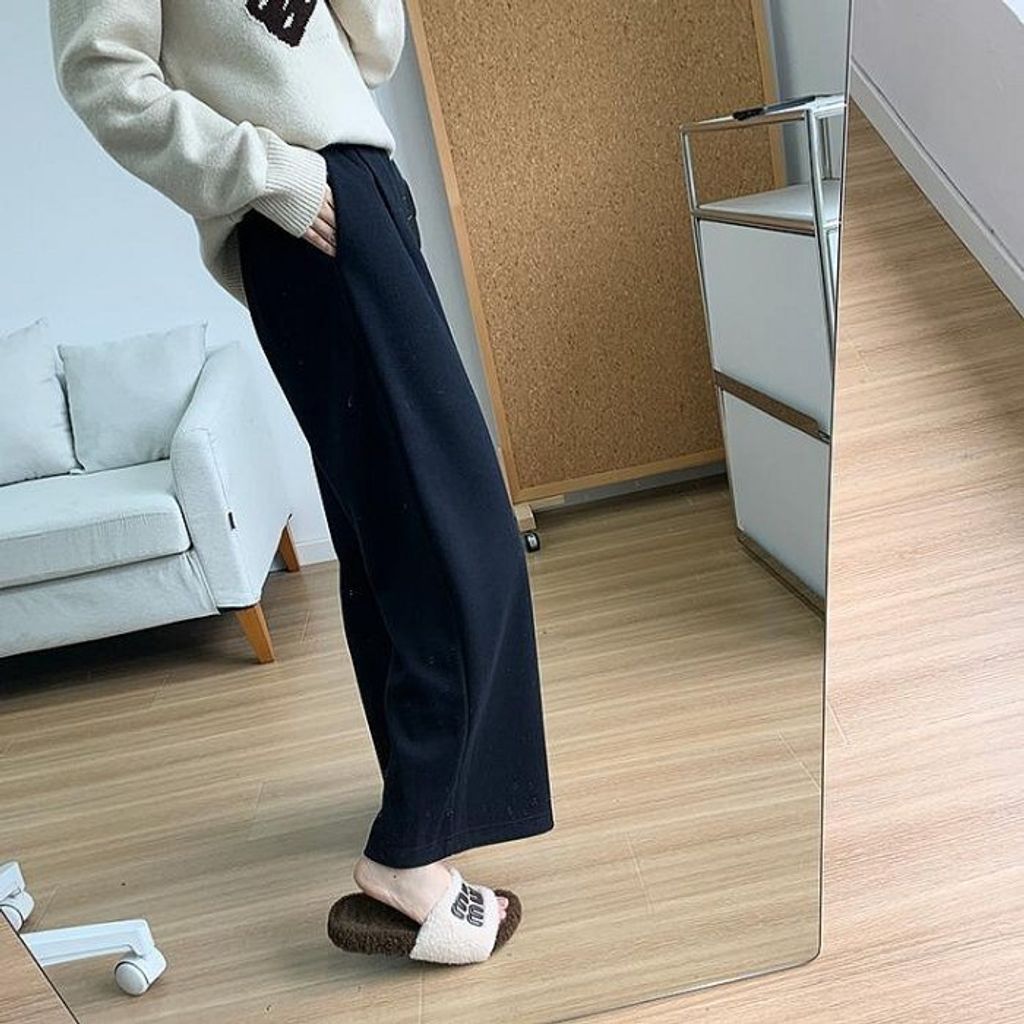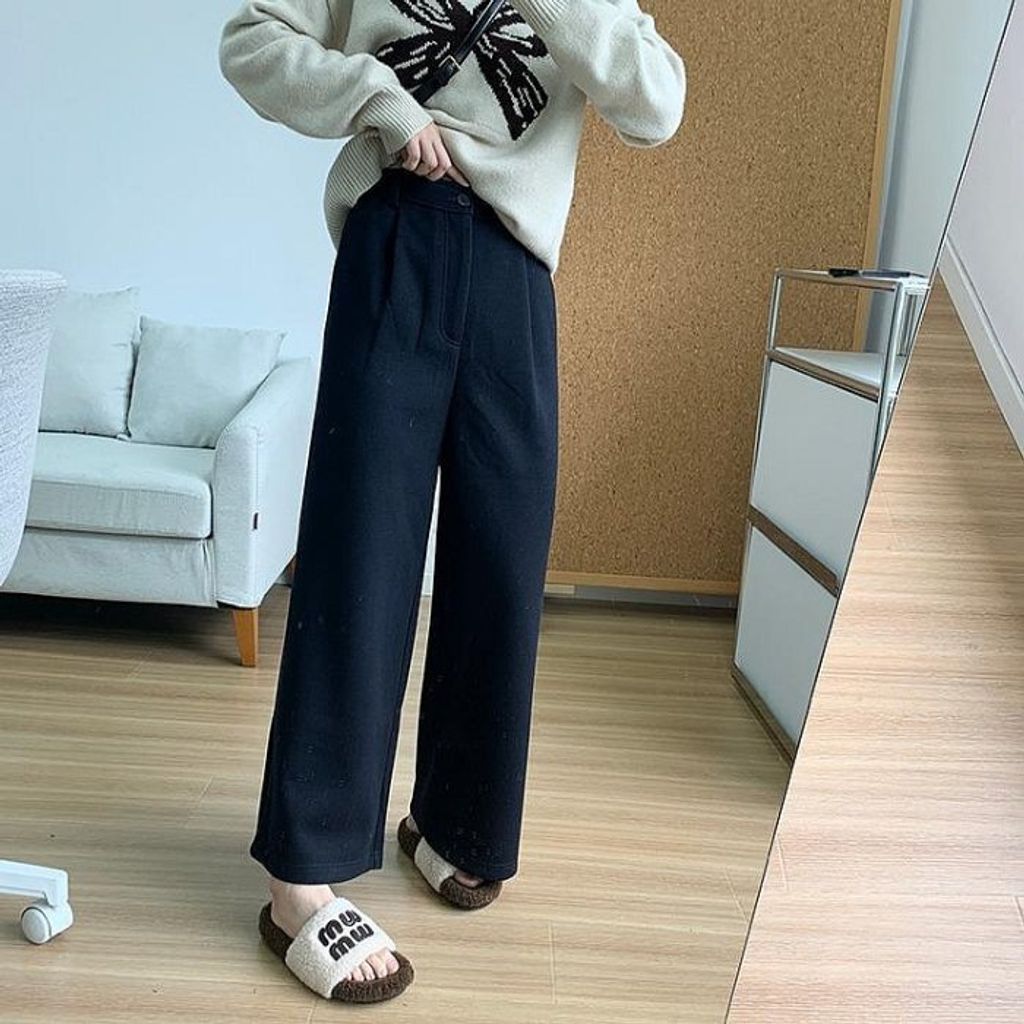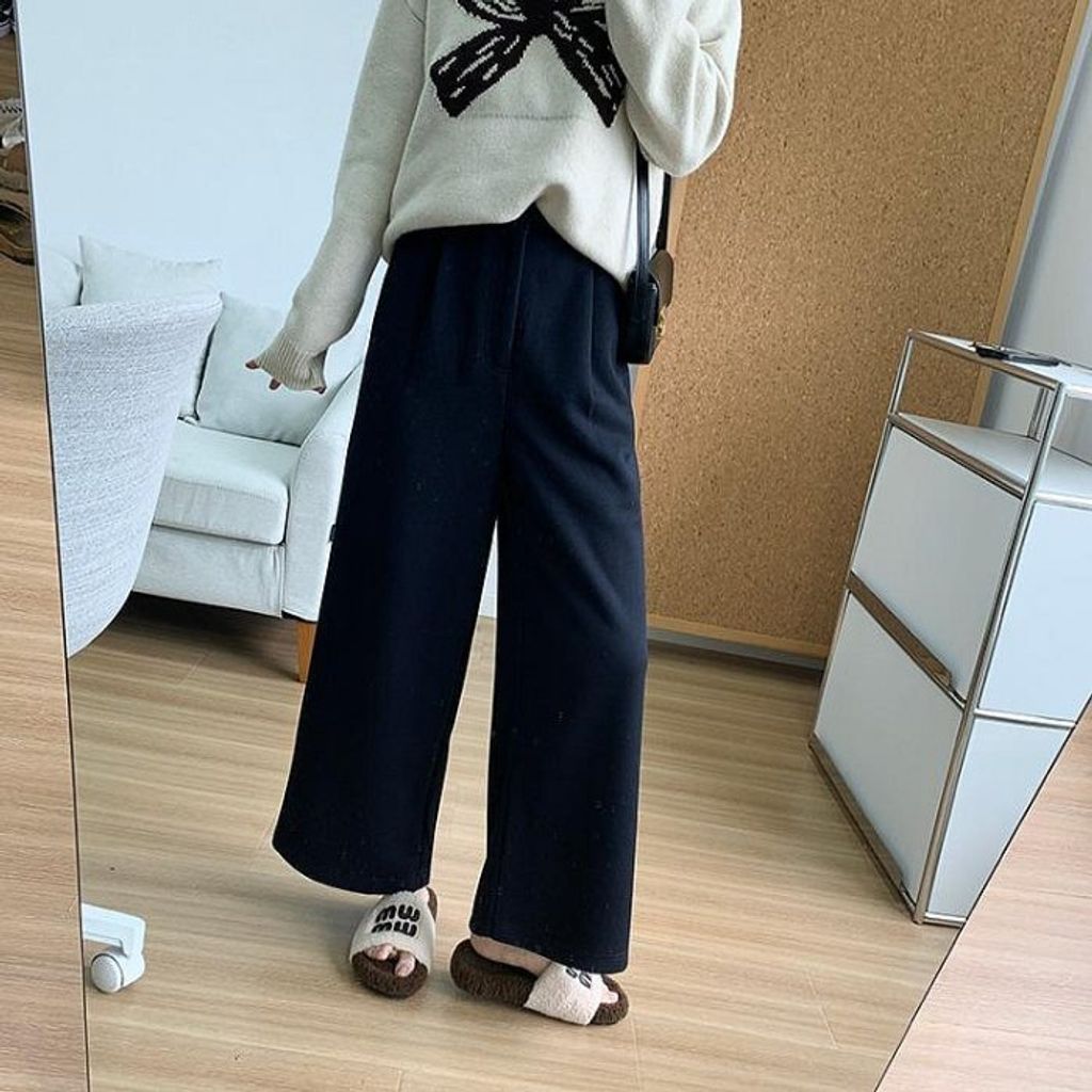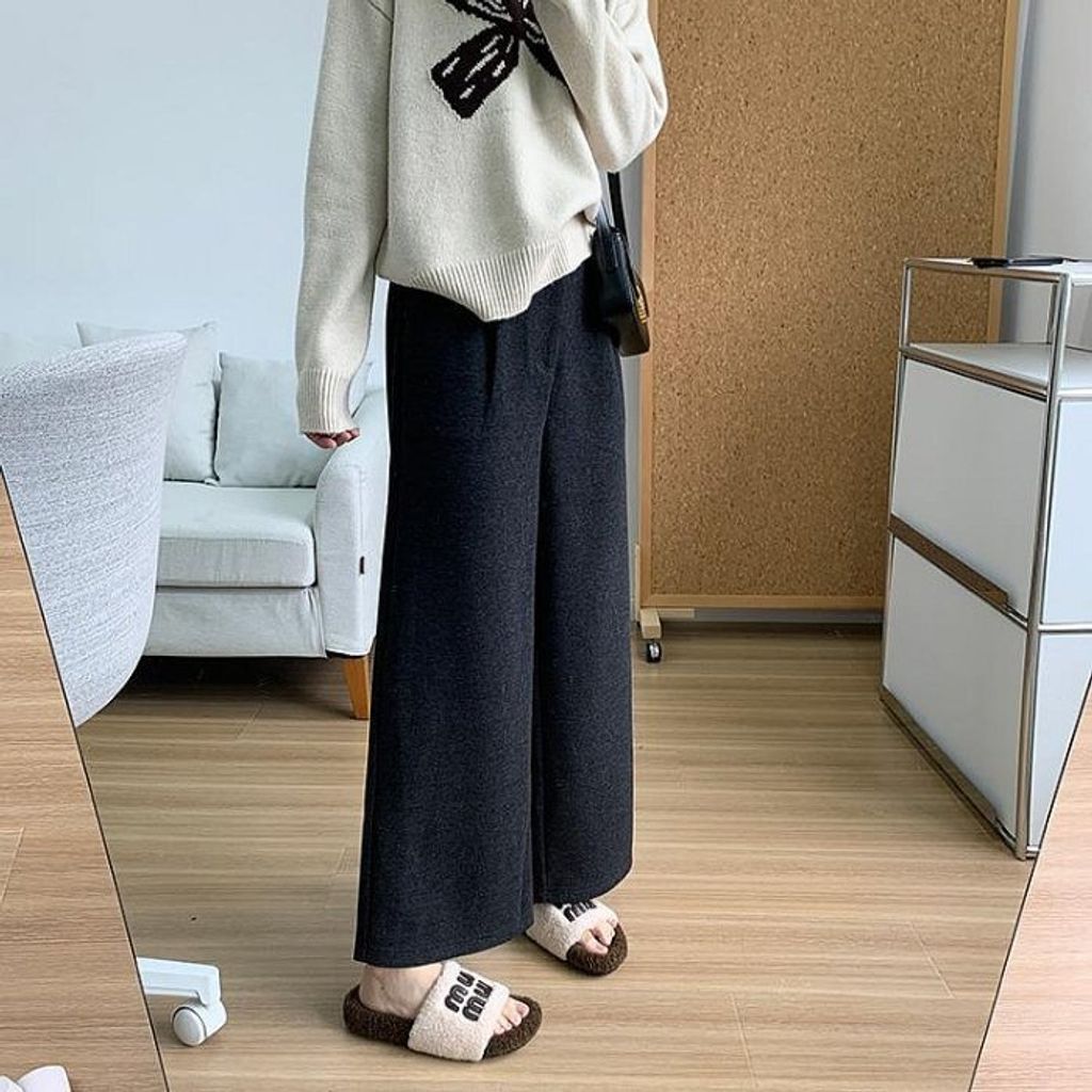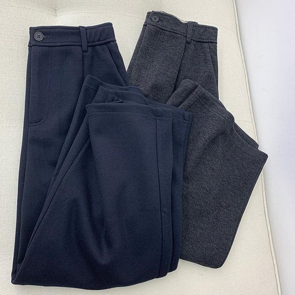 現貨 特價 韓國款 簡約氣質混羊毛修飾休閒寬褲*深灰深藍*【R1130-104】