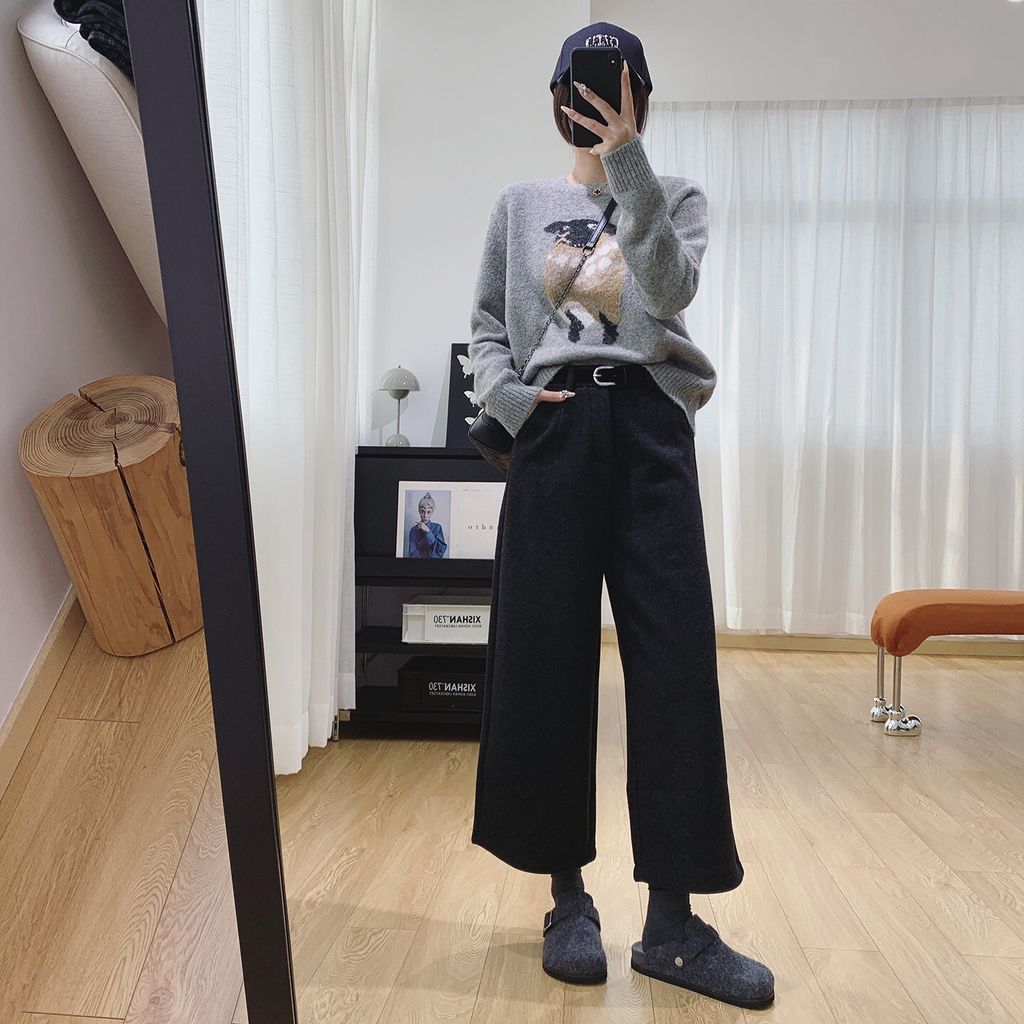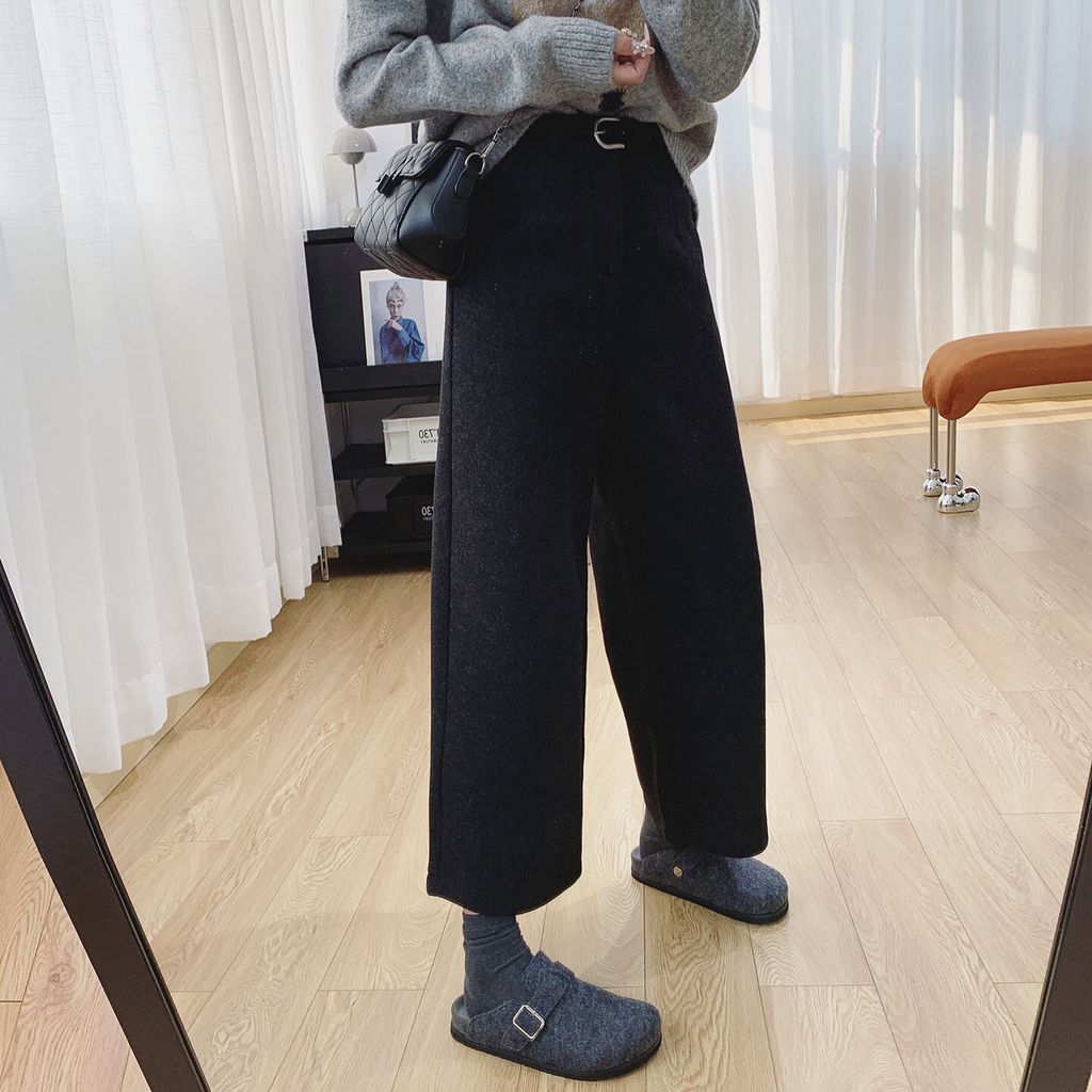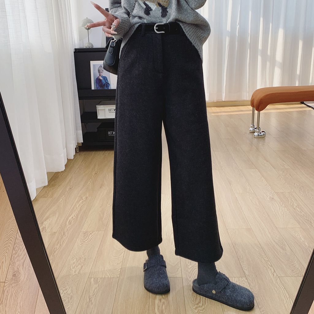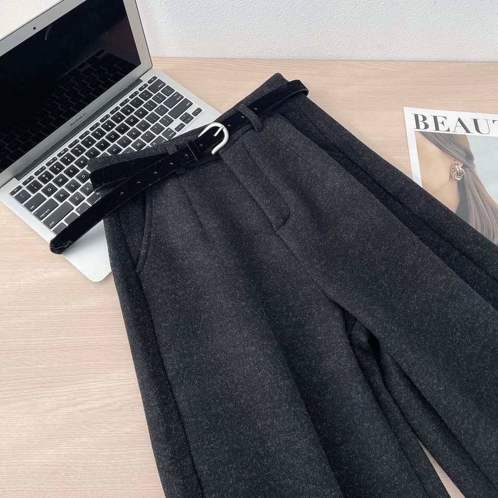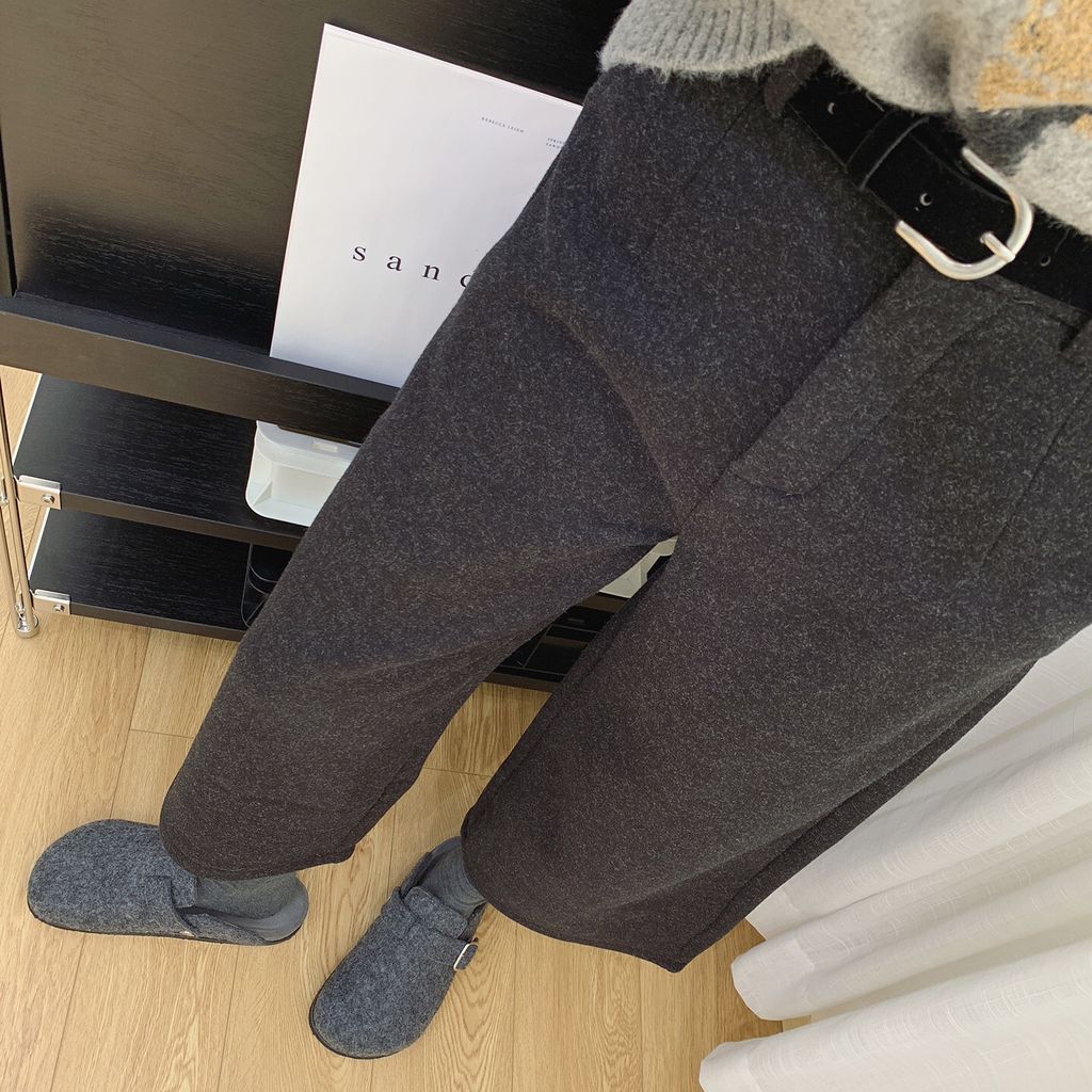 復古時尚加絨毛料寬鬆感顯瘦寬褲*深灰*【S0125-159】