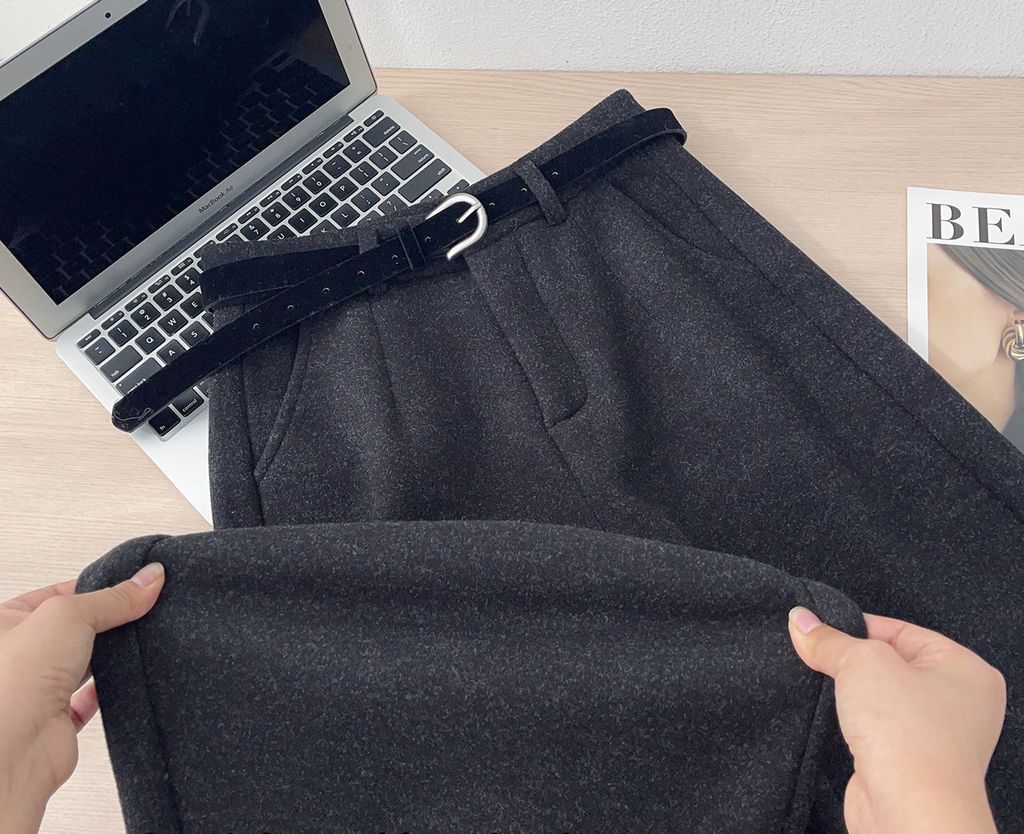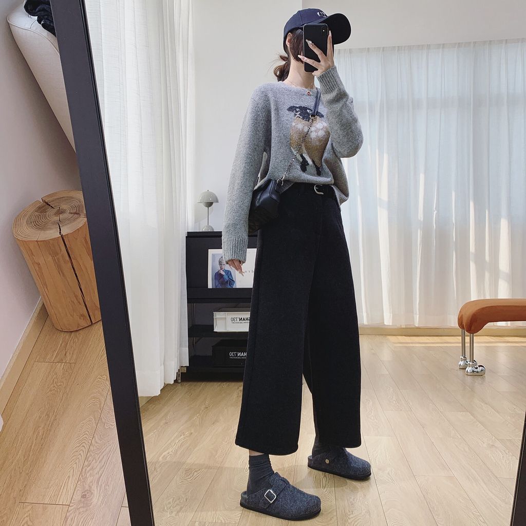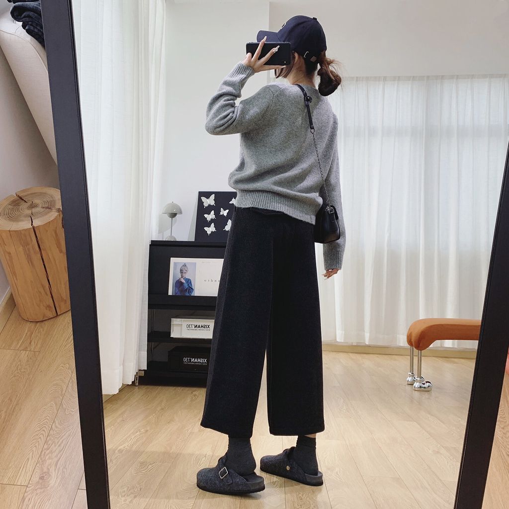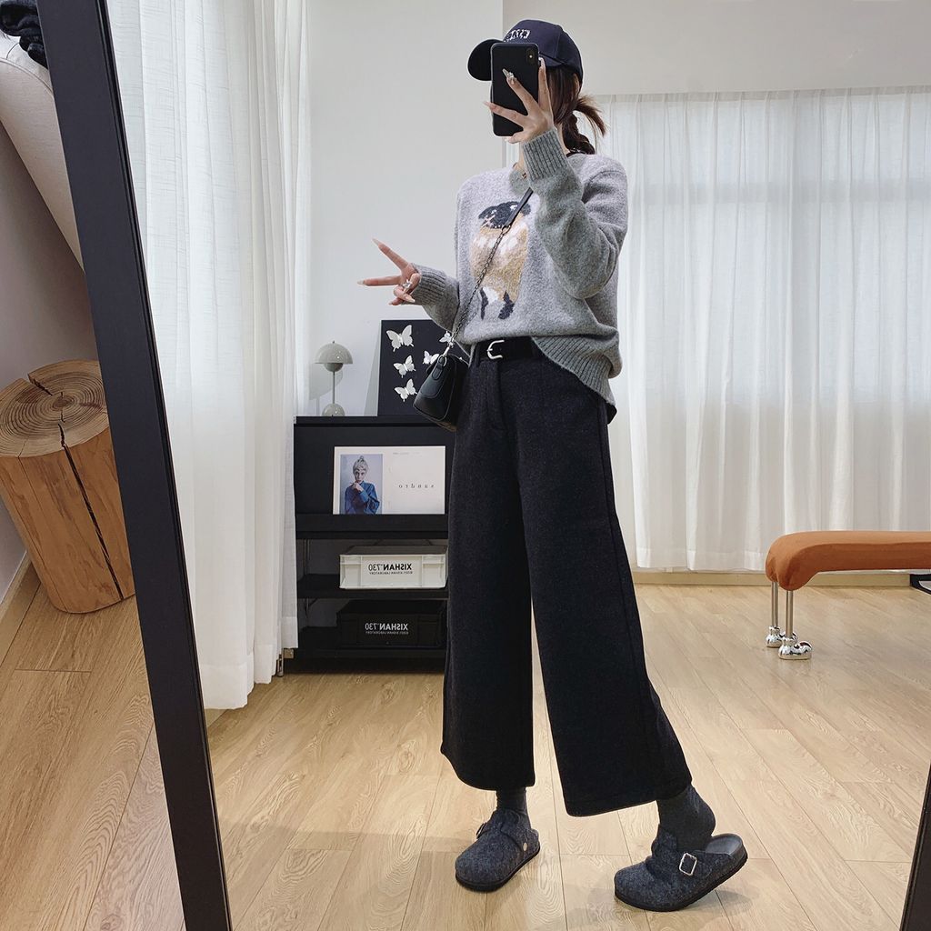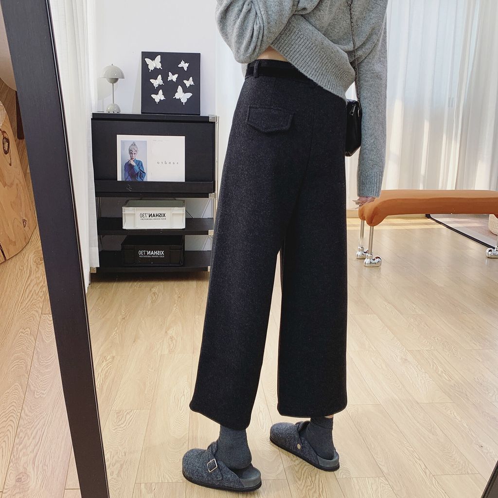 復古時尚加絨毛料寬鬆感顯瘦寬褲*深灰*【S0125-159】