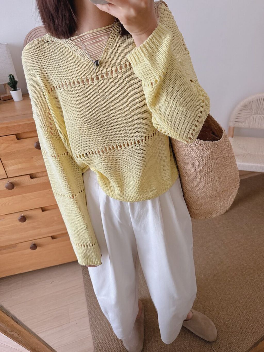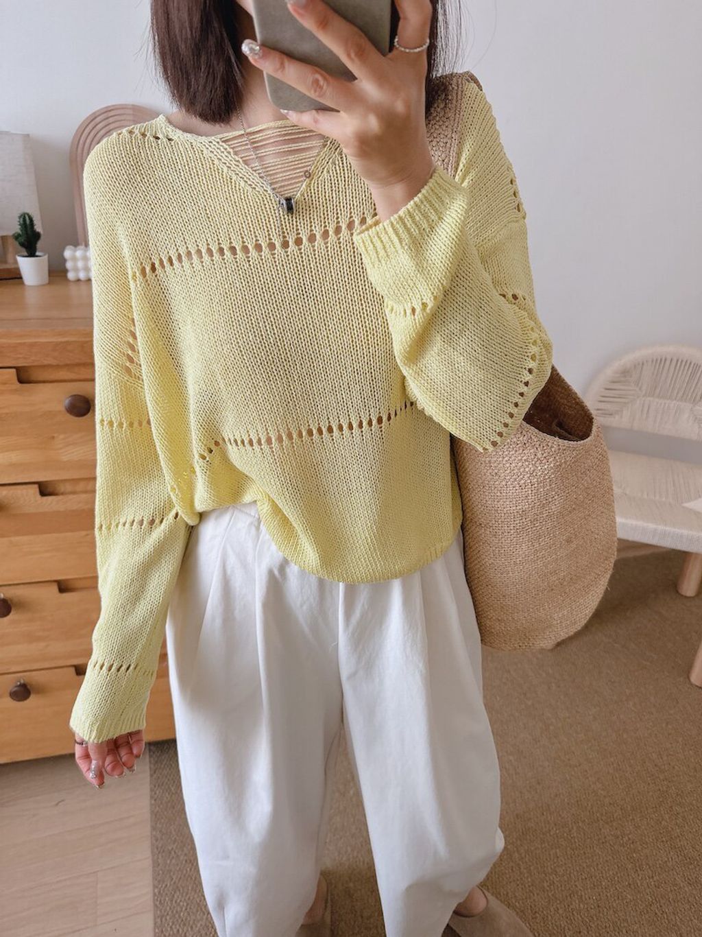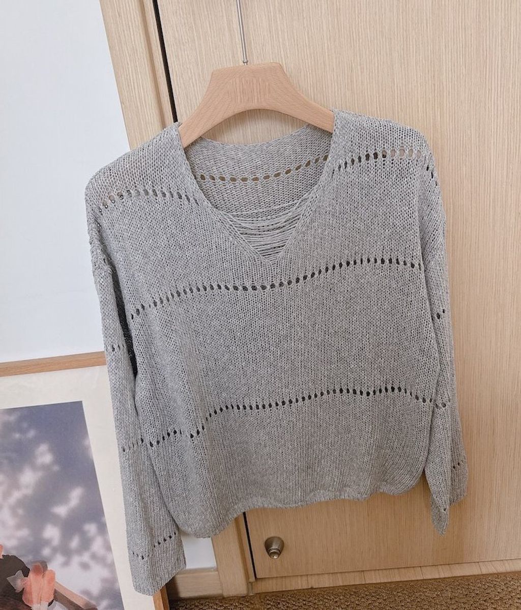 復古設計款鏤空薄針織上衣*灰奶白黃*【S0323-113】
