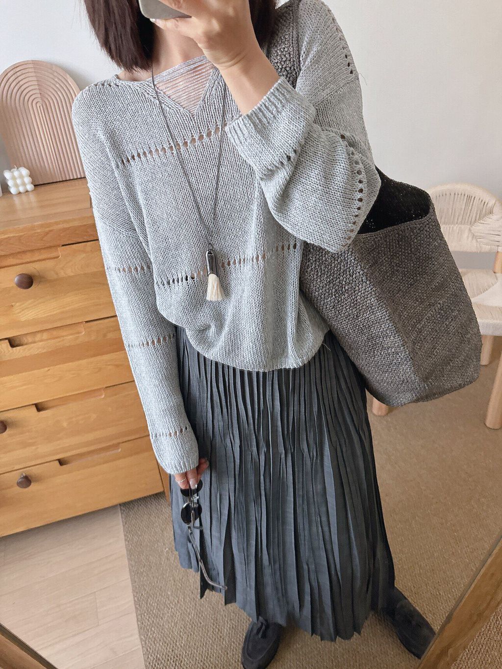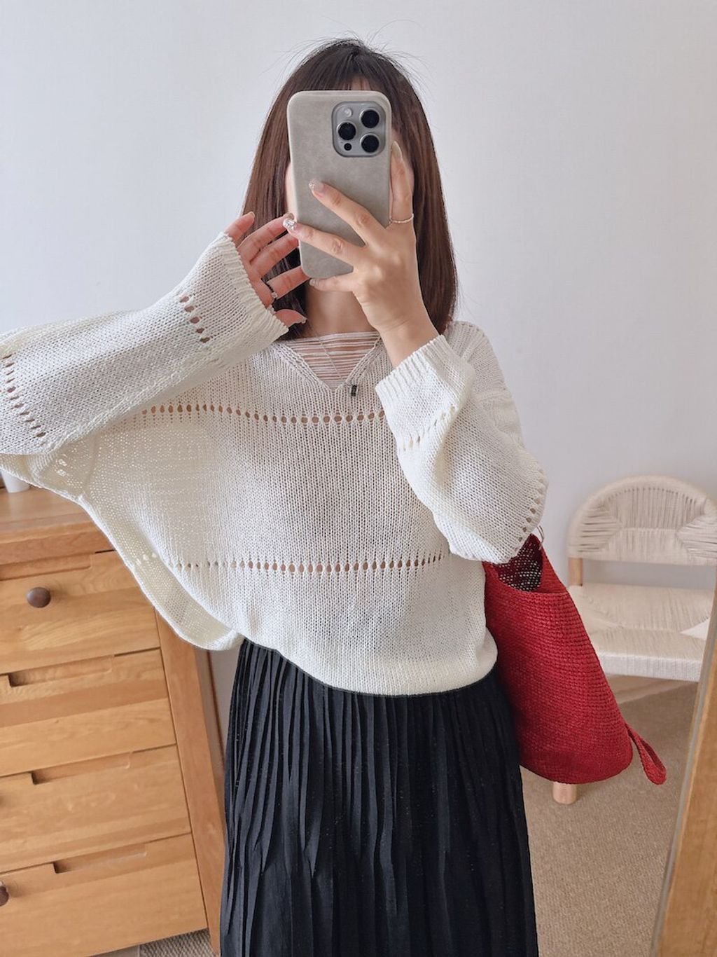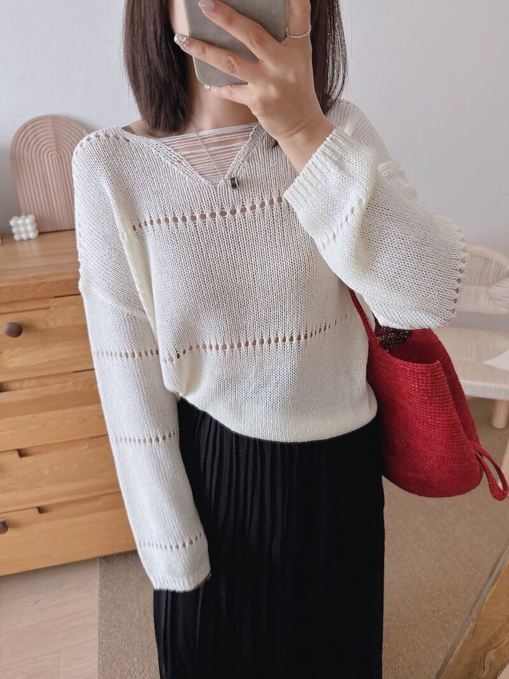 復古設計款鏤空薄針織上衣*灰奶白黃*【S0323-113】