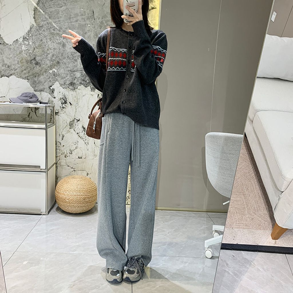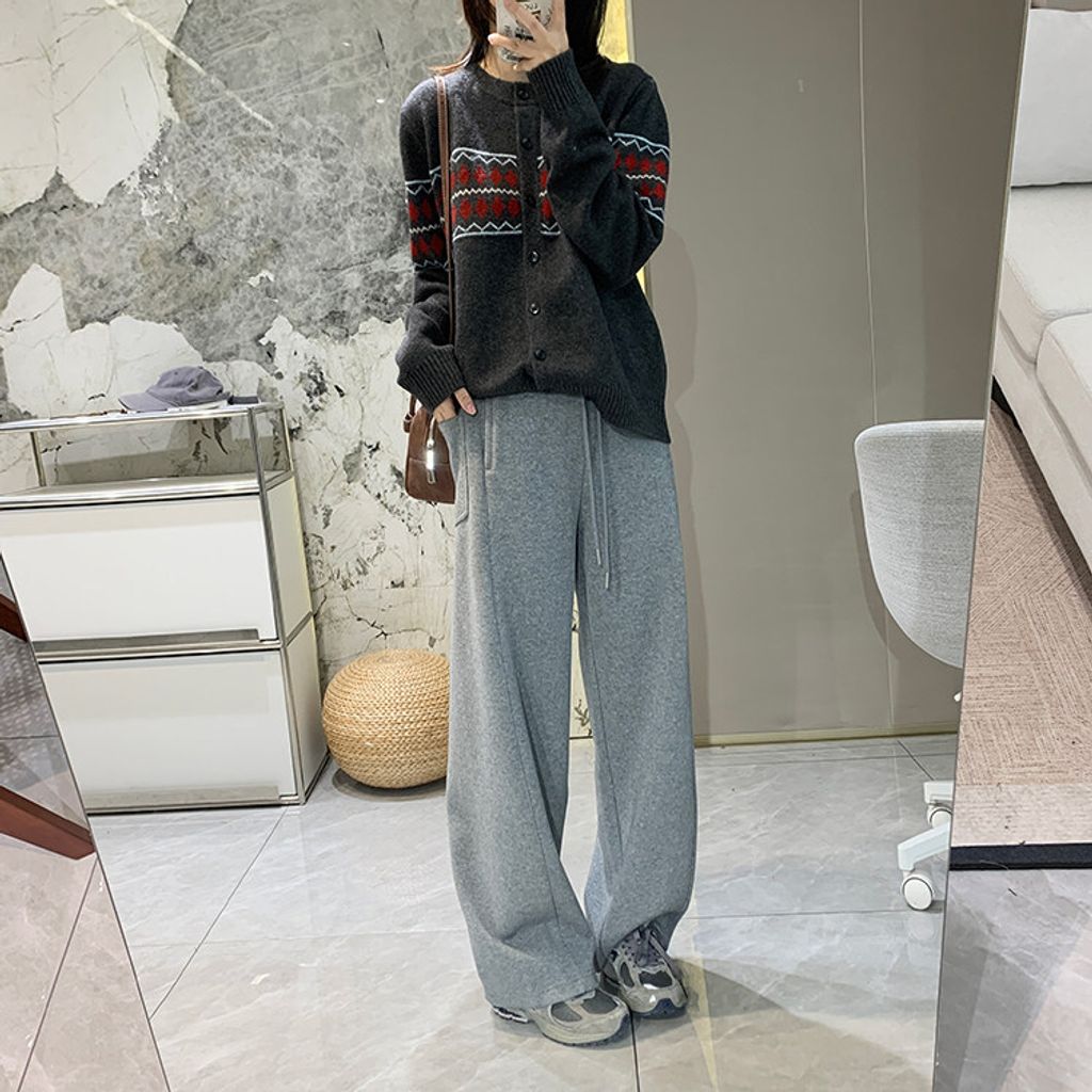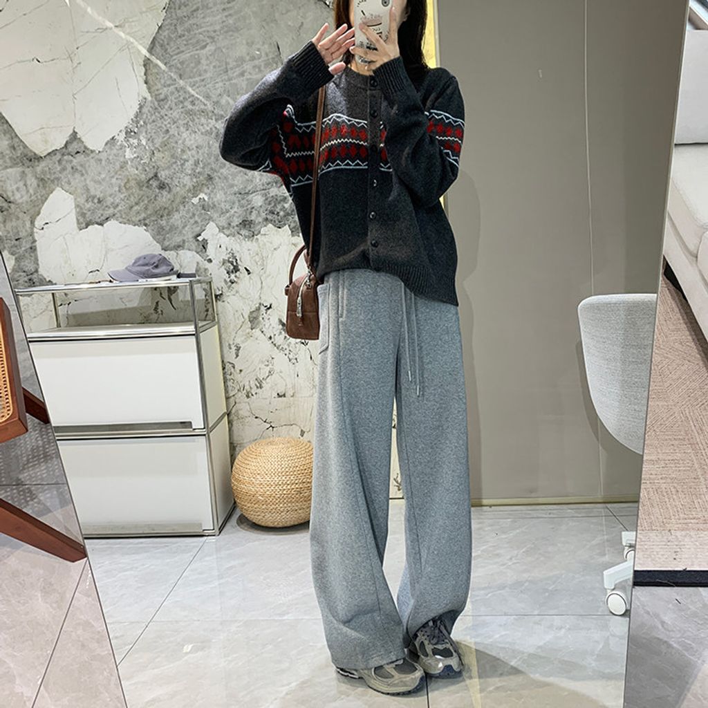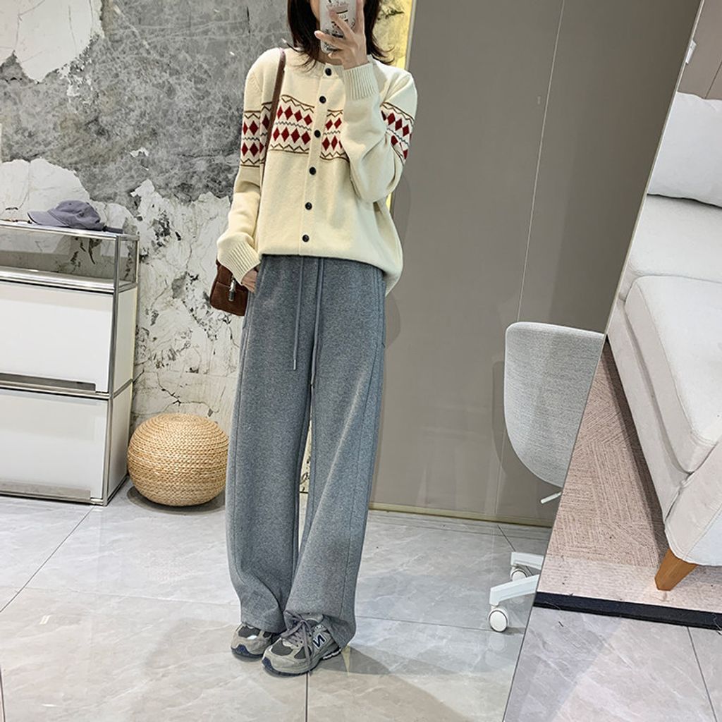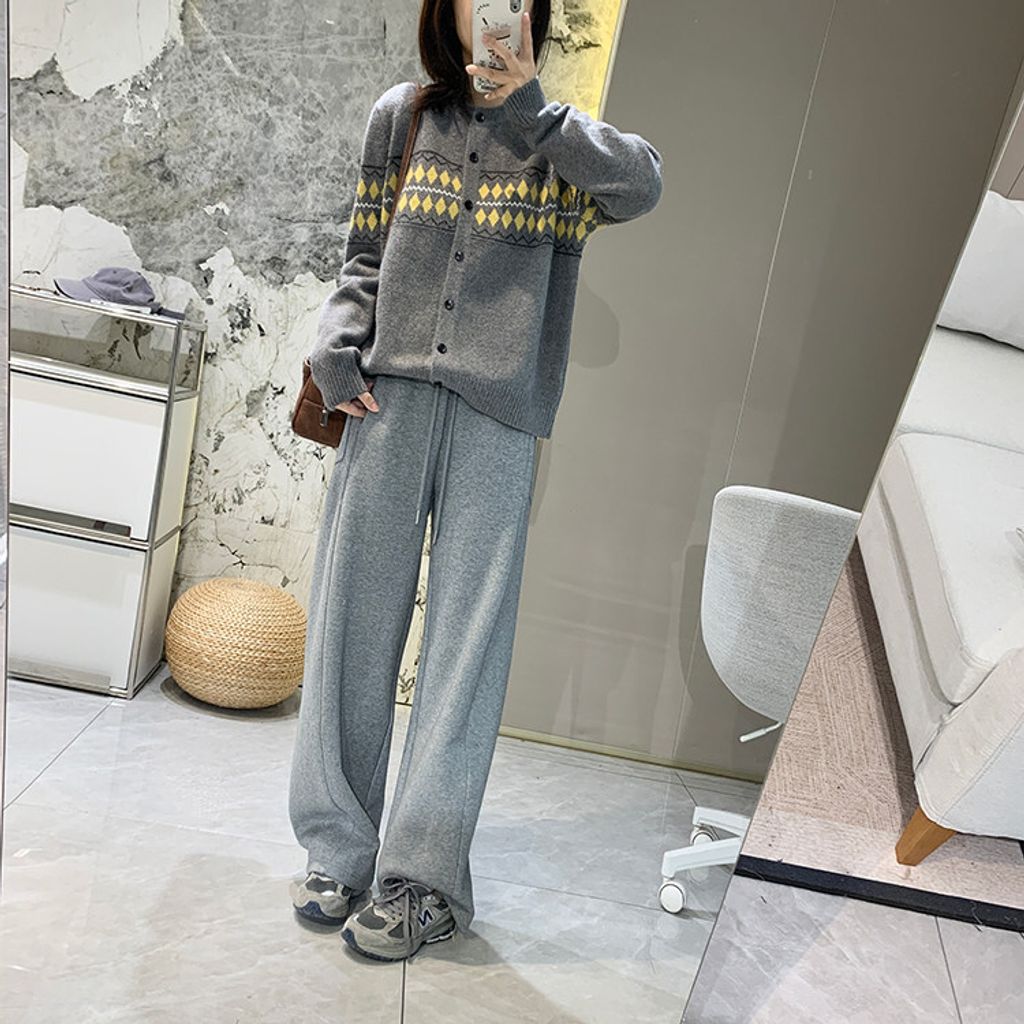 復古費爾島菱格拼色針織毛衣外套*深灰淺灰米*【S0125-141】