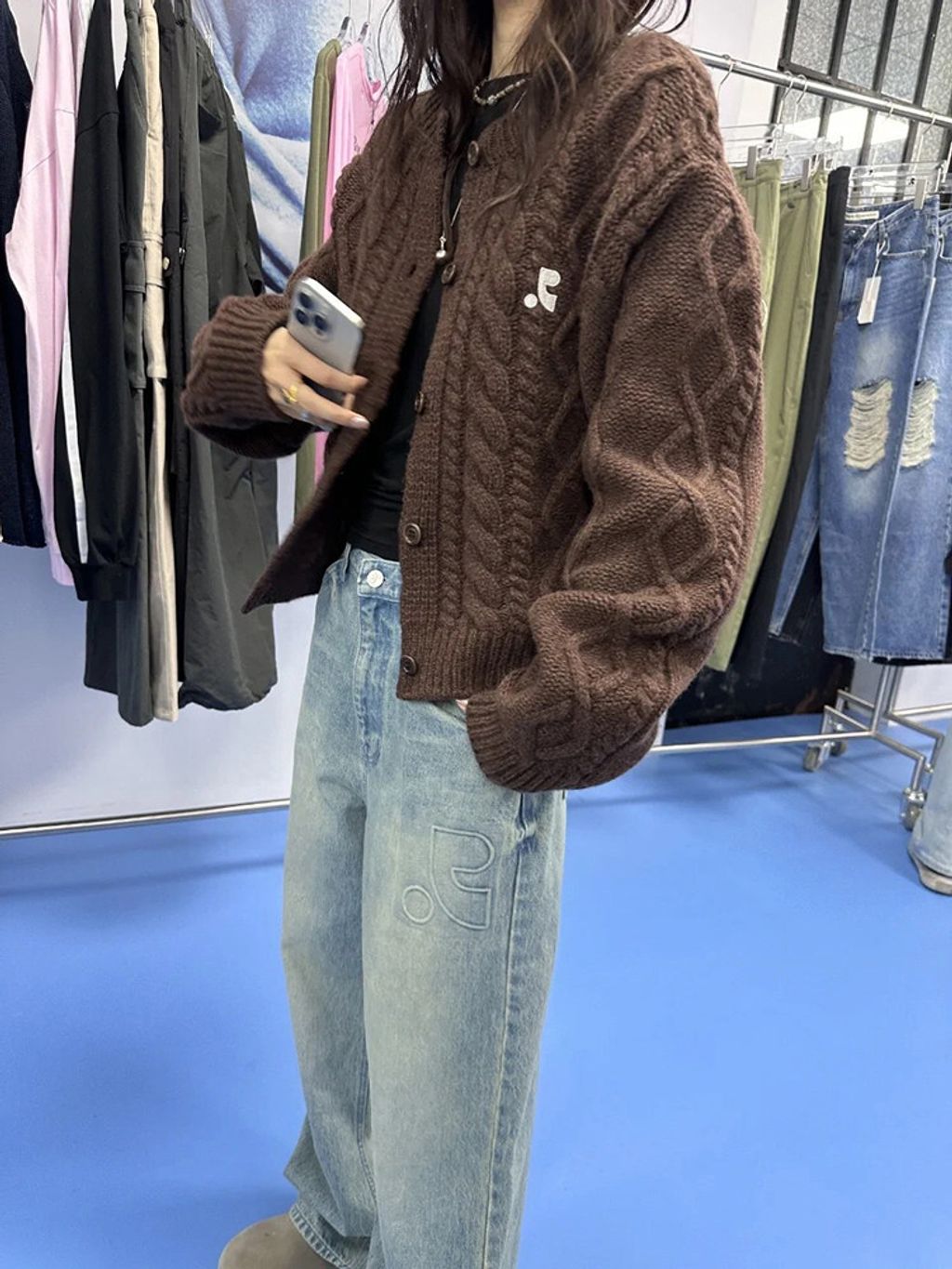 正韓 復古時尚麻花羊毛針織毛衣外套*咖啡色*【S0125-205】