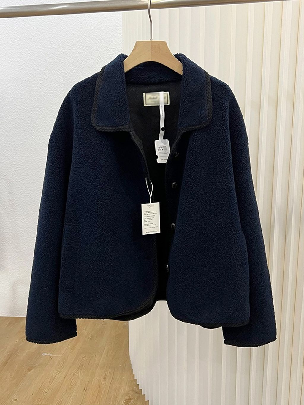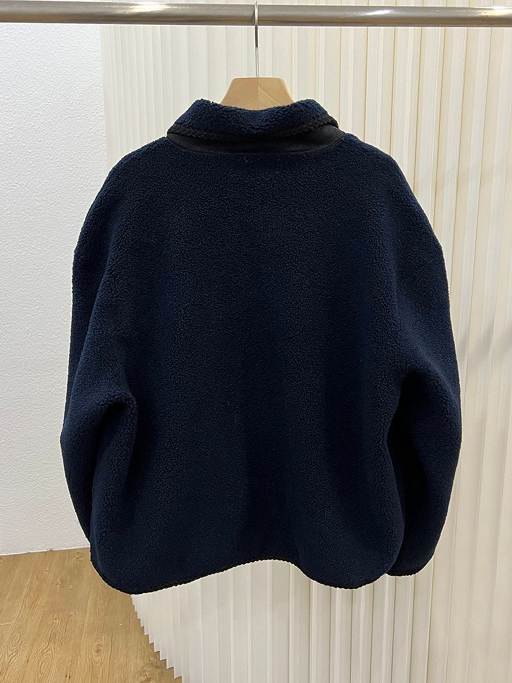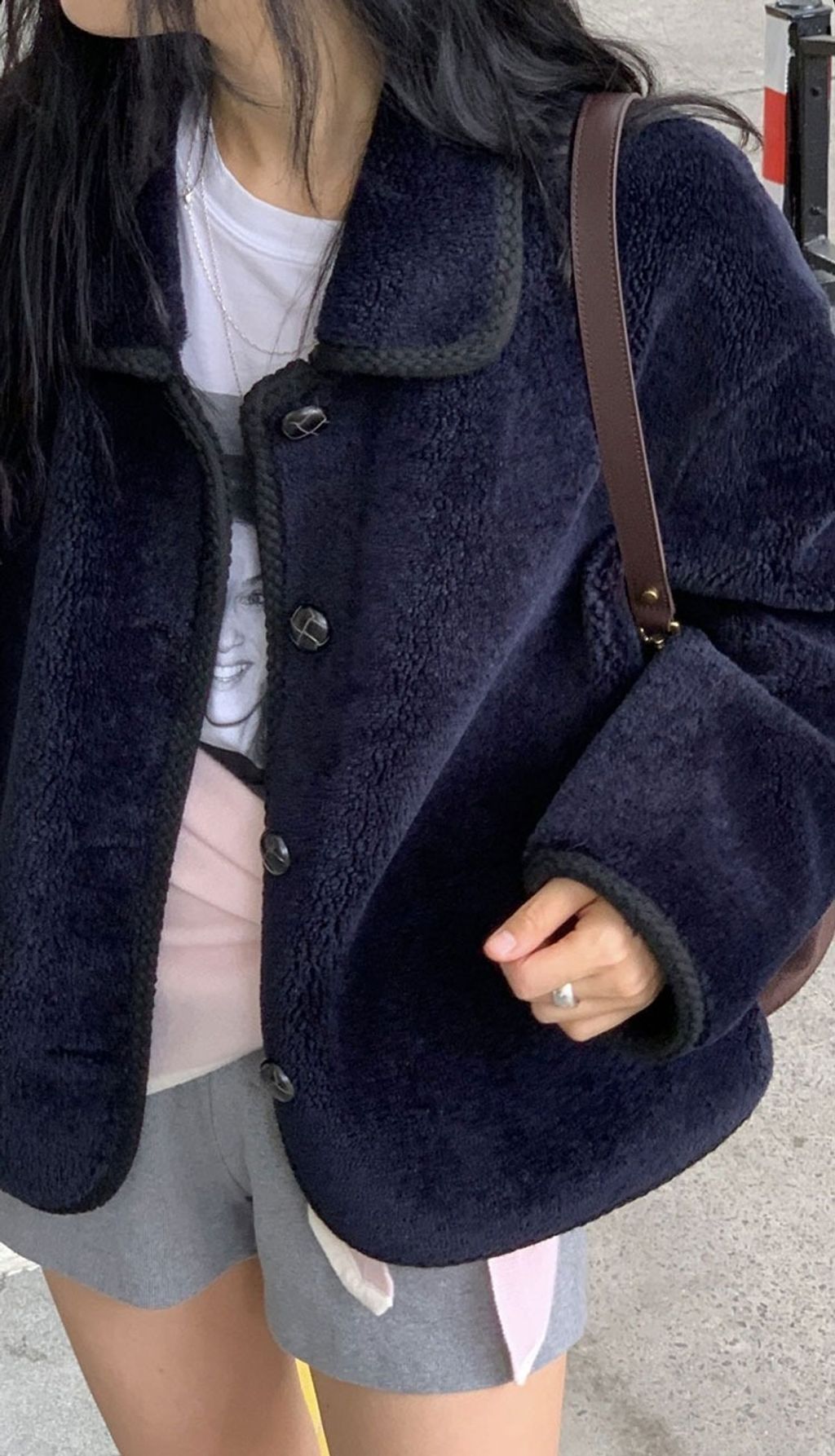 正韓 慵懶風格女孩羊羔毛質感毛衣外套*深藍*【S1105-157】