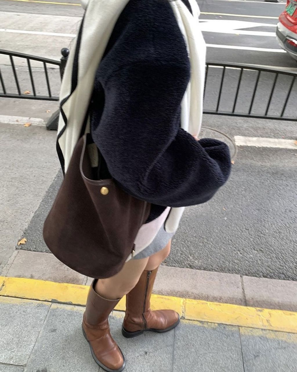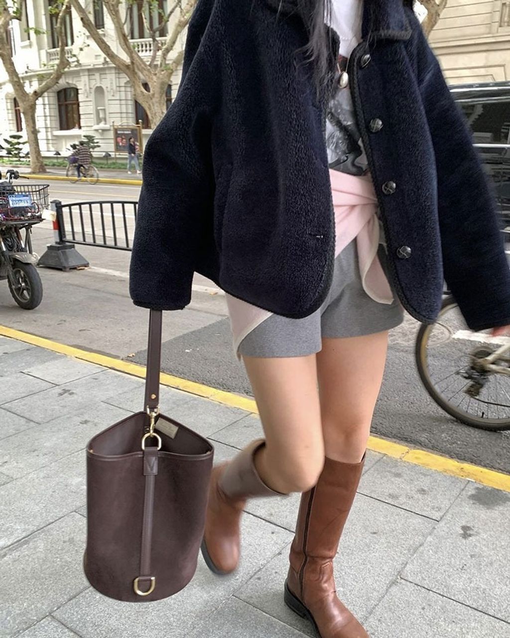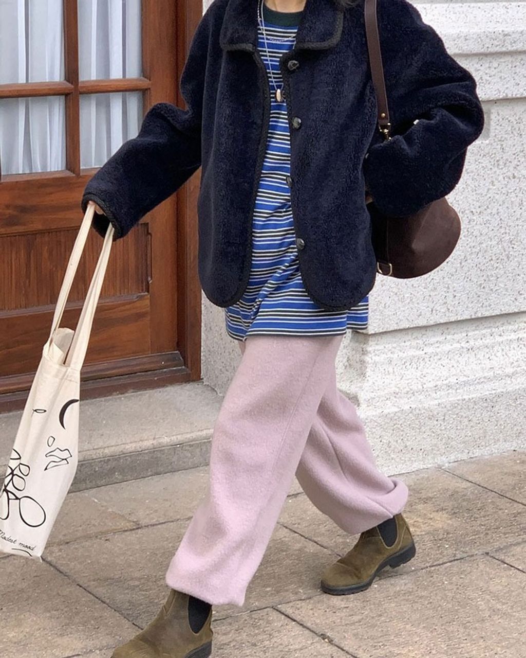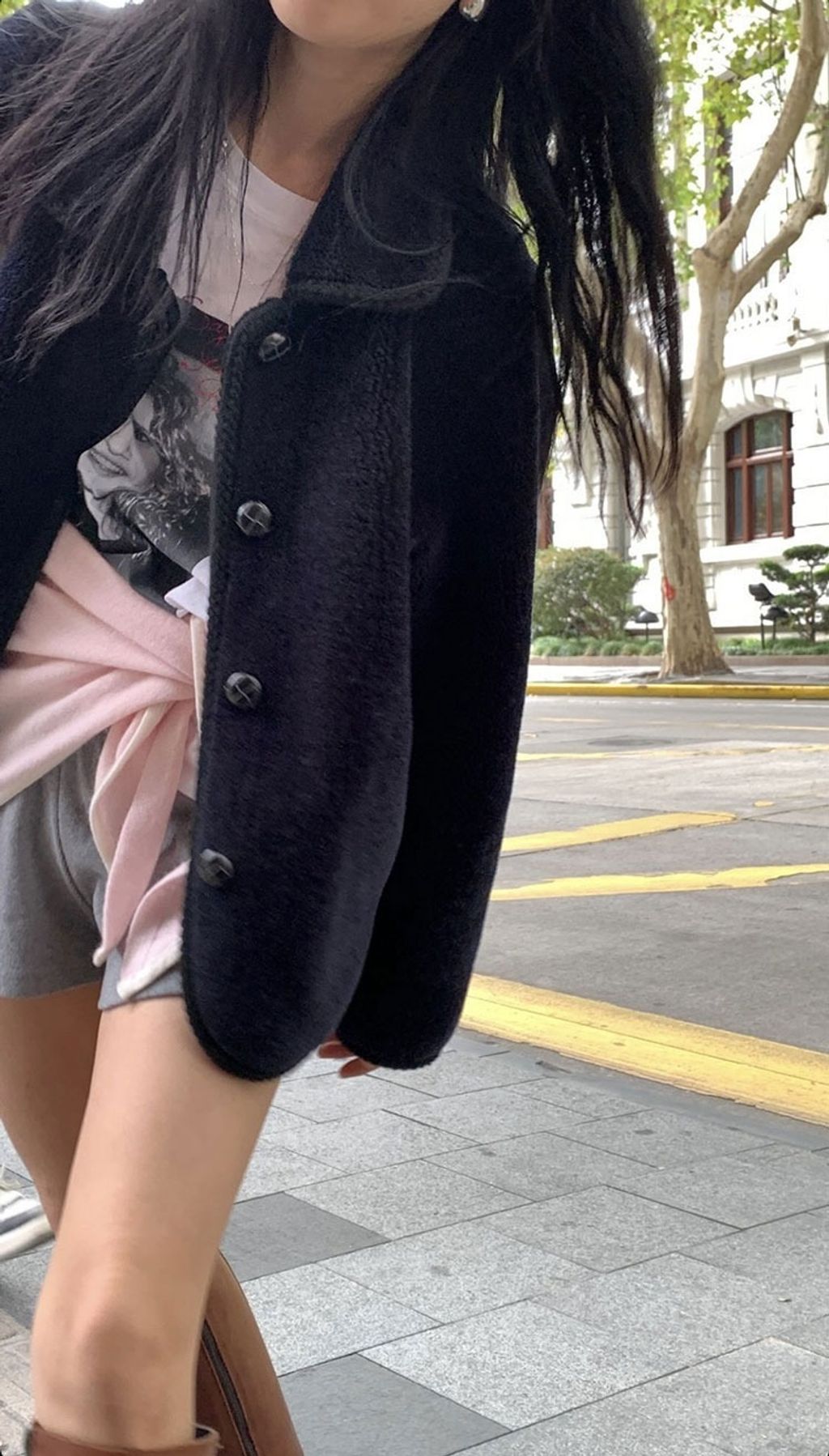 正韓 慵懶風格女孩羊羔毛質感毛衣外套*深藍*【S1105-157】