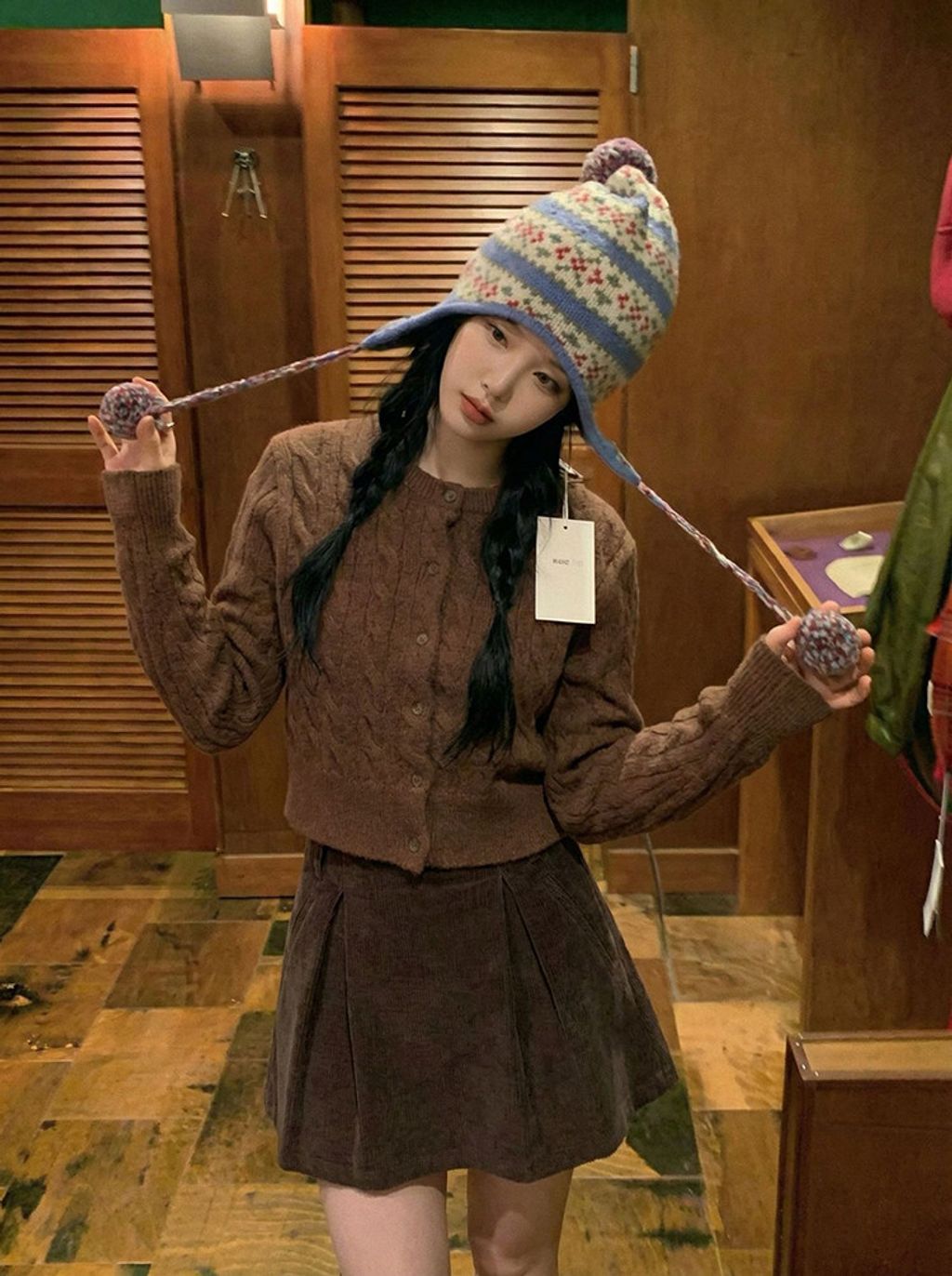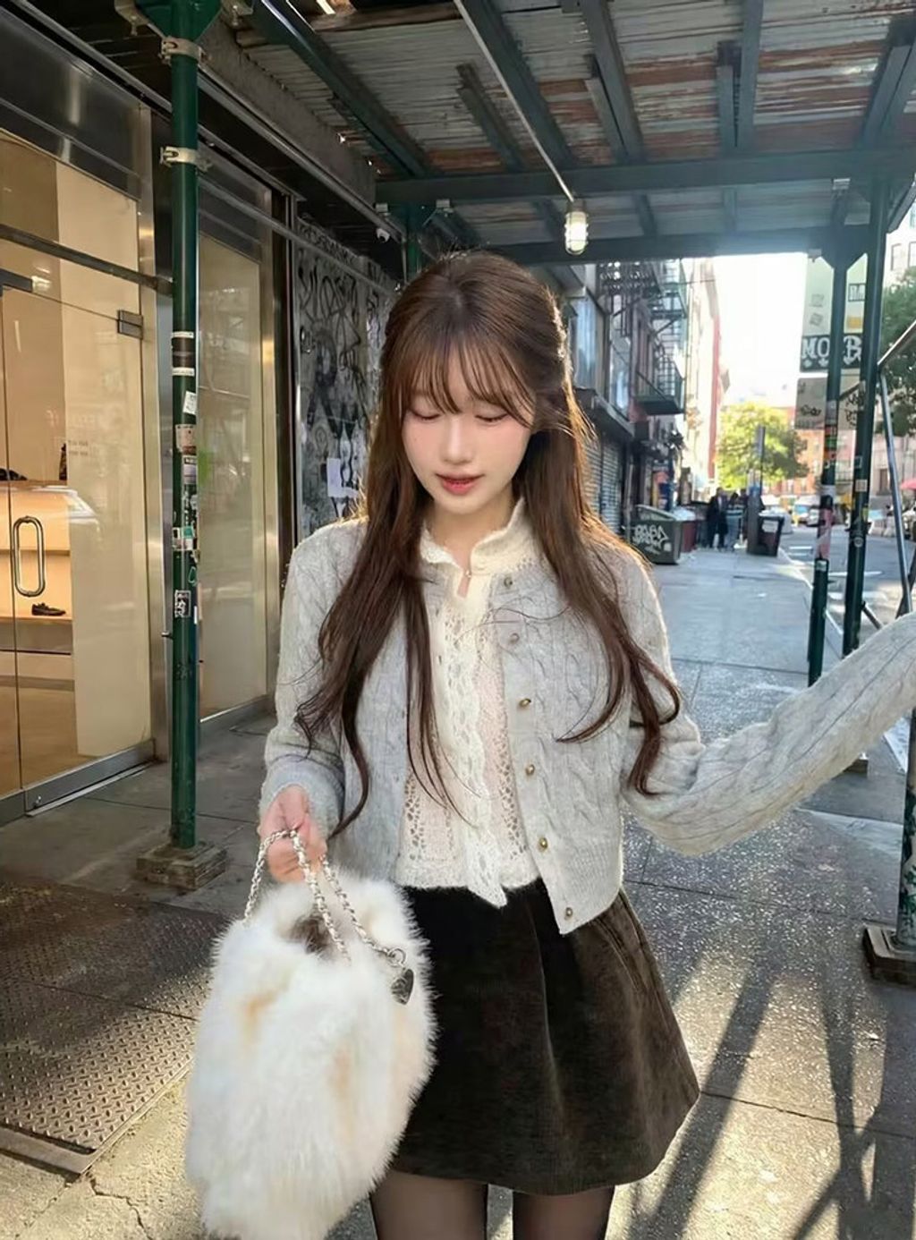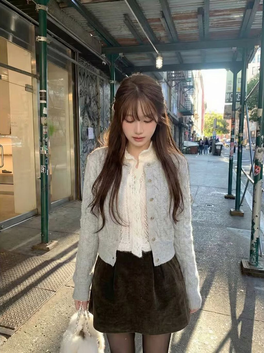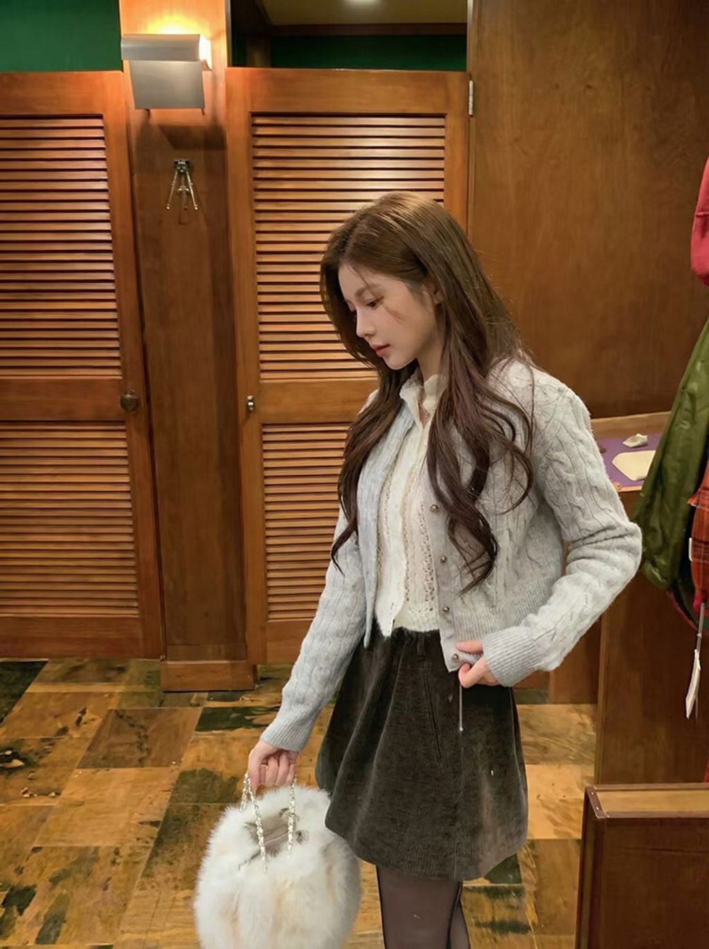 正韓 氣質溫柔復古麻花羊毛針織小外套短裙套組 **【S0125-04】