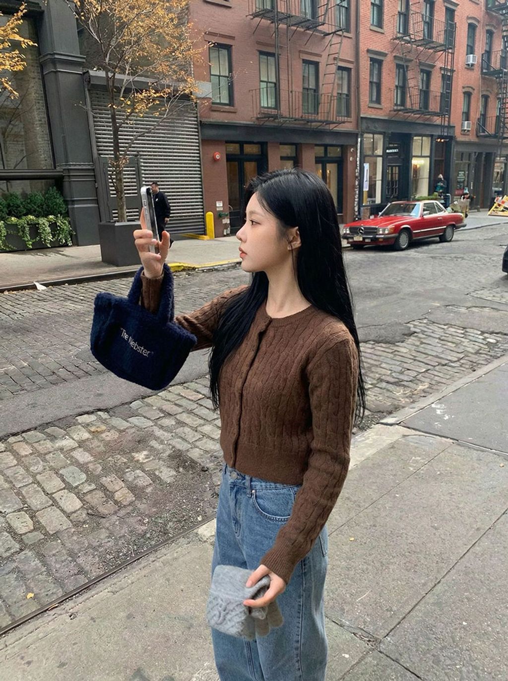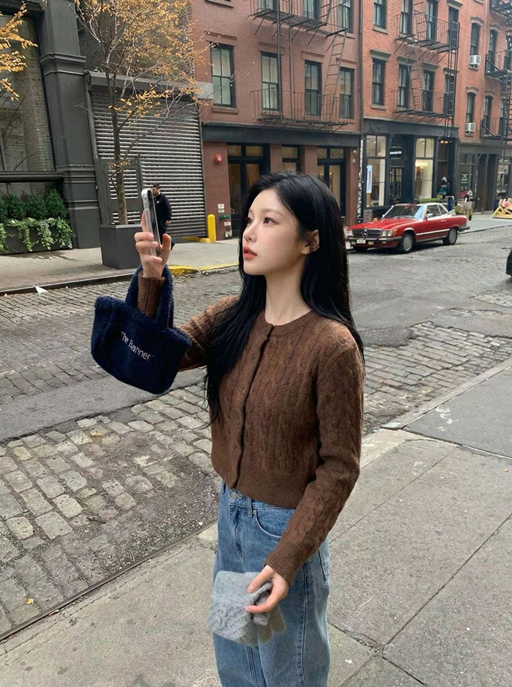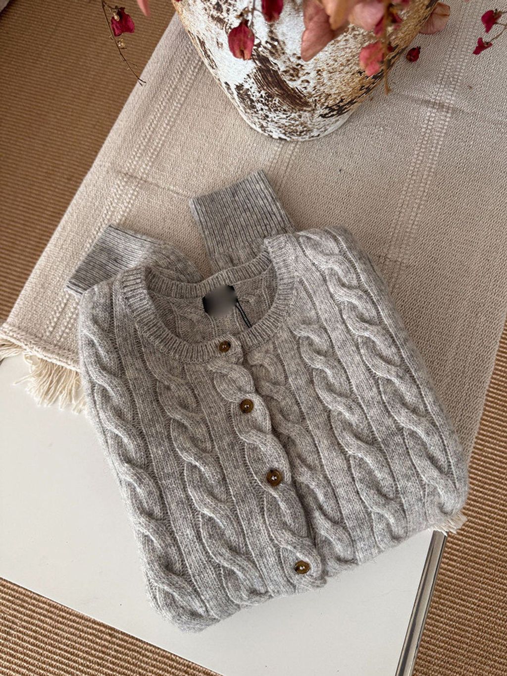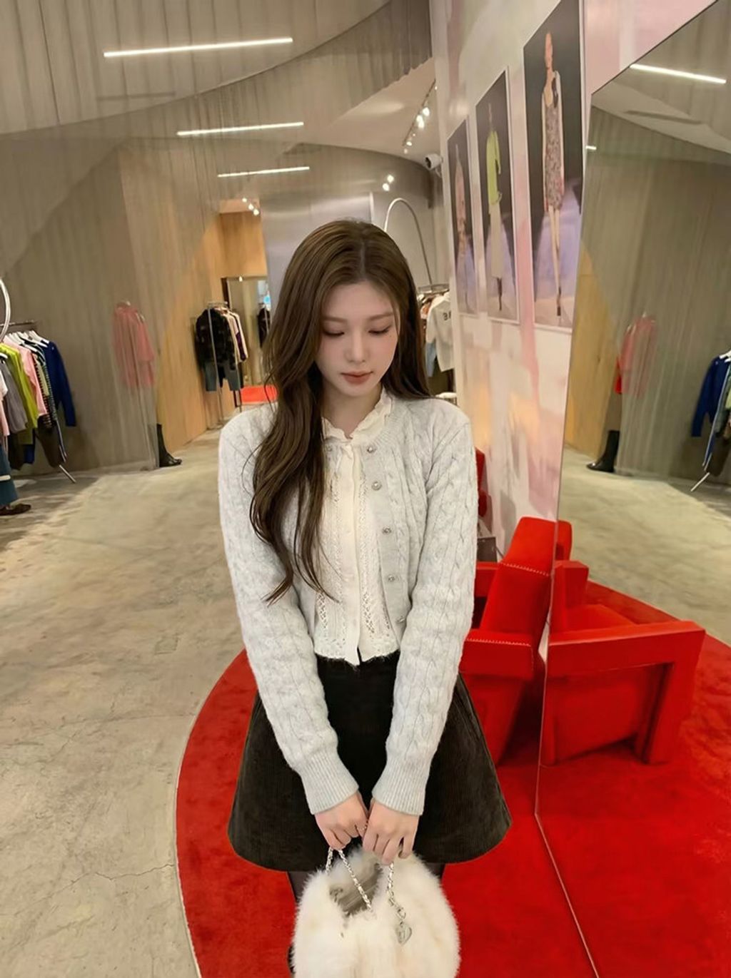 正韓 氣質溫柔復古麻花羊毛針織小外套短裙套組 **【S0125-04】