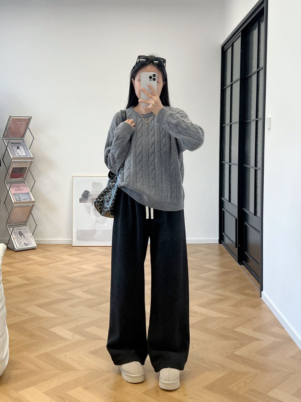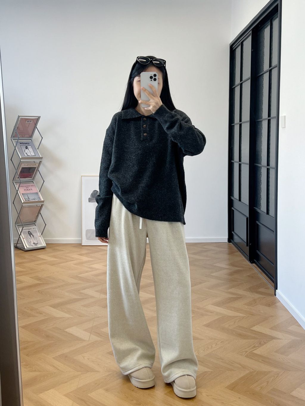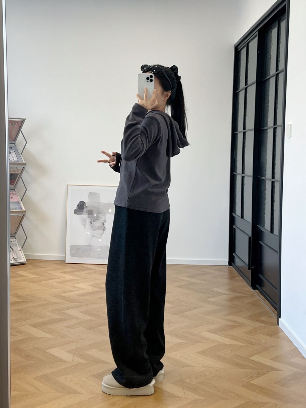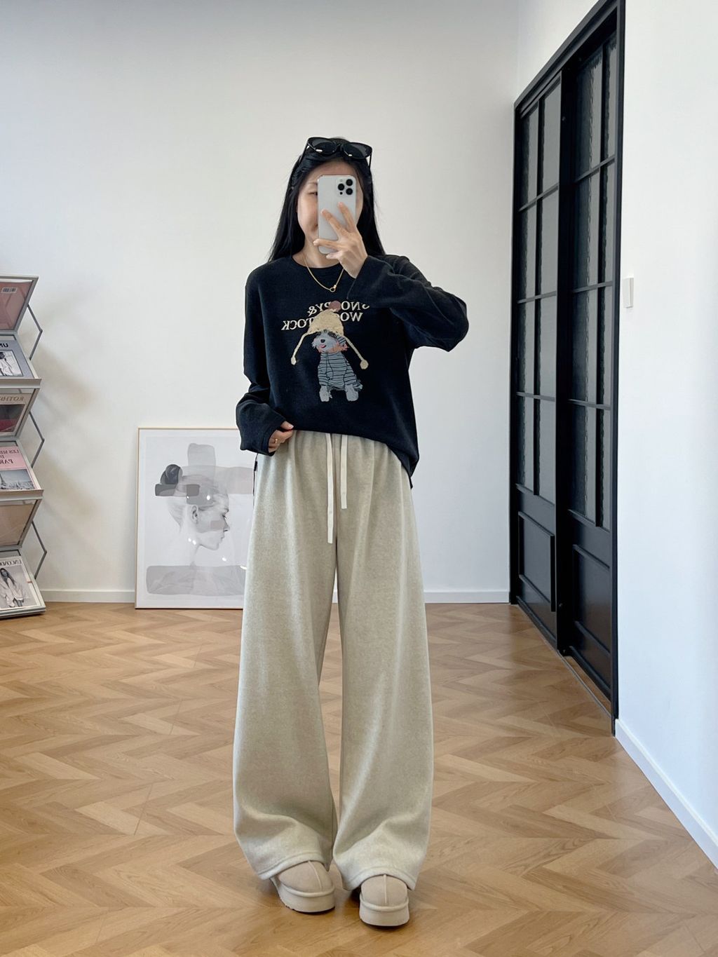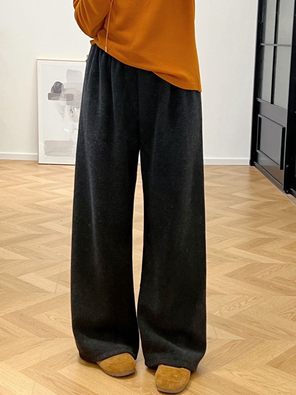 穿了就不想拖了!超好穿純色柔軟加絨休閒褲*燕麥黑灰*【S0125-127】