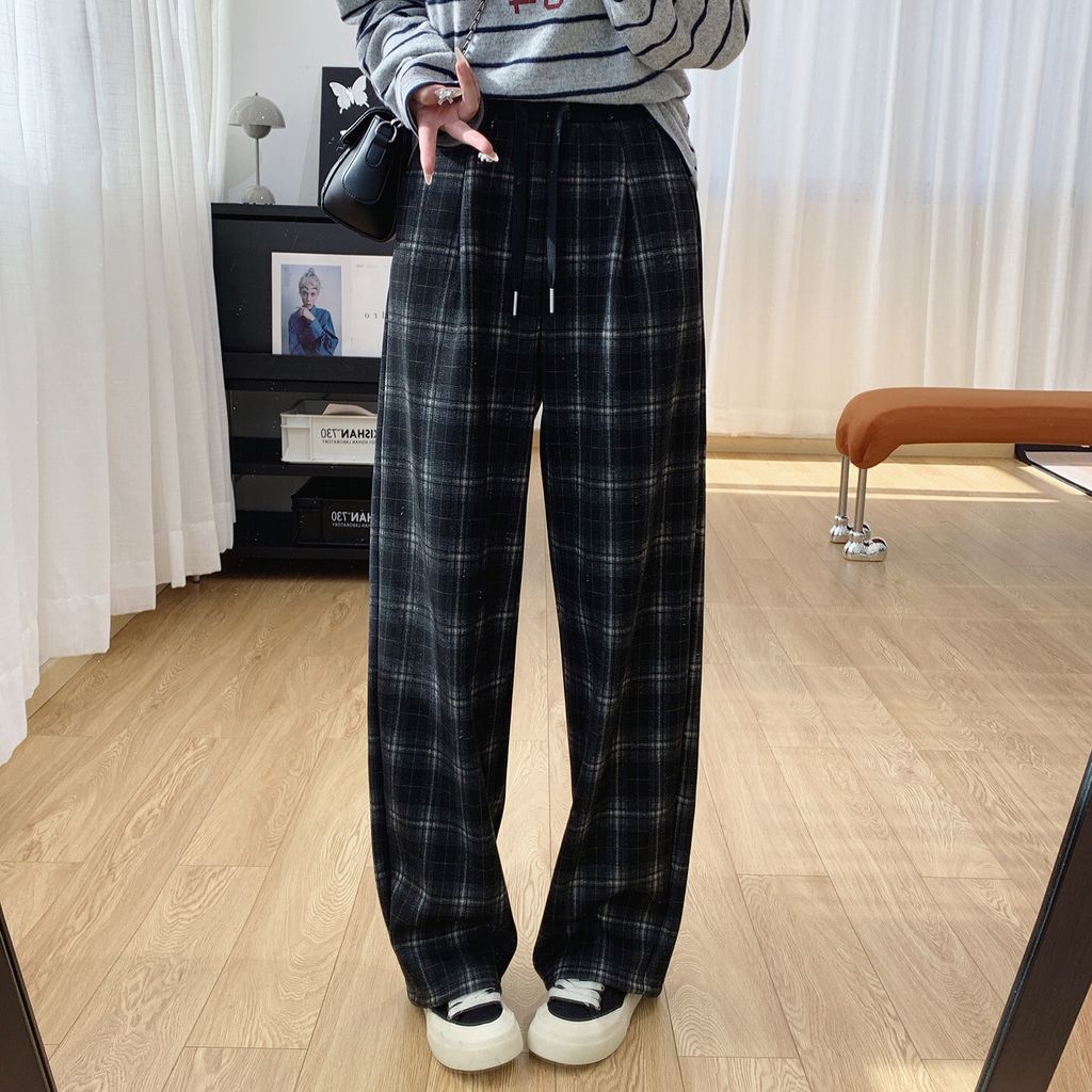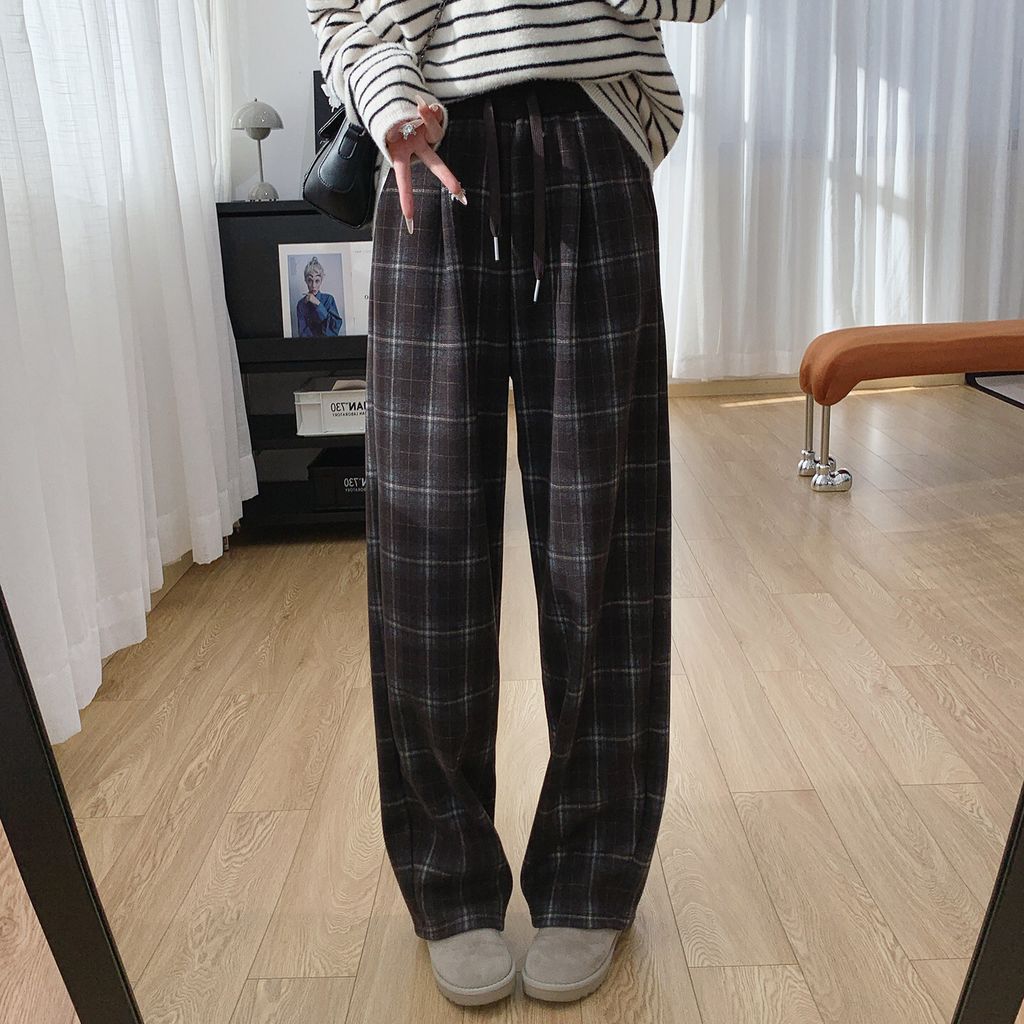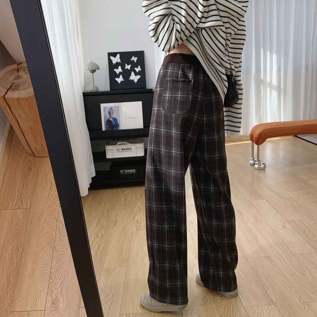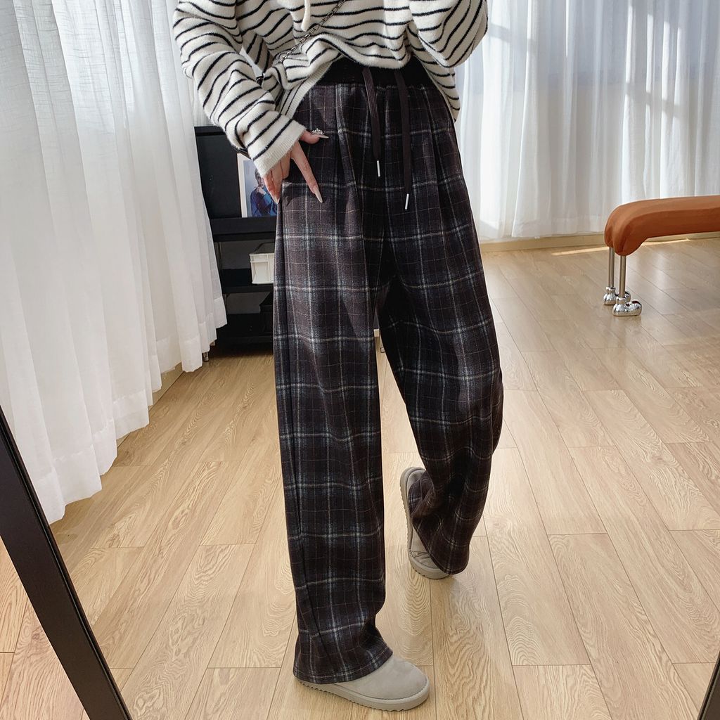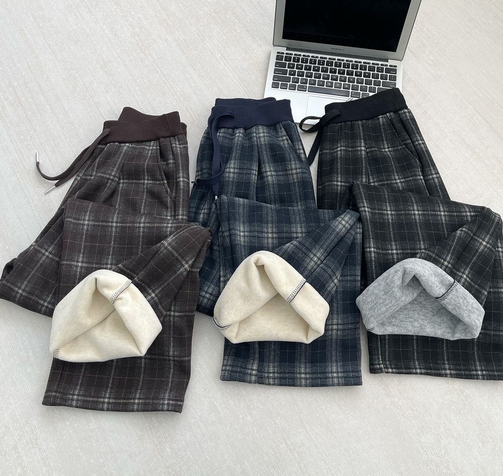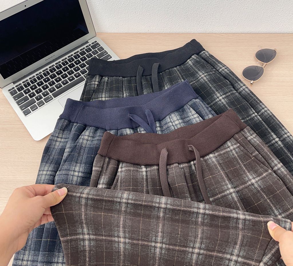 精緻復古格紋加厚加絨格紋休閒褲*黑深藍咖*【S0125-161】