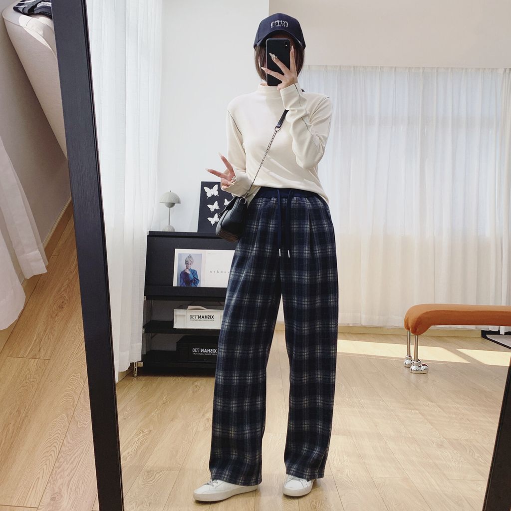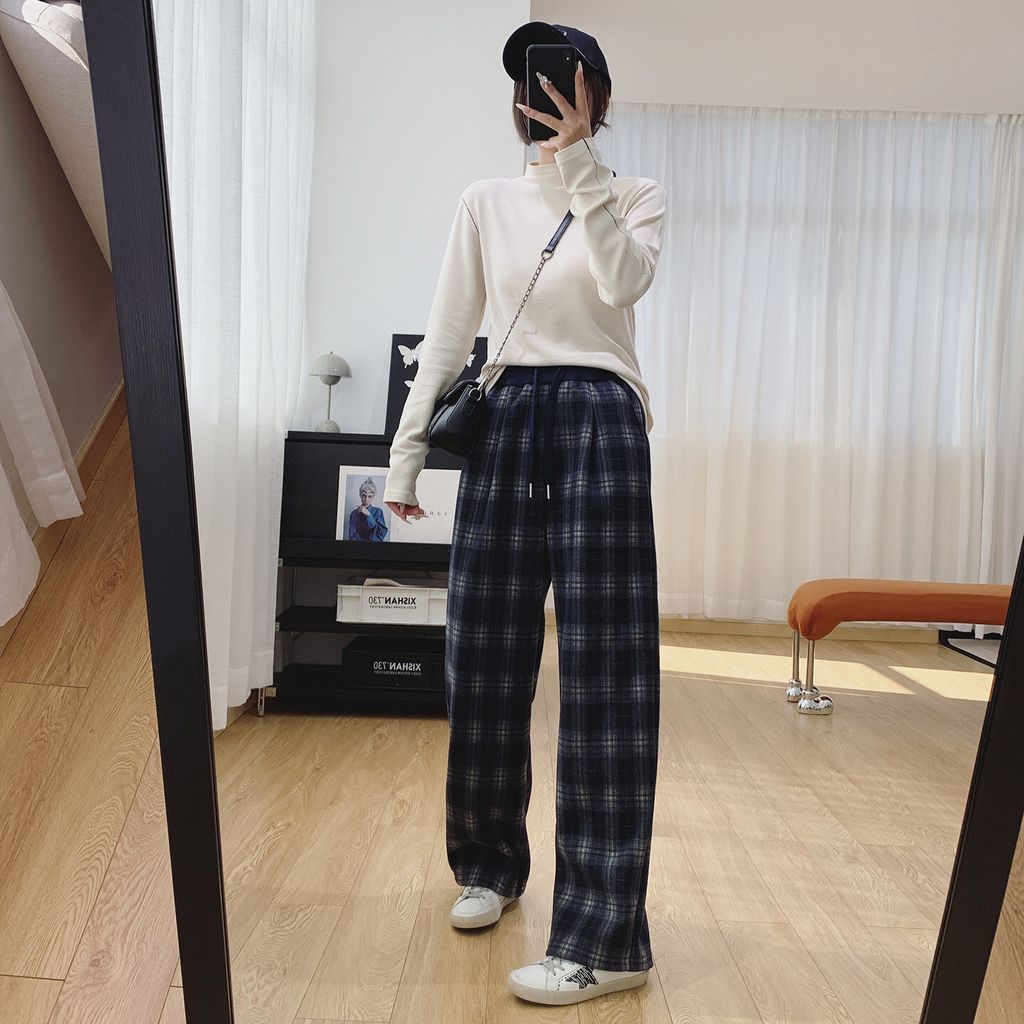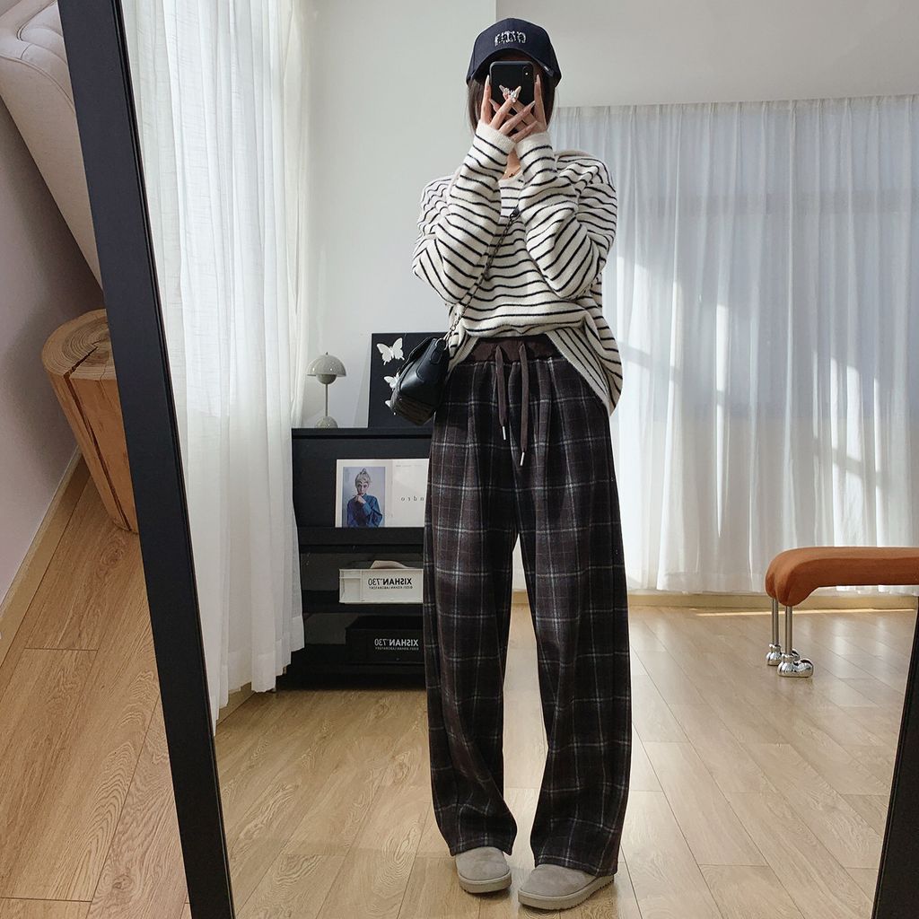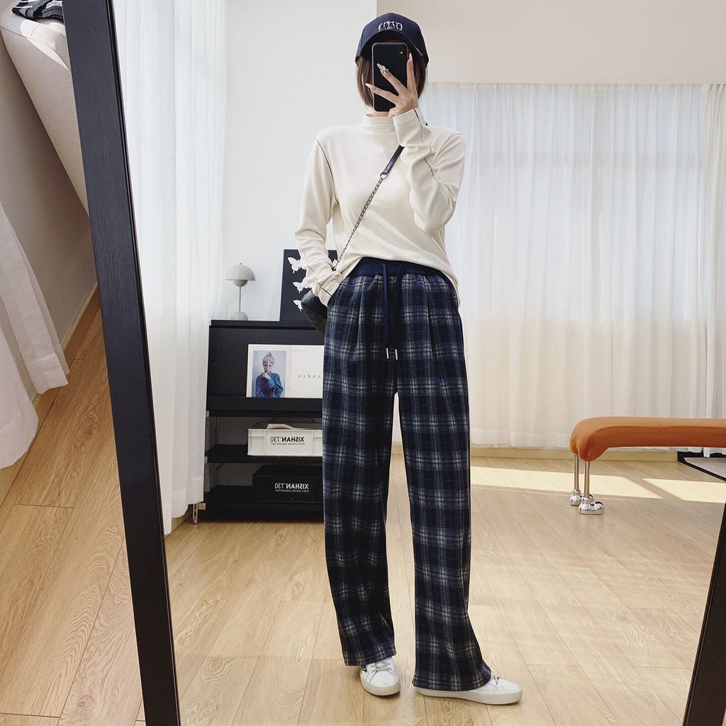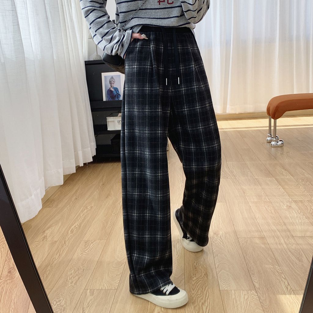 精緻復古格紋加厚加絨格紋休閒褲*黑深藍咖*【S0125-161】