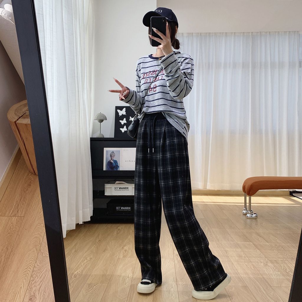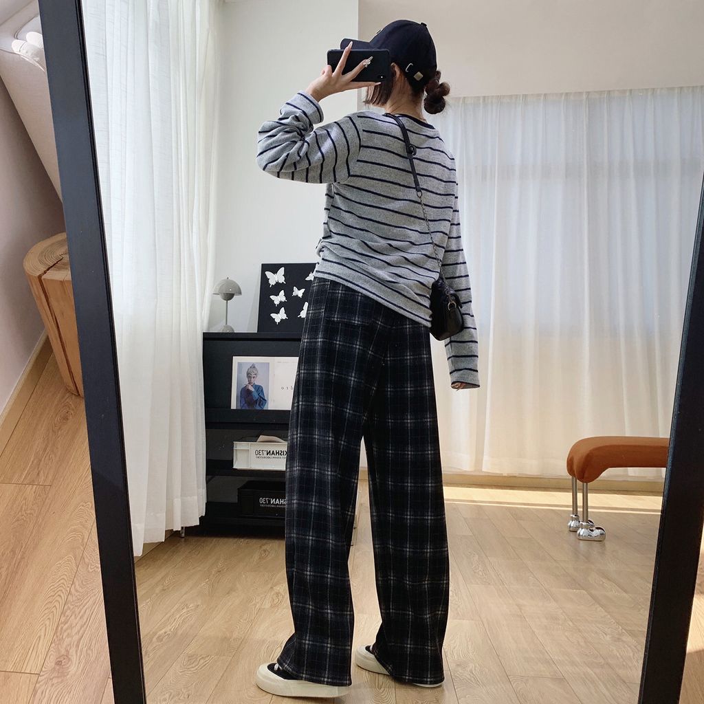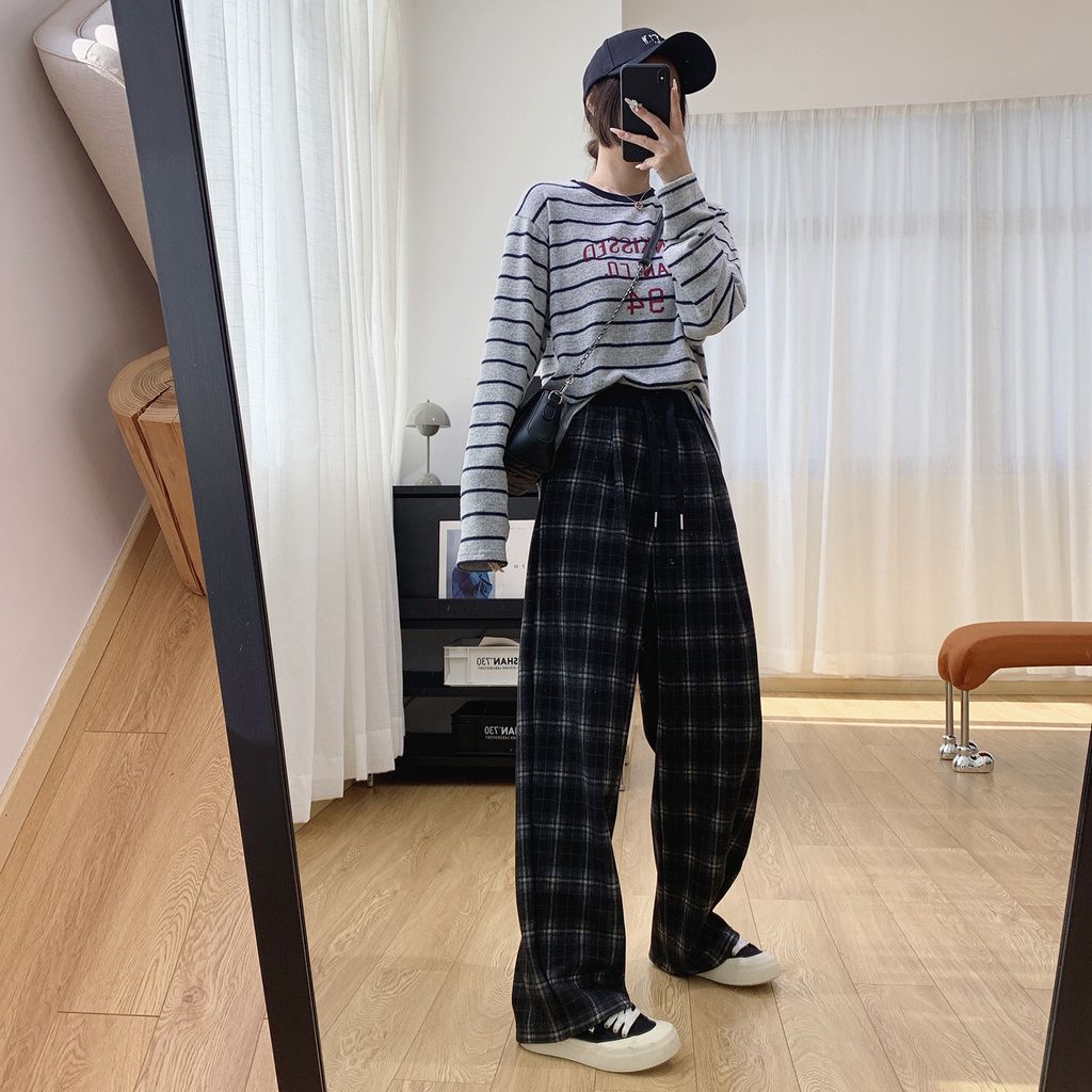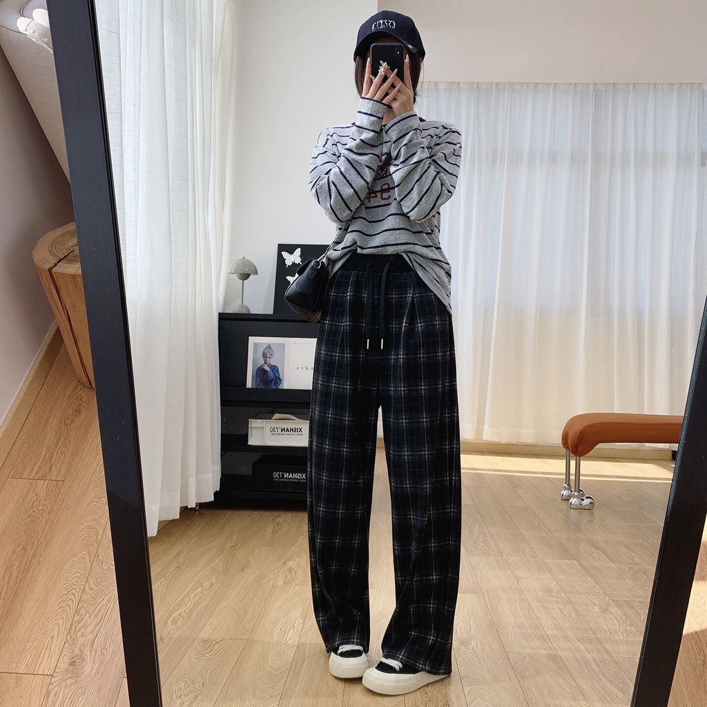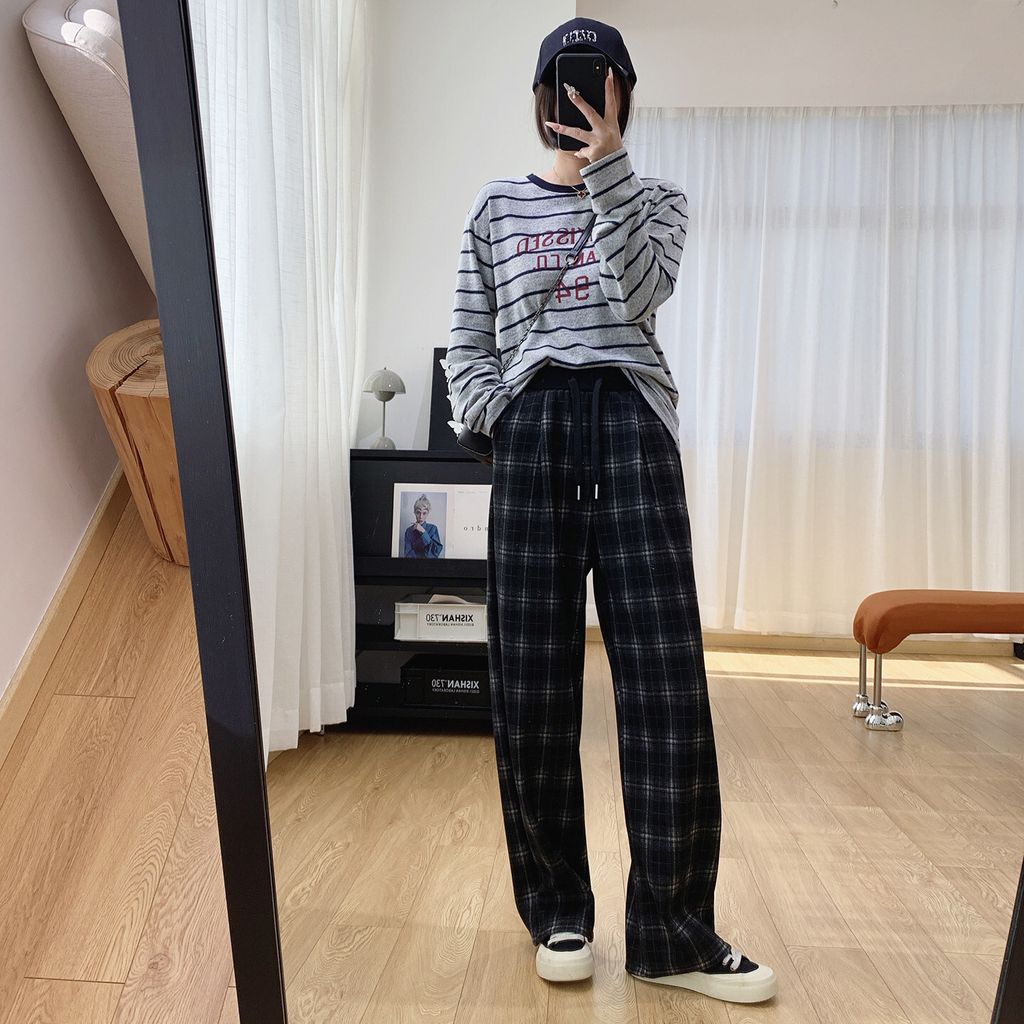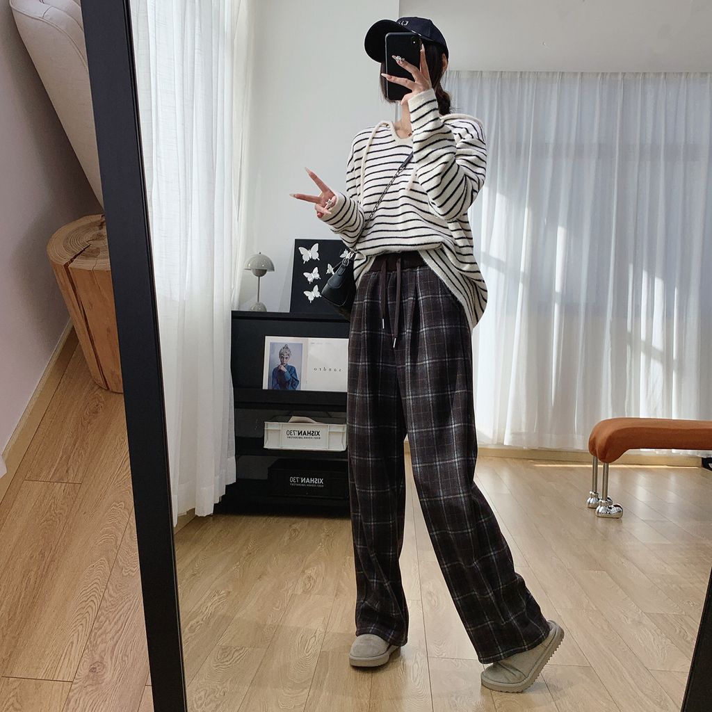 精緻復古格紋加厚加絨格紋休閒褲*黑深藍咖*【S0125-161】
