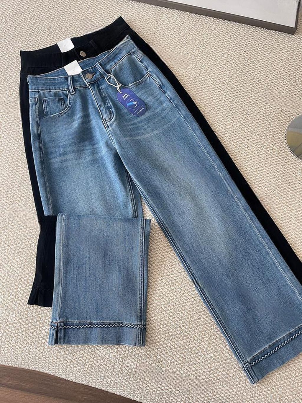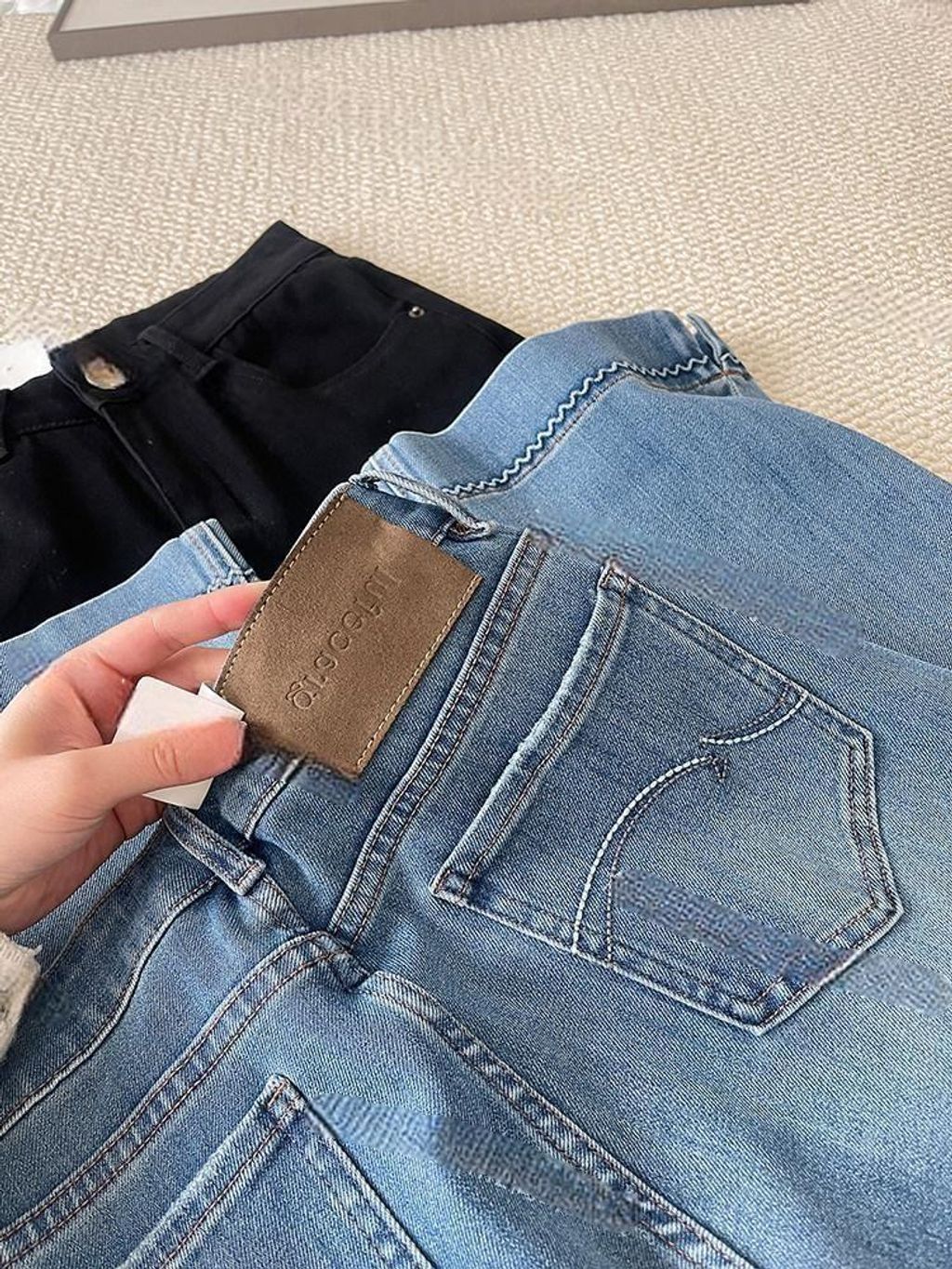 精緻設計款花邊刺繡超彈顯瘦牛仔褲 *藍黑*26-30【S0323-109】