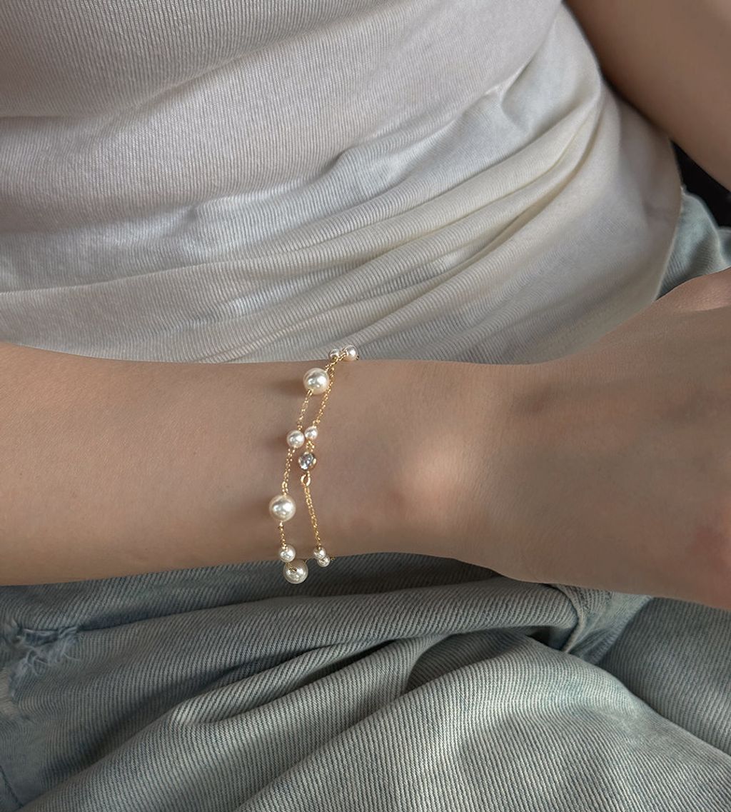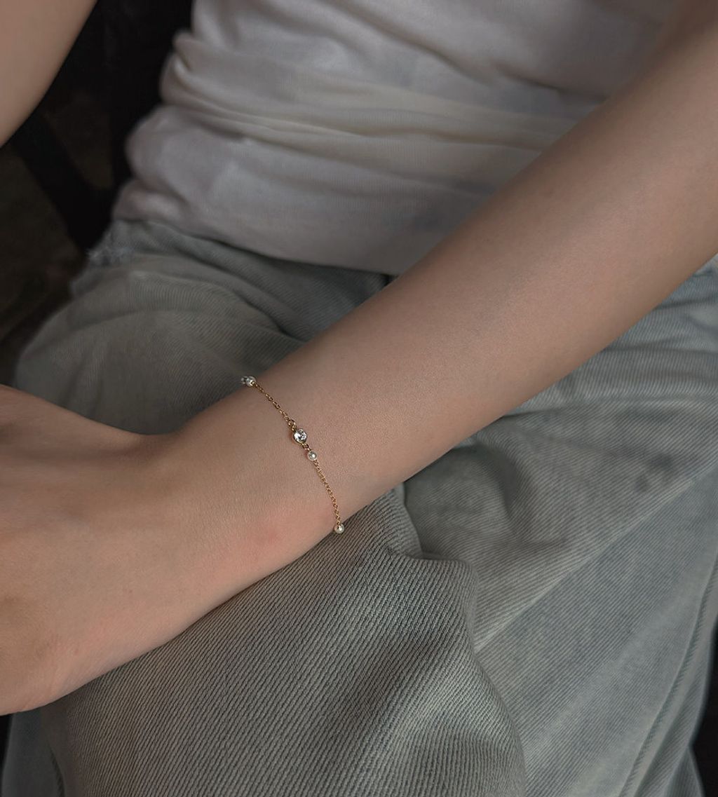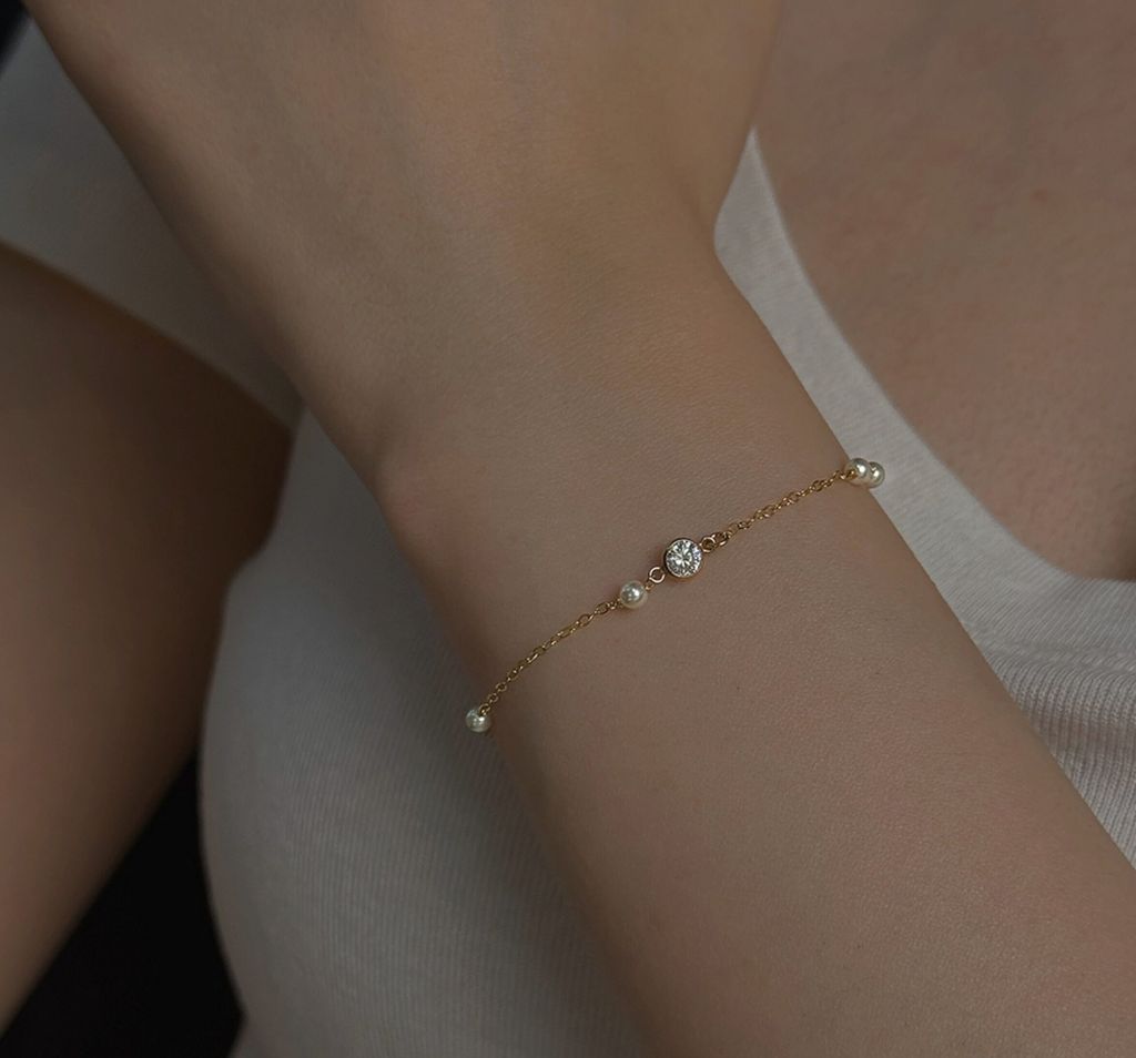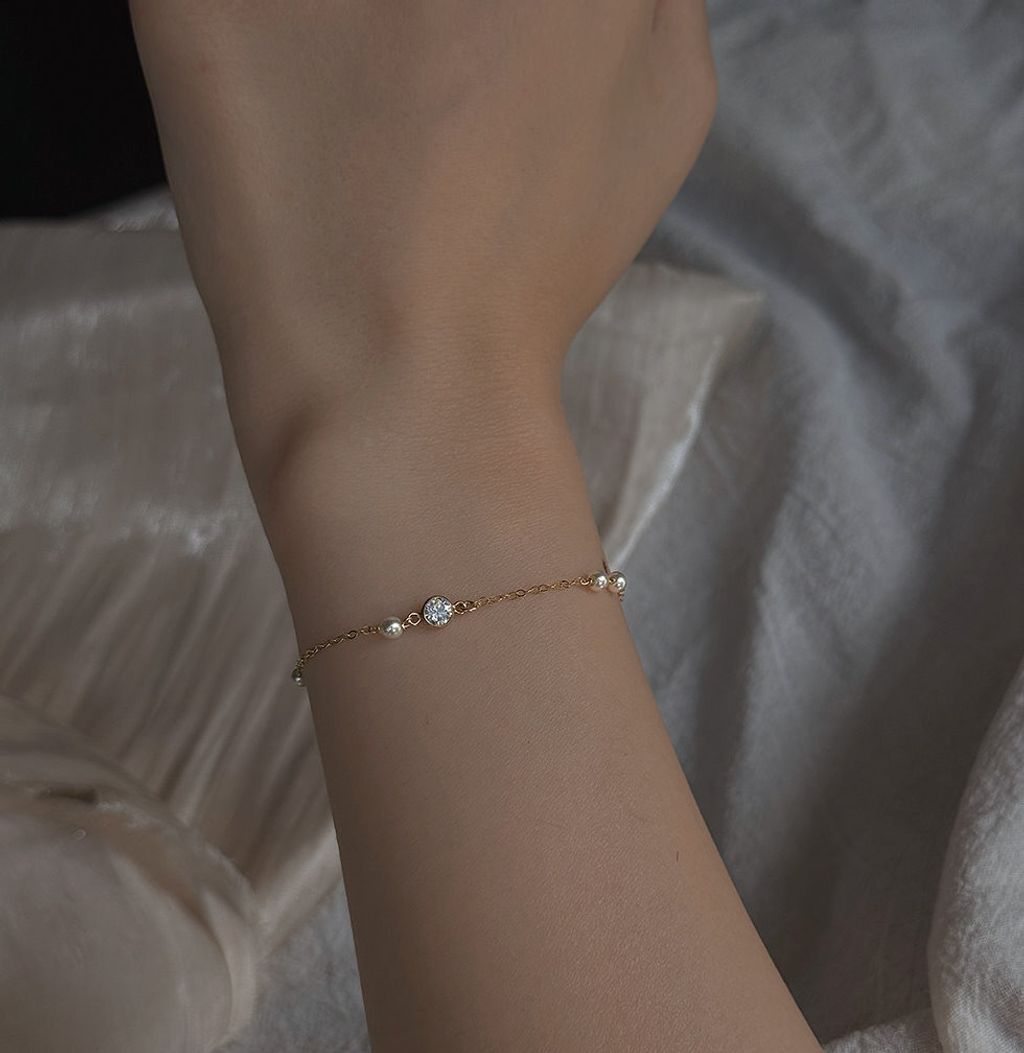 設計款珍珠閃亮水鑽14K金質感手鍊*圖片色*【S0323-82】