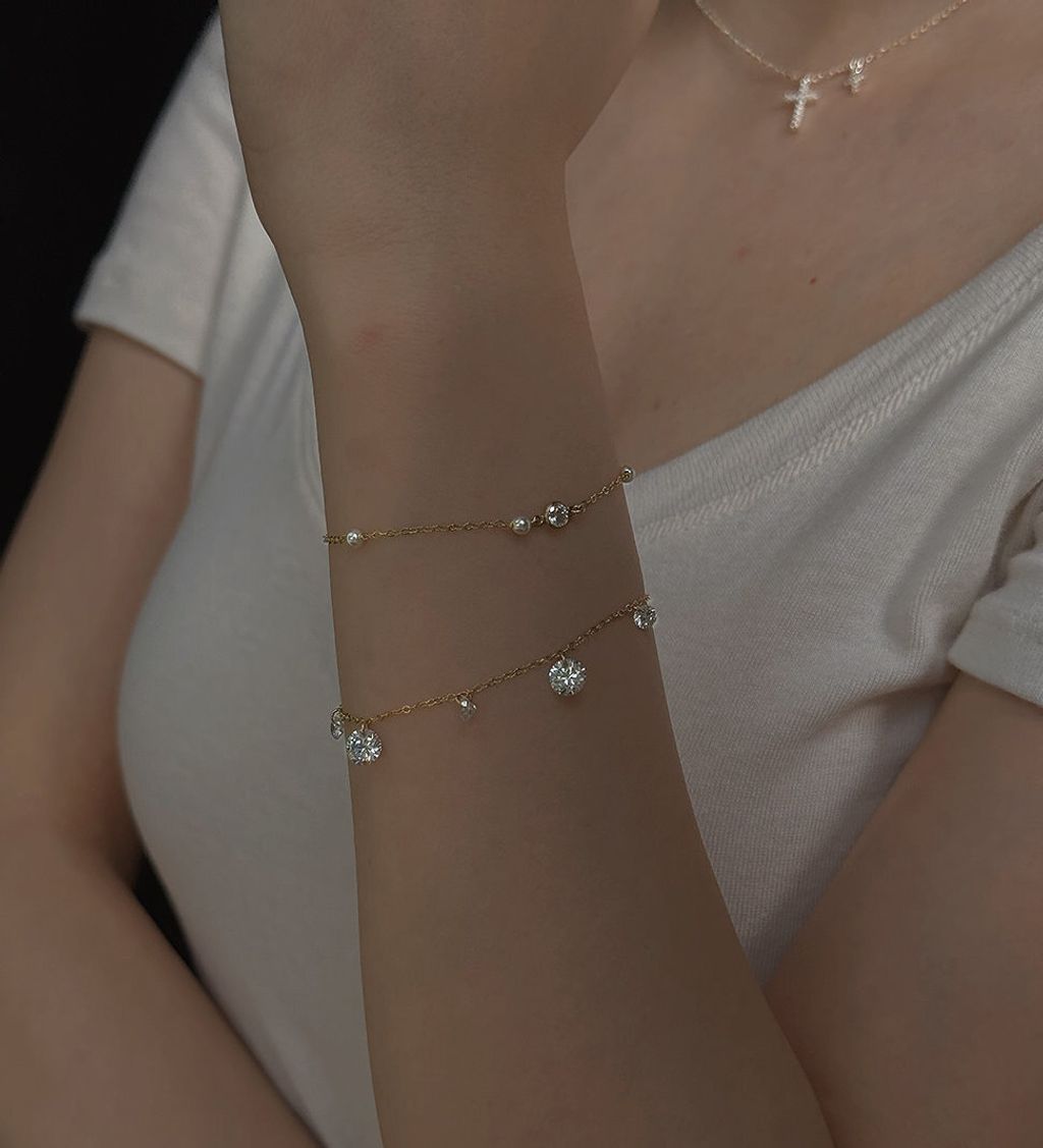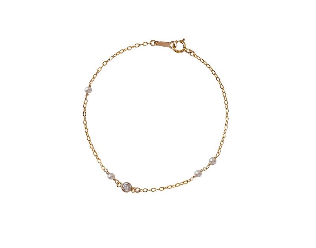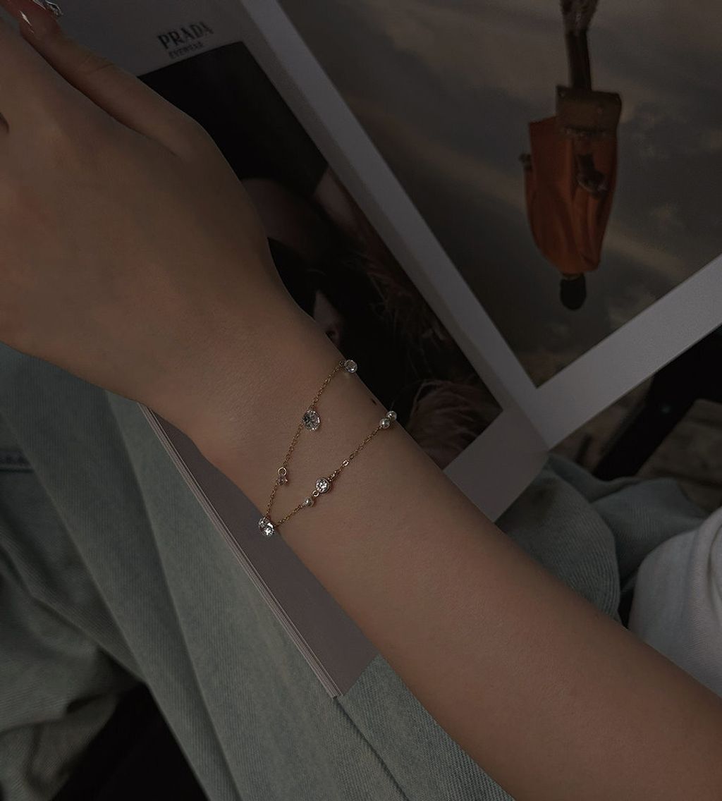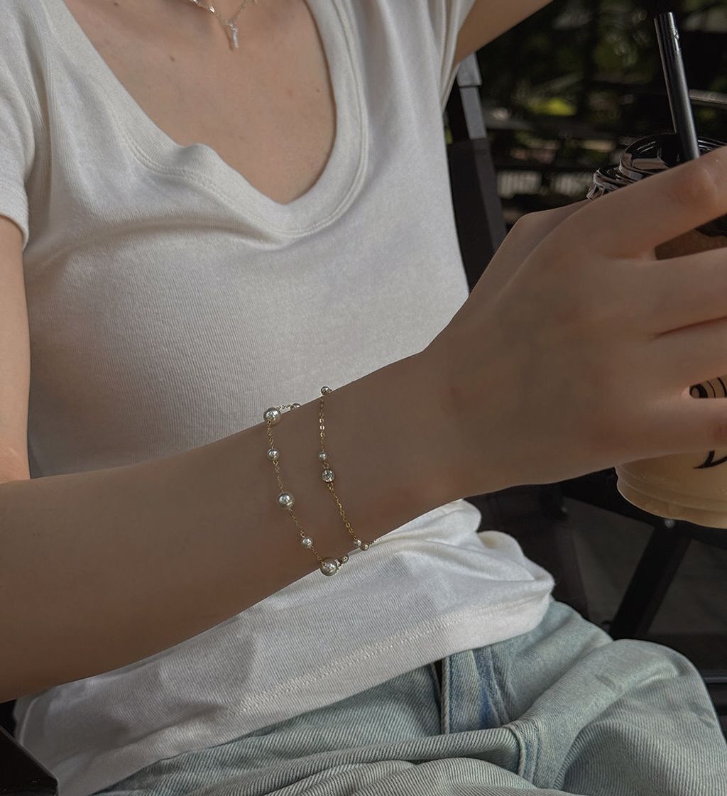 設計款珍珠閃亮水鑽14K金質感手鍊*圖片色*【S0323-82】