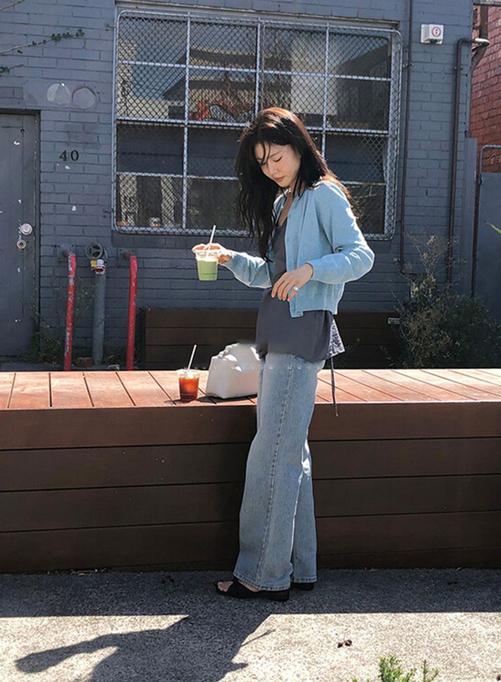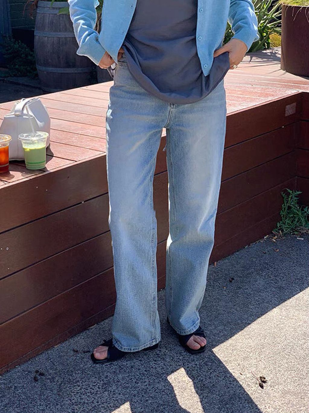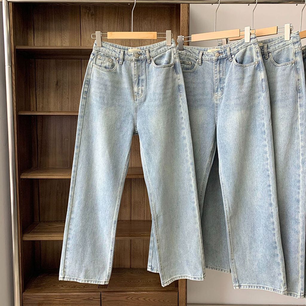韓 復古刷色設計顯瘦直筒牛仔褲*圖片色*【S0323-61】