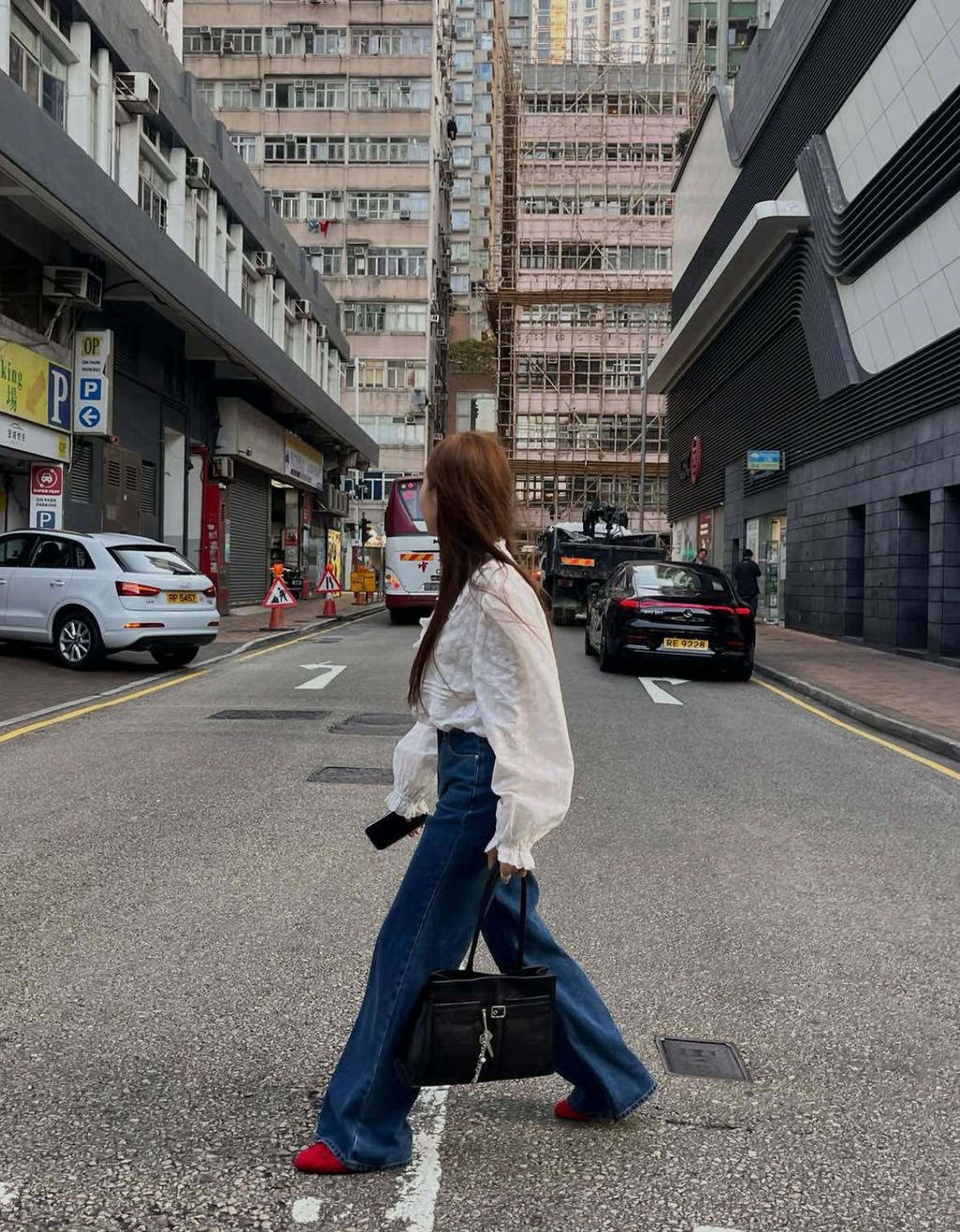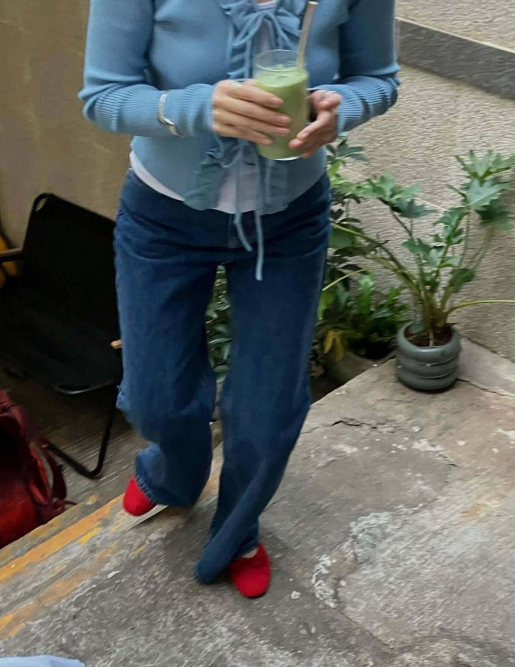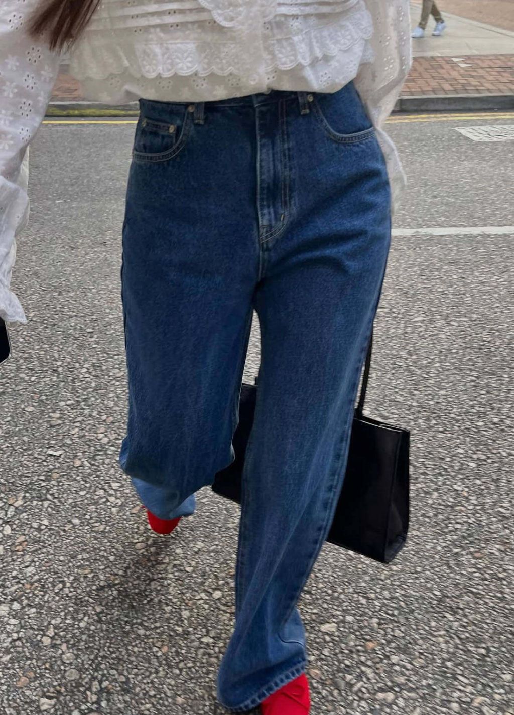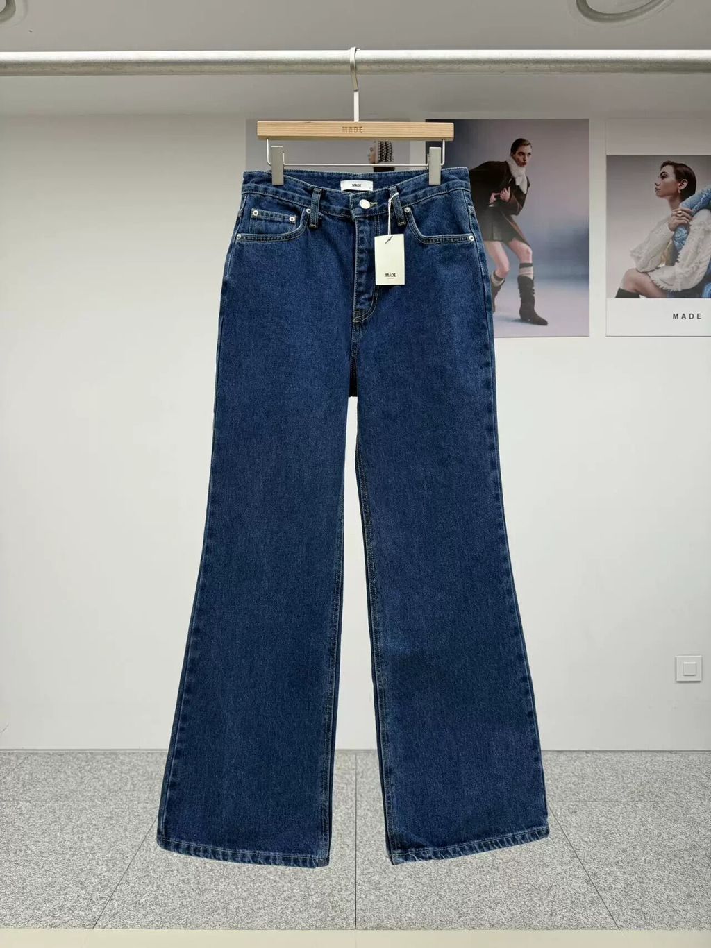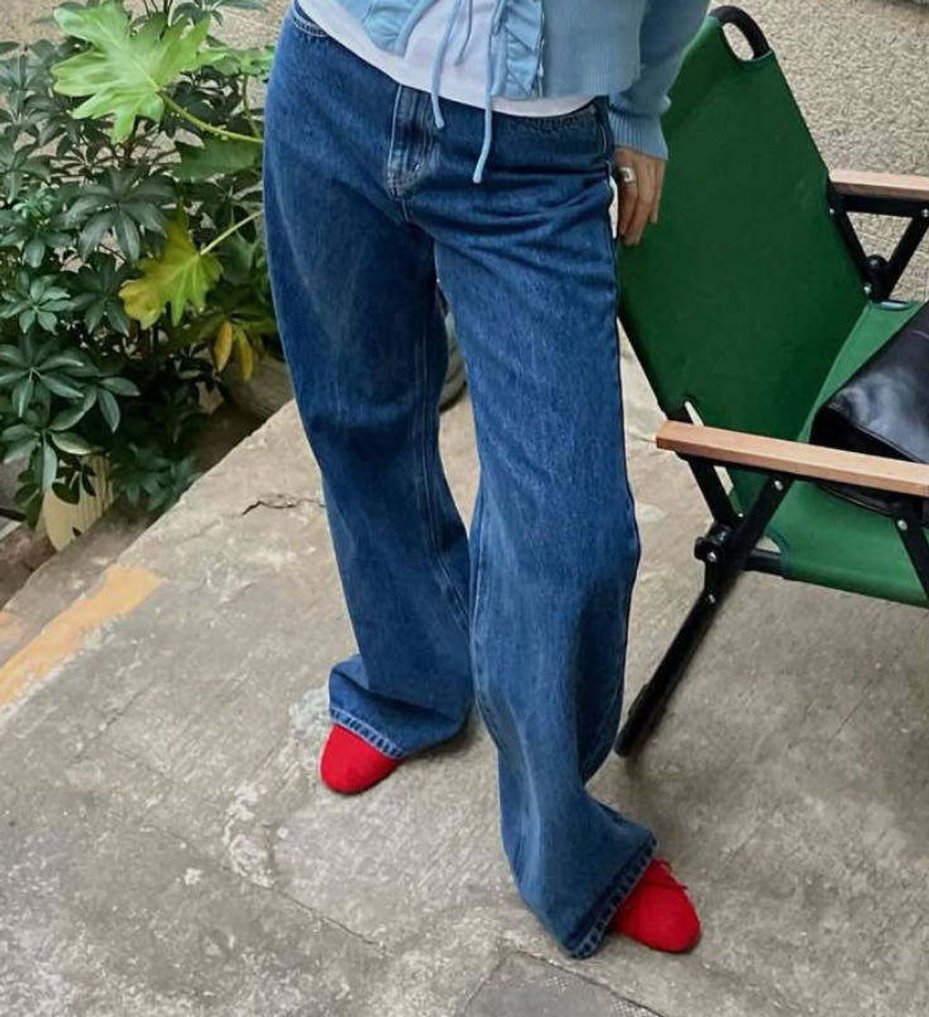 韓 復古水洗超顯瘦微喇叭直筒牛仔褲*藍*【S0323-38】