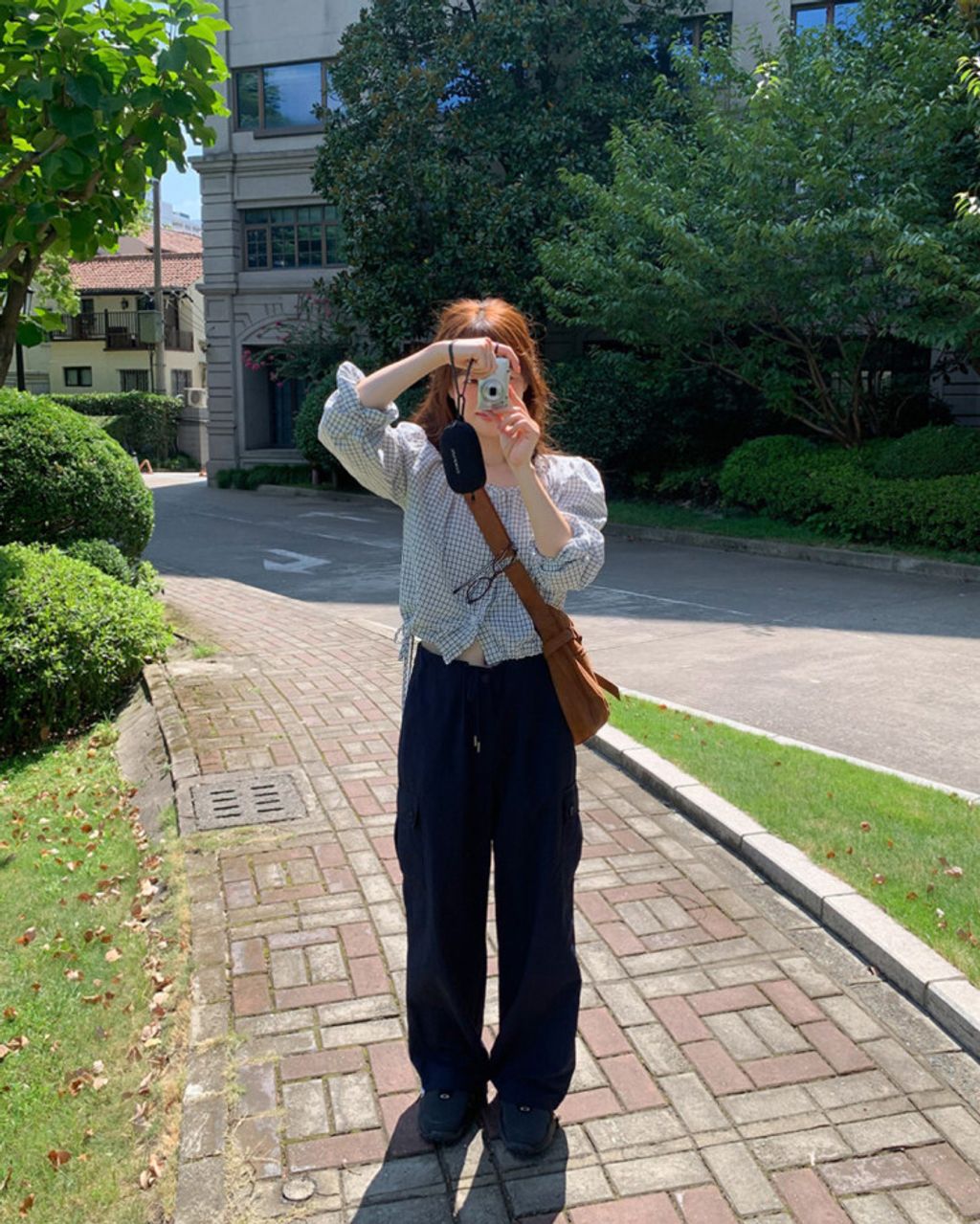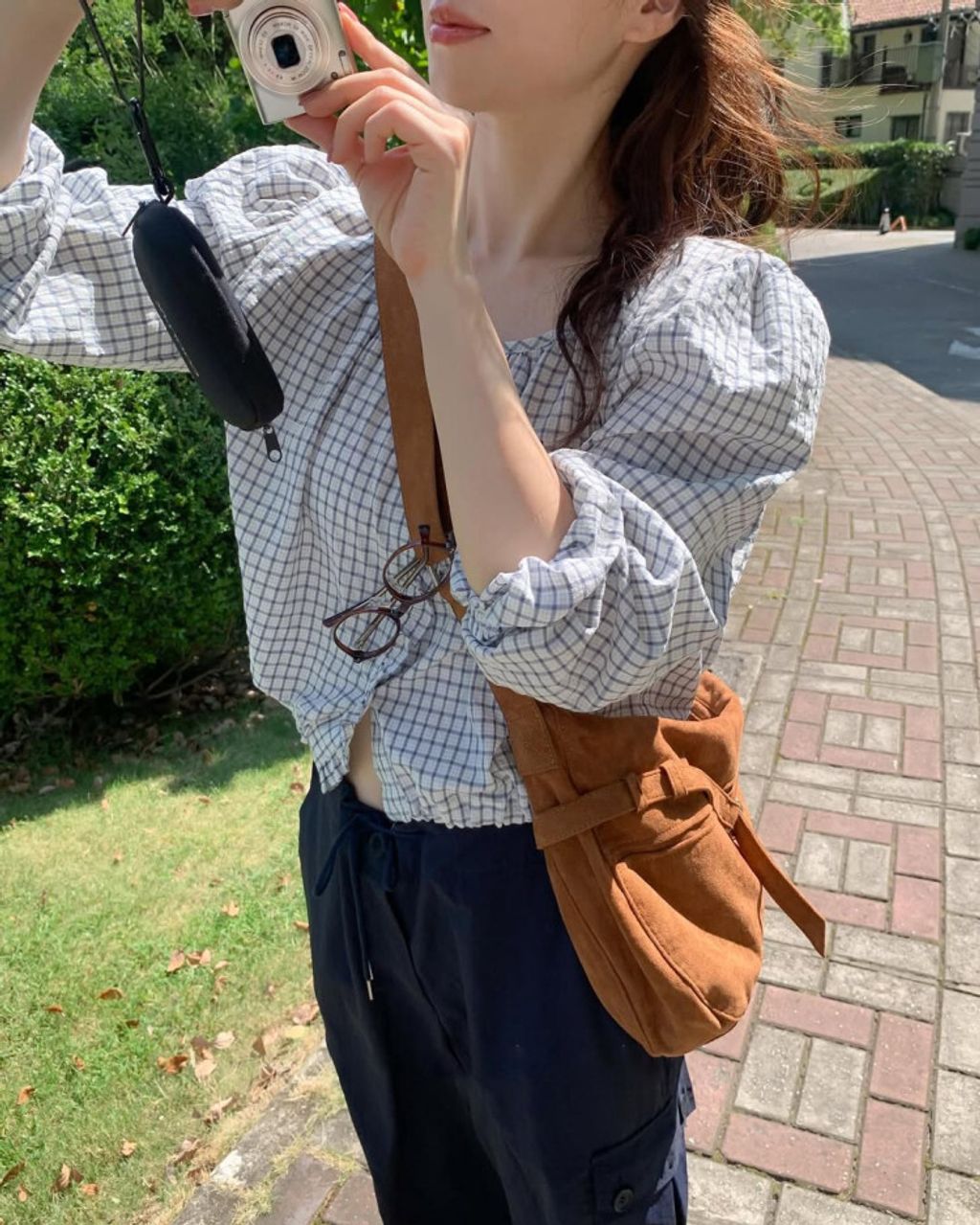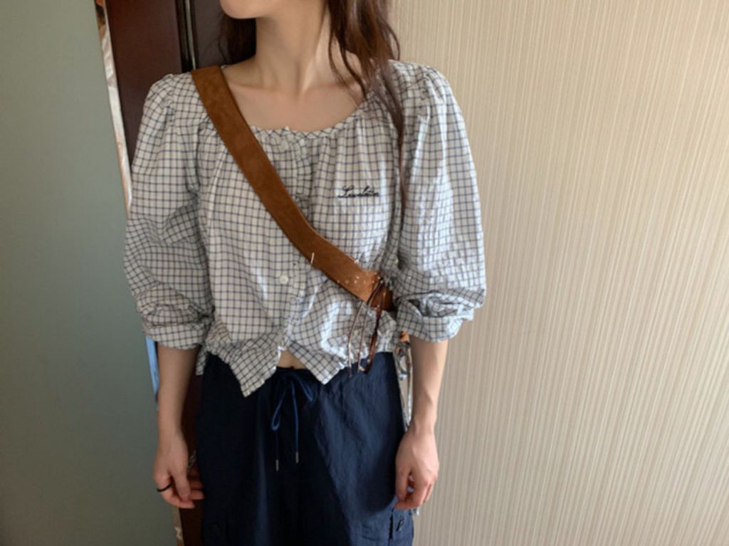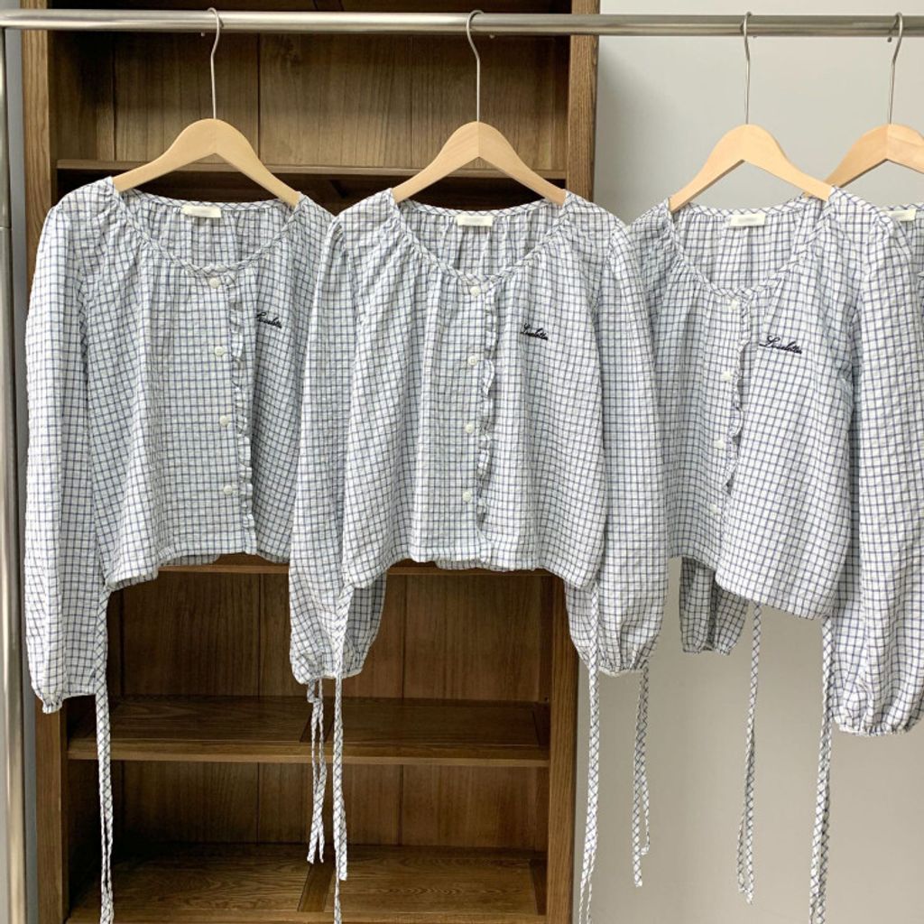 韓 甜美女孩格紋設計綁帶襯衫*淺色*【S0323-63】