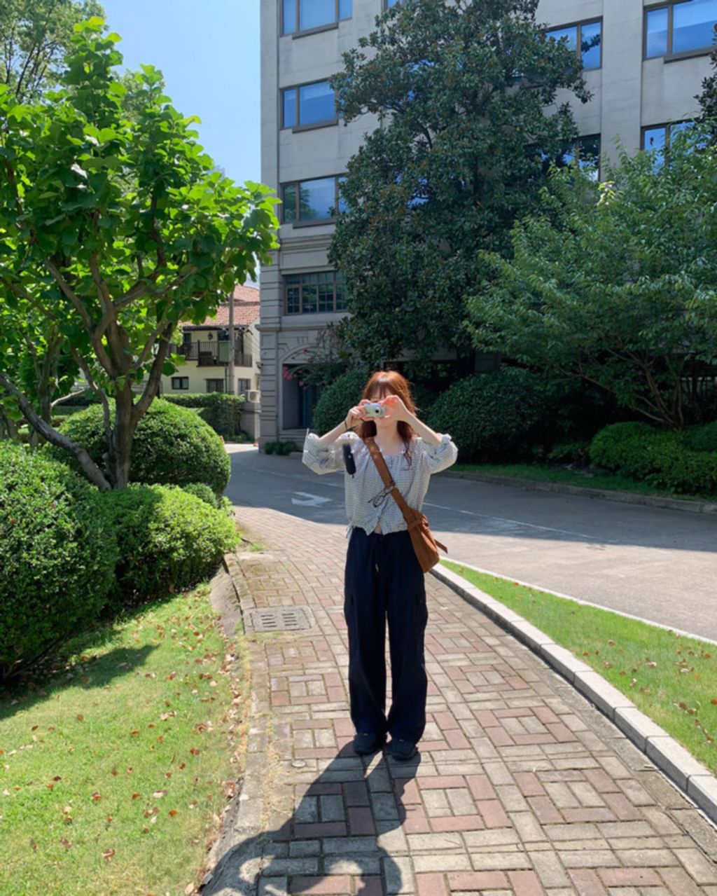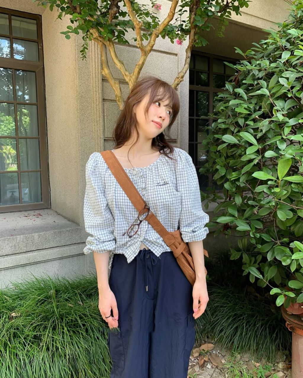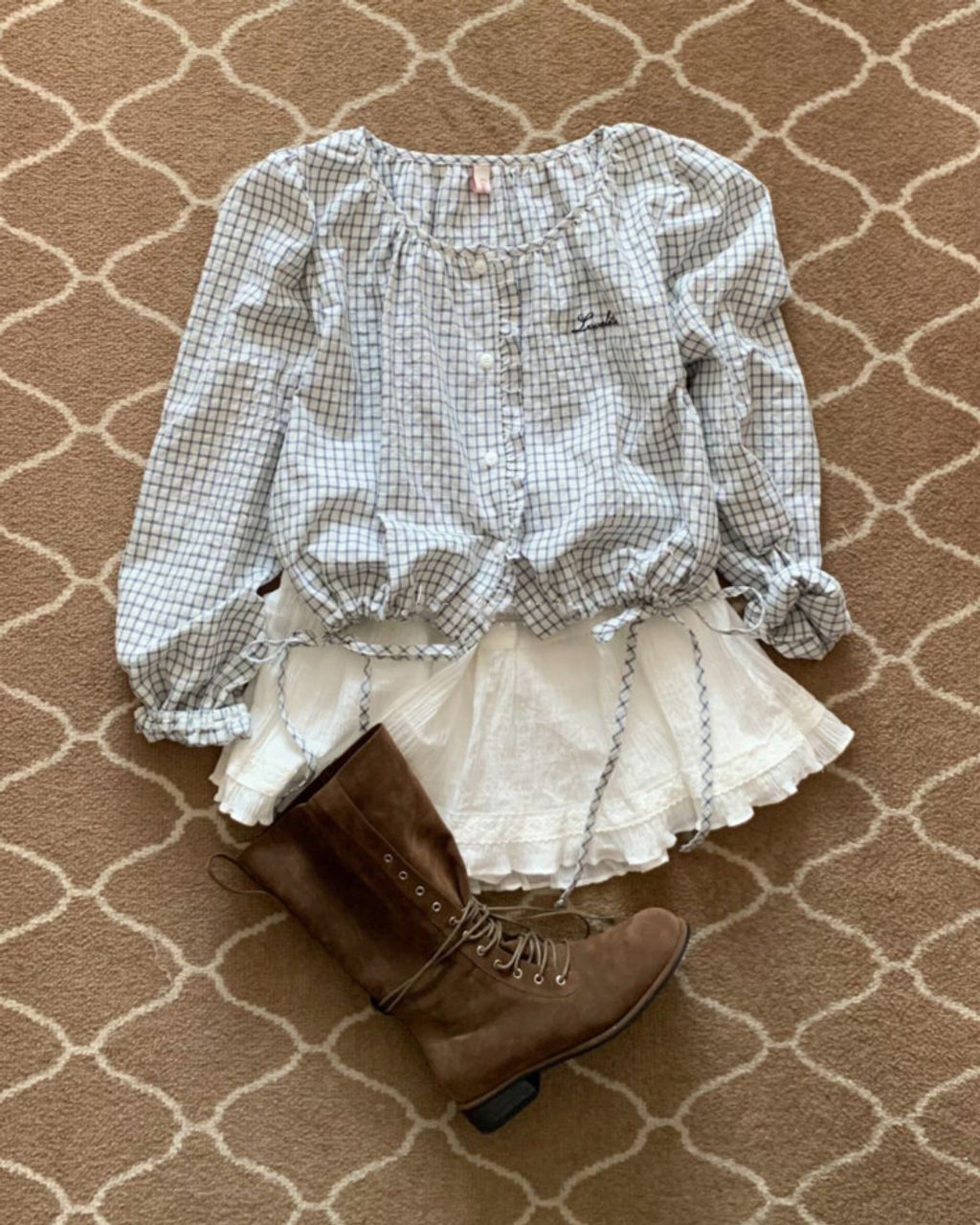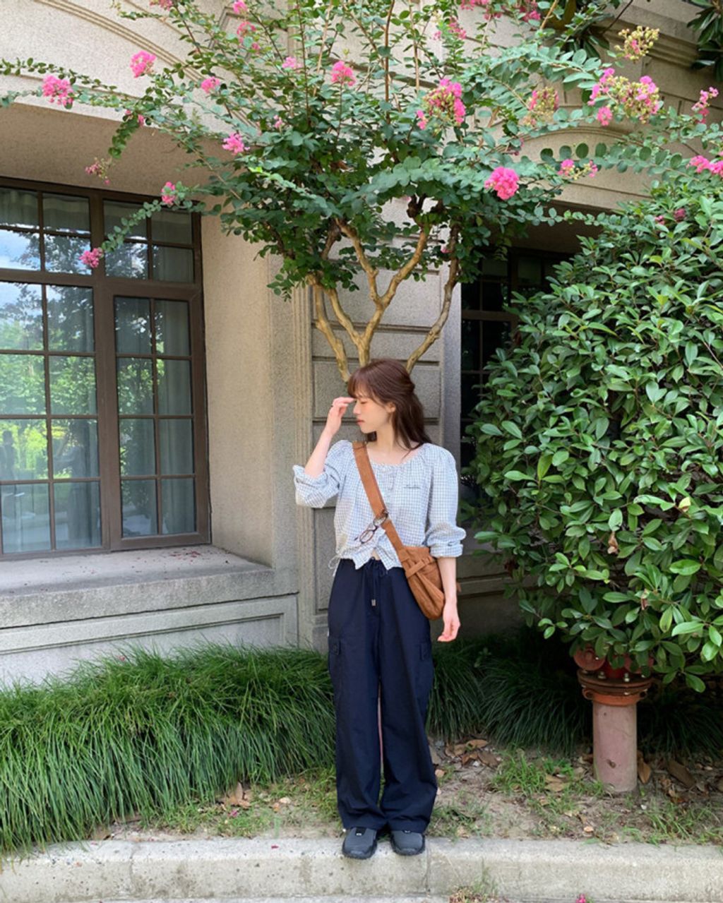 韓 甜美女孩格紋設計綁帶襯衫*淺色*【S0323-63】