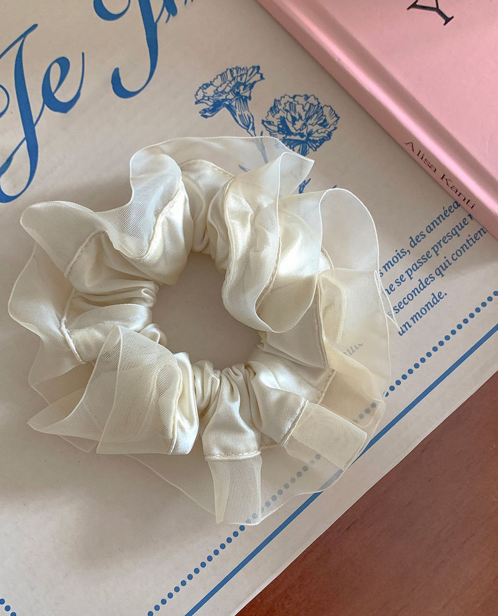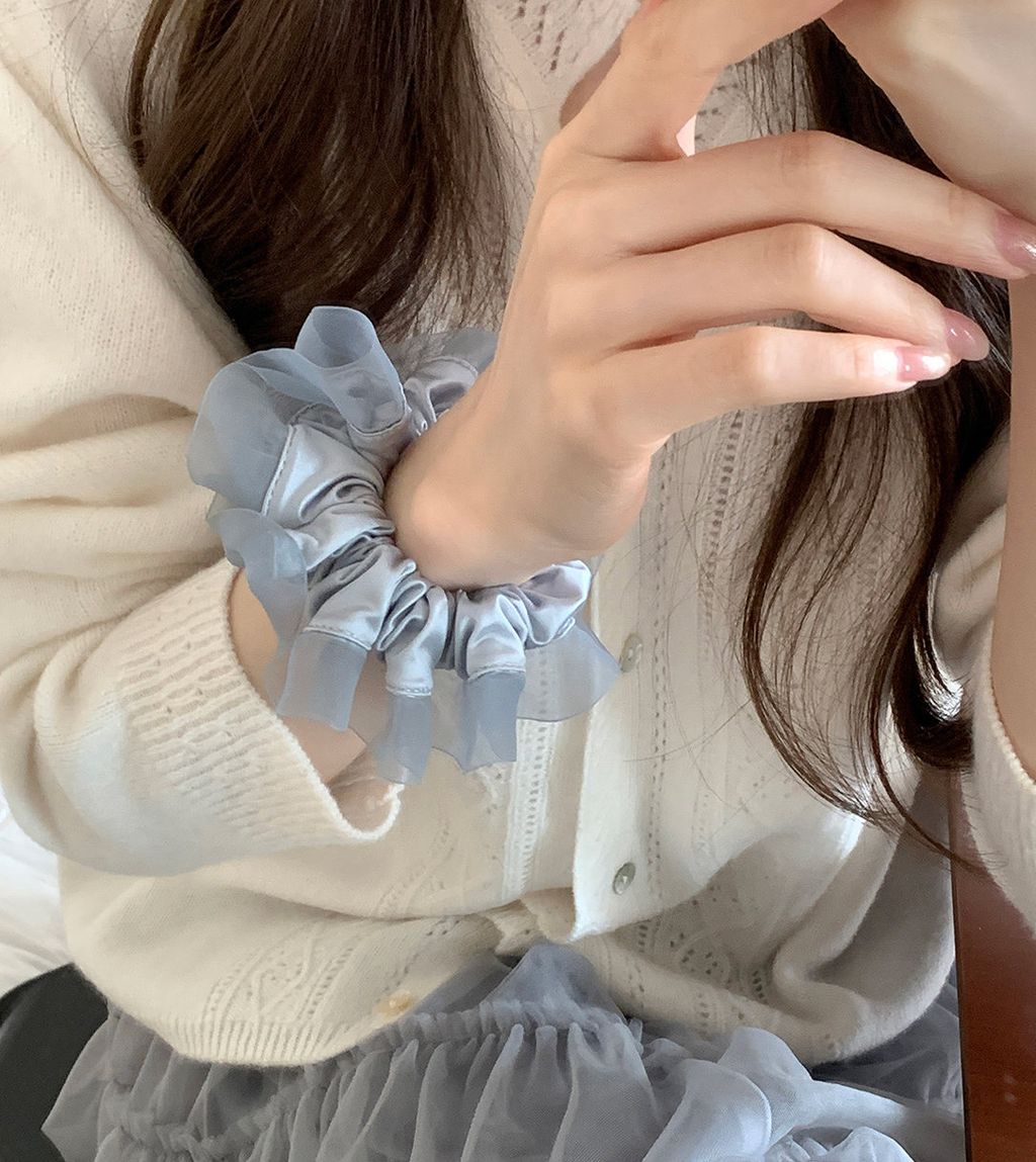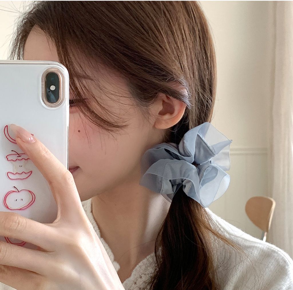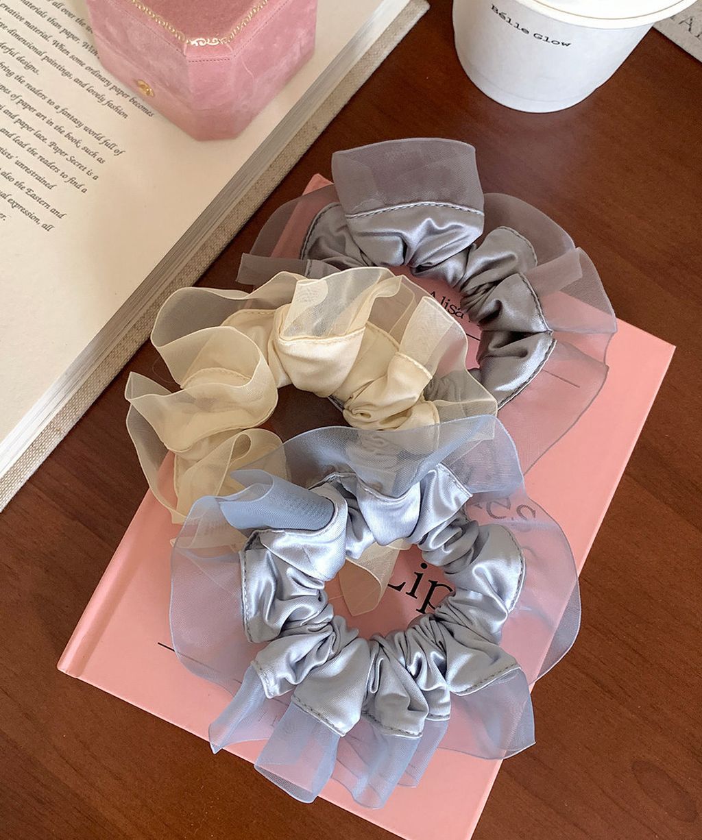 韓 甜美清新網紗荷葉邊蓬蓬髮圈*米銀灰霧藍*【S0323-81】