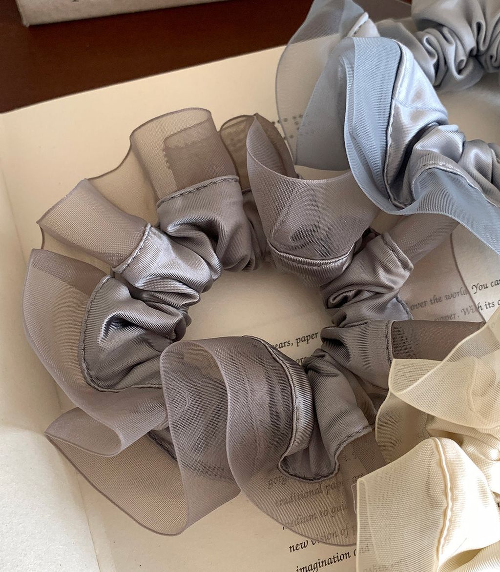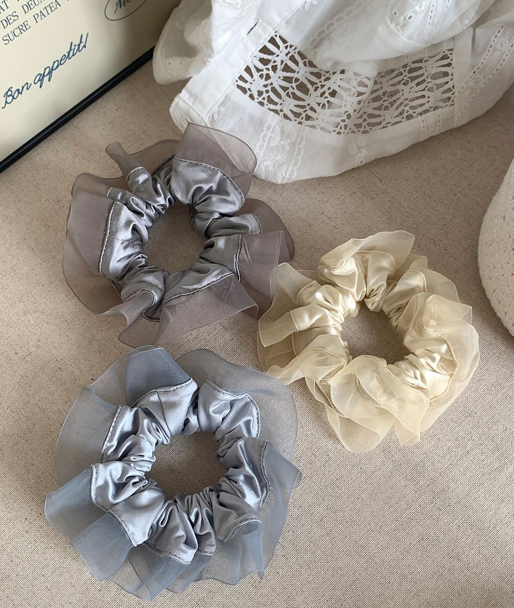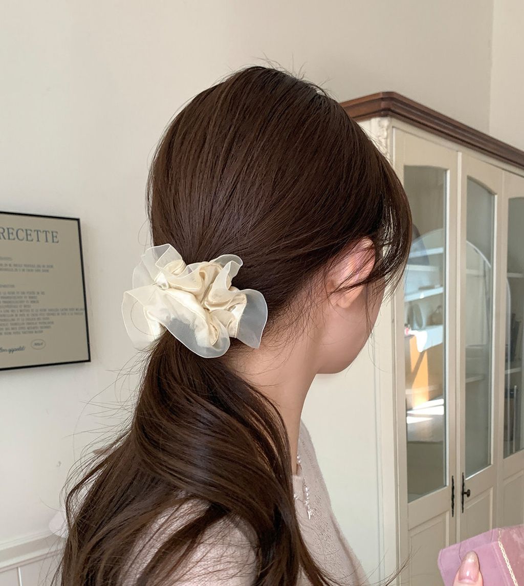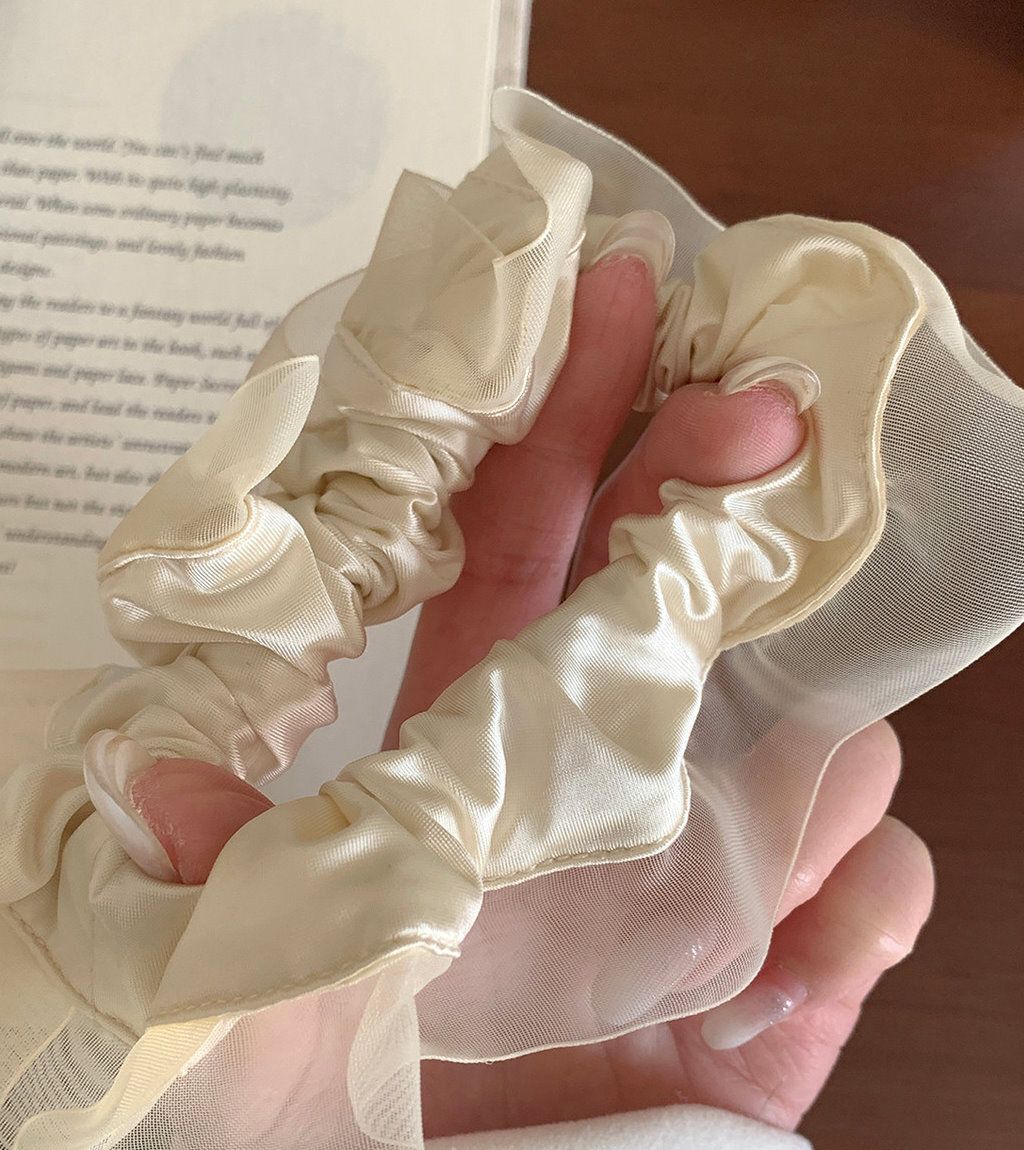 韓 甜美清新網紗荷葉邊蓬蓬髮圈*米銀灰霧藍*【S0323-81】