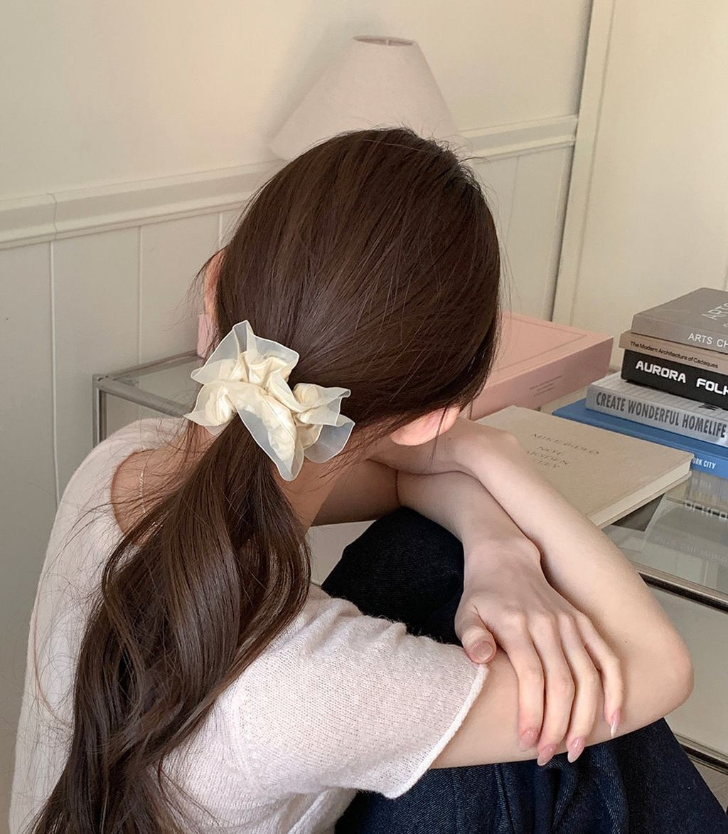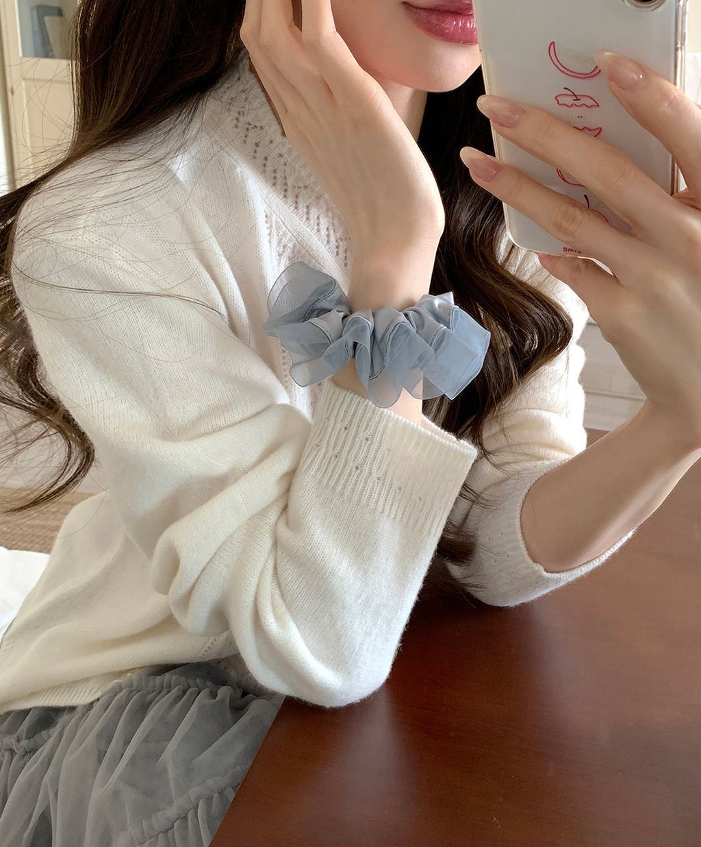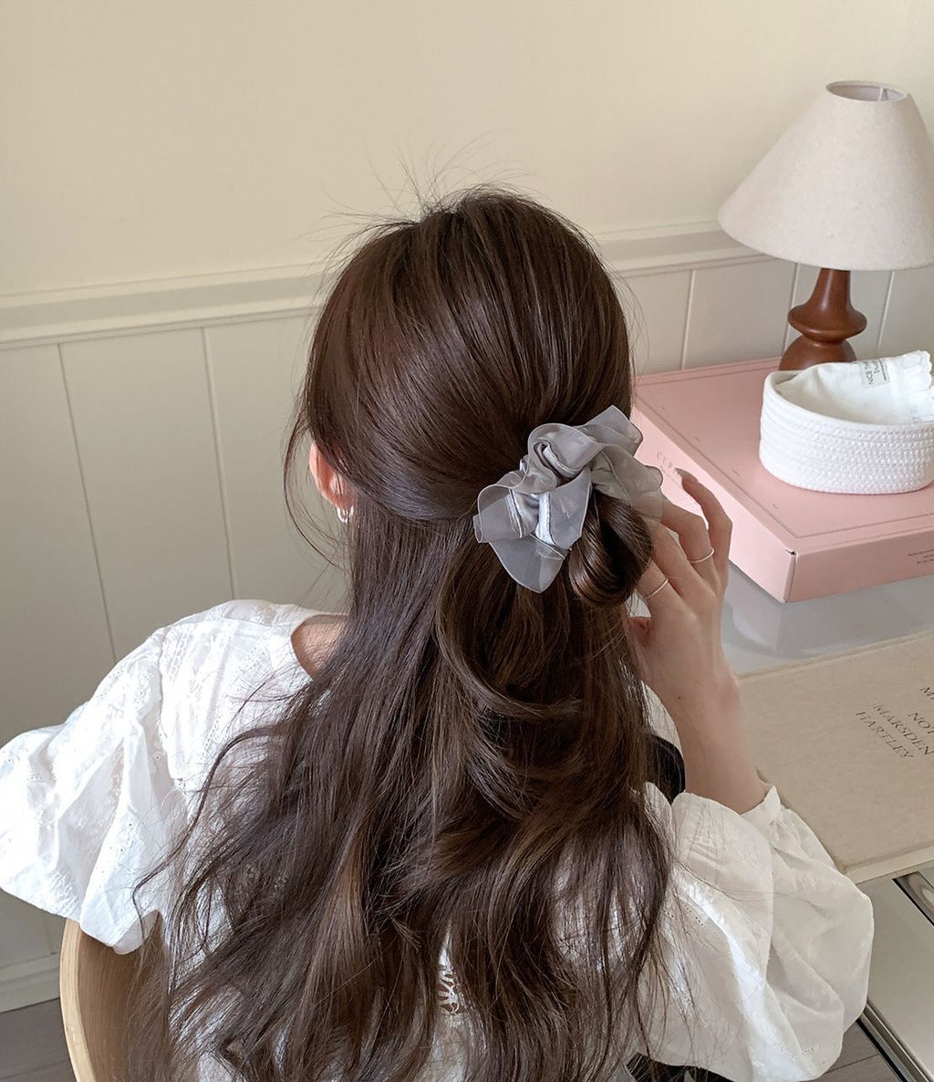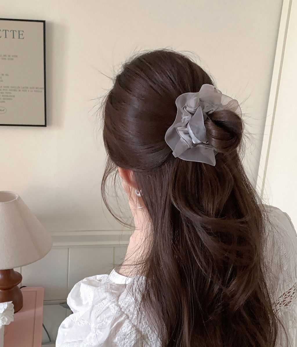 韓 甜美清新網紗荷葉邊蓬蓬髮圈*米銀灰霧藍*【S0323-81】