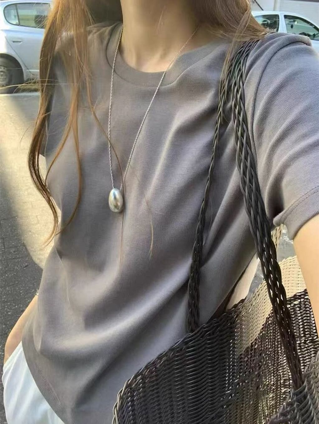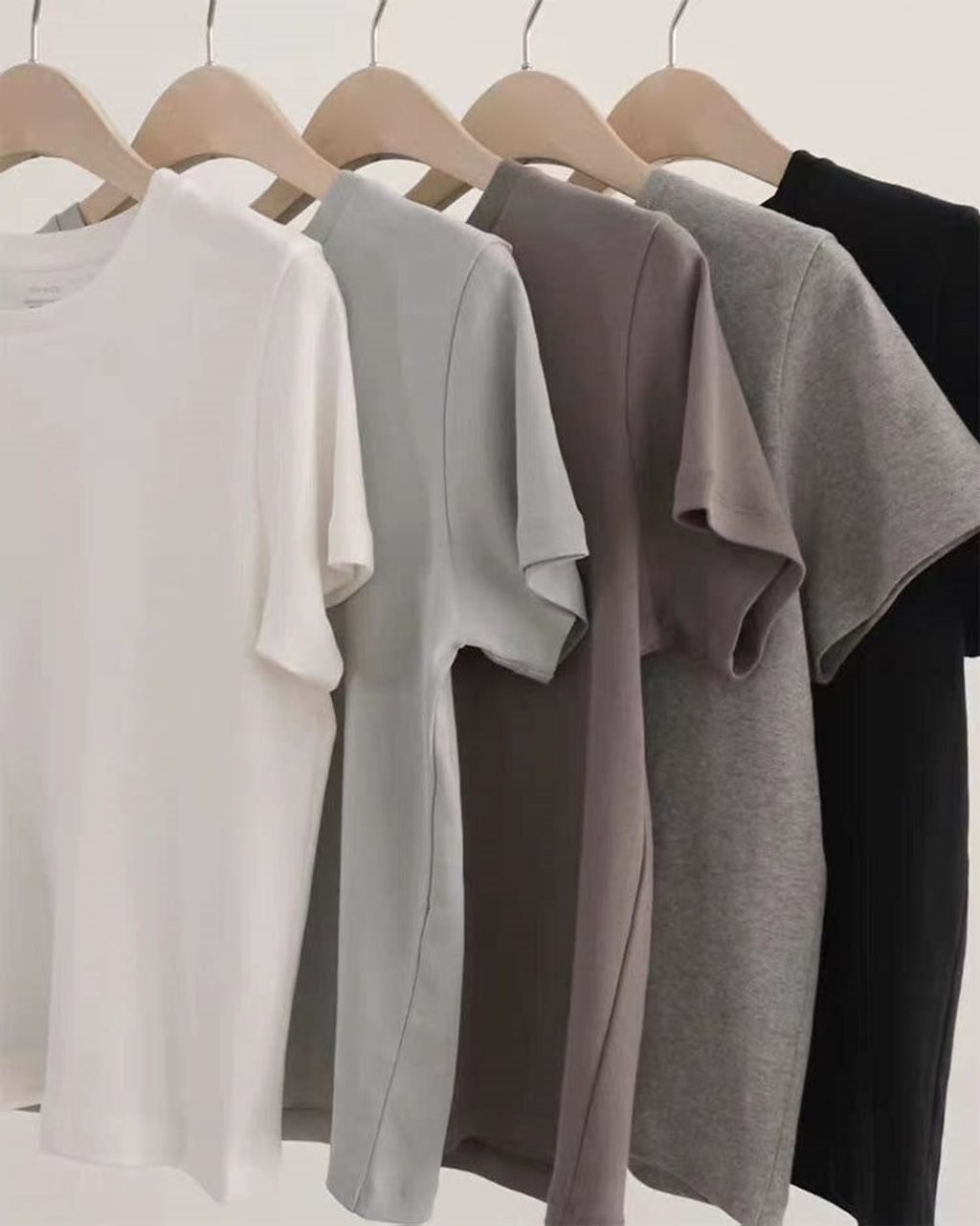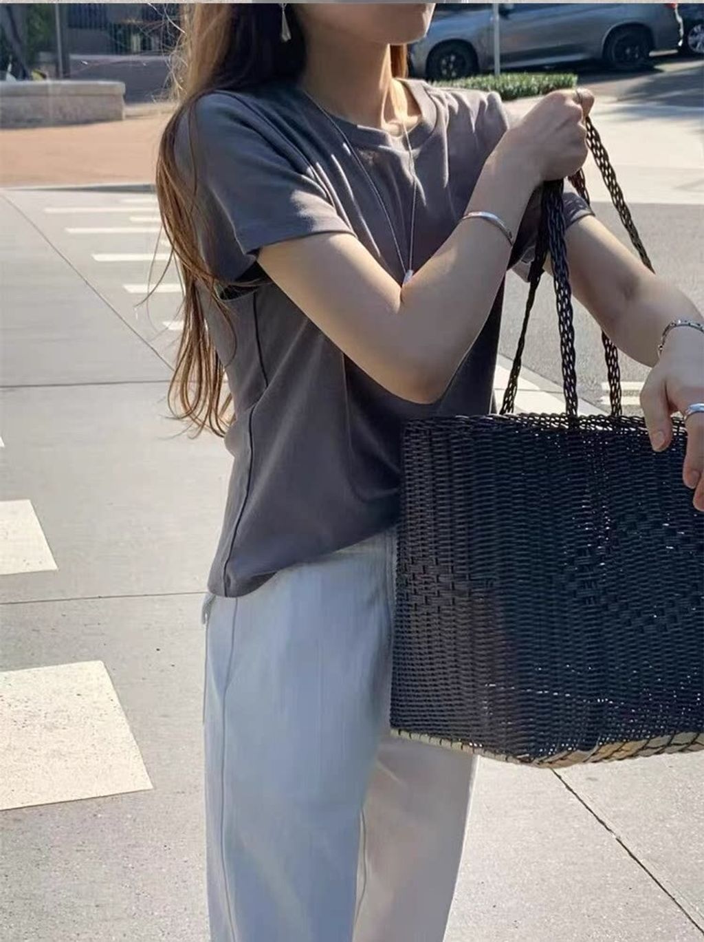 韓 純棉極簡寬鬆感好穿短T*白黑淺綠灰灰棕*【S0323-47】