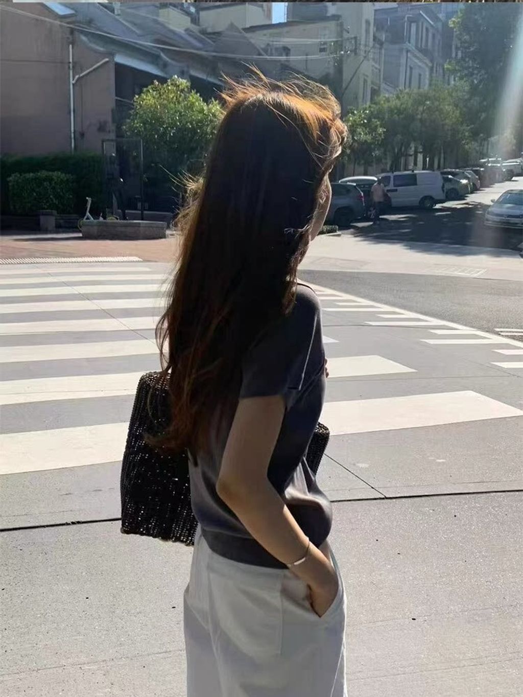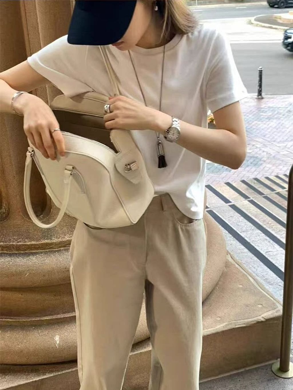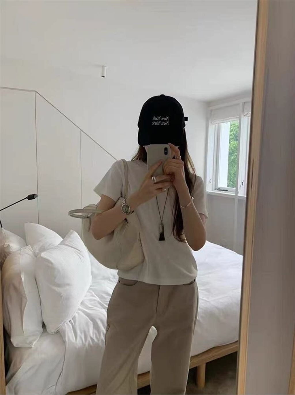 韓 純棉極簡寬鬆感好穿短T*白黑淺綠灰灰棕*【S0323-47】