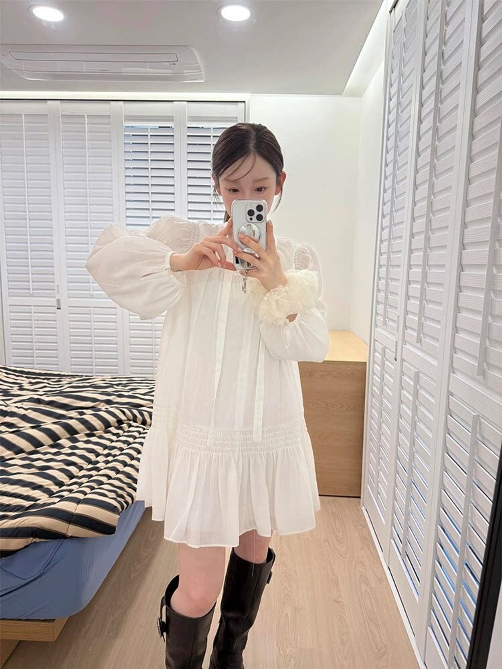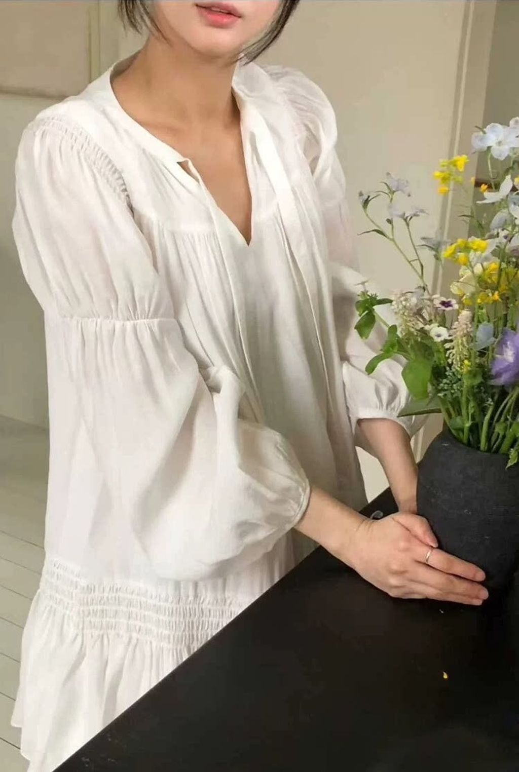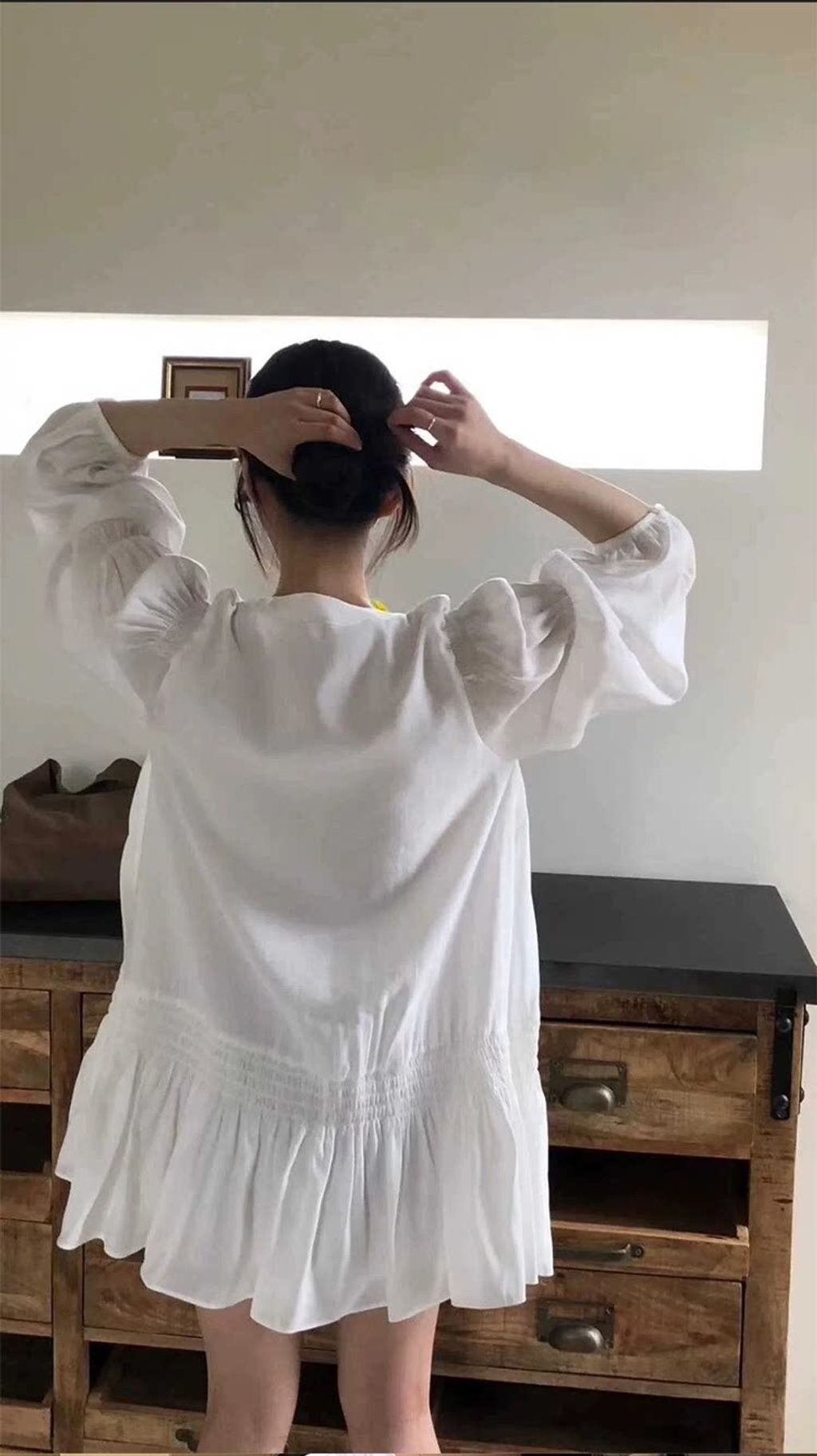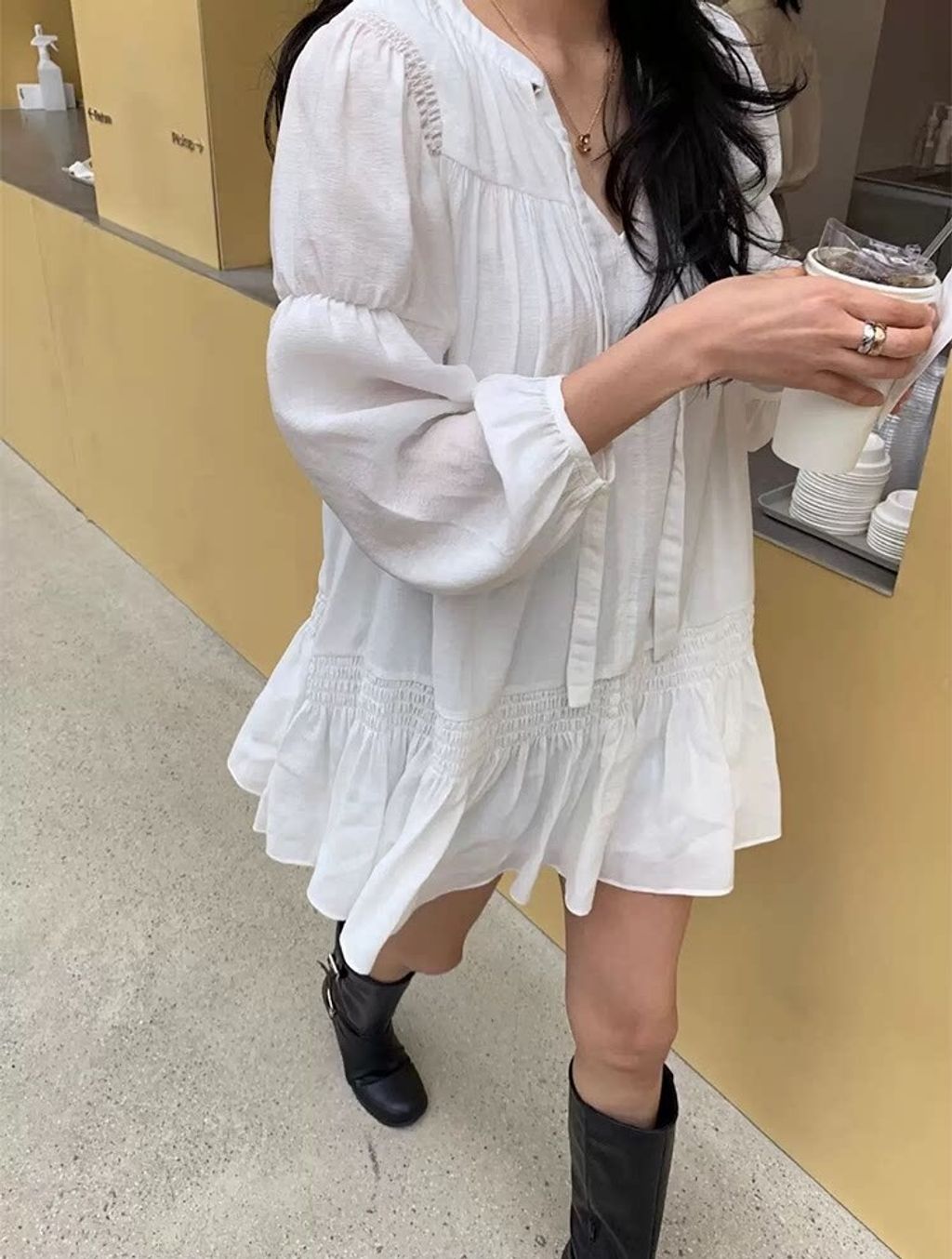 韓 設計款甜美荷葉邊綁帶雪紡連衣裙*白*【S0323-59】