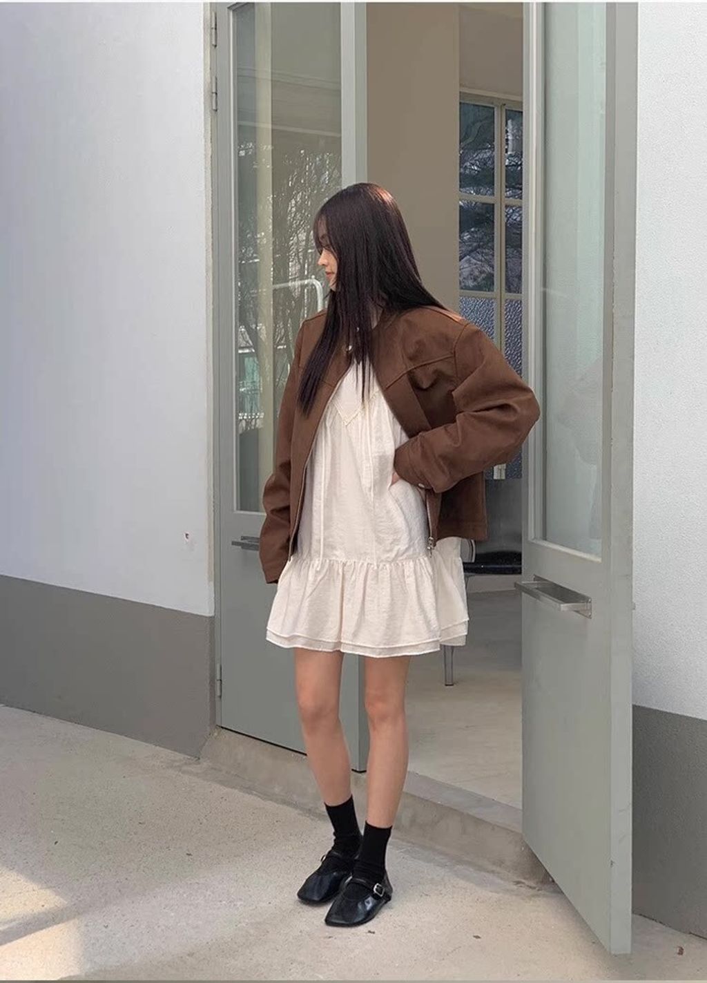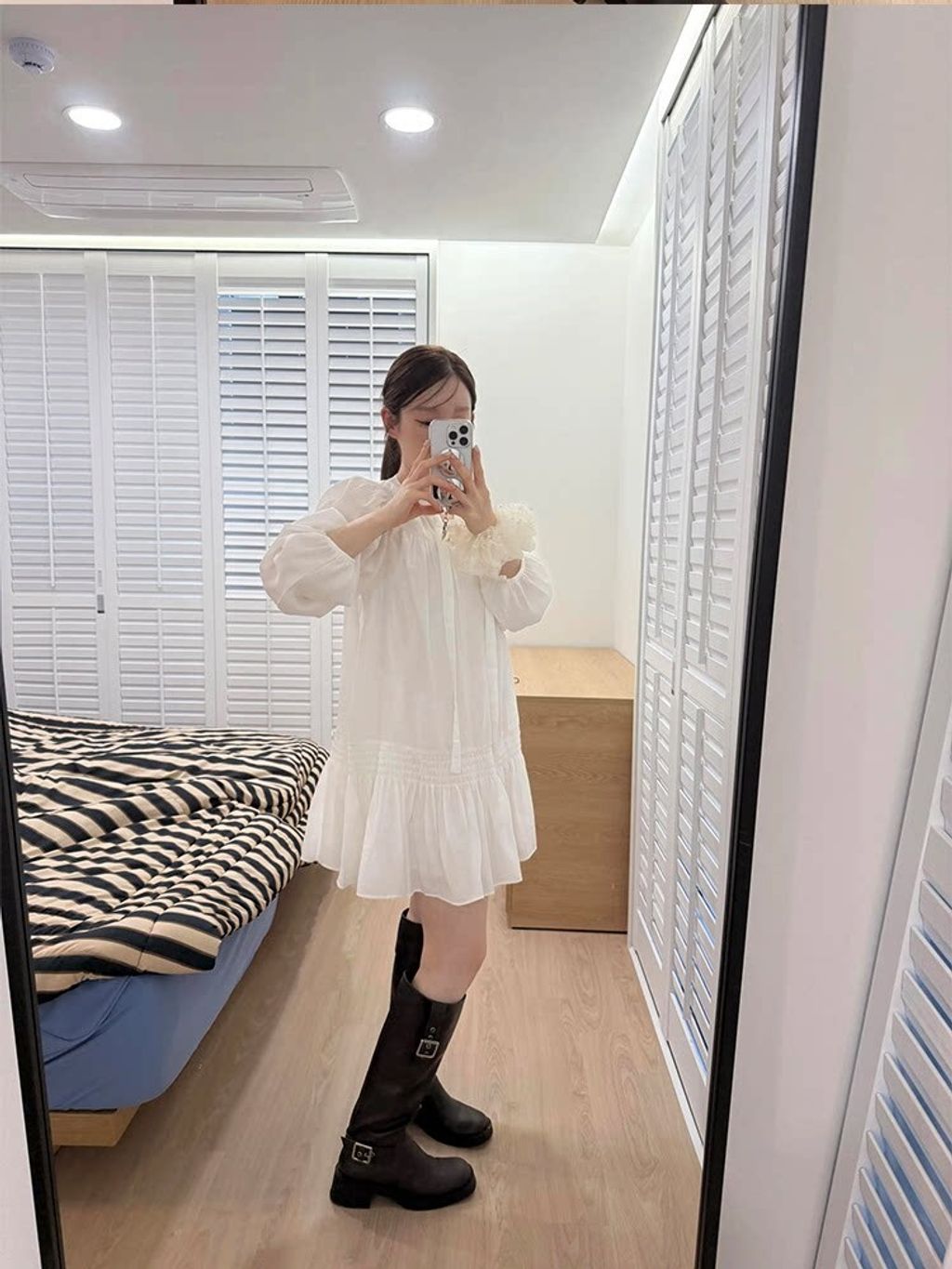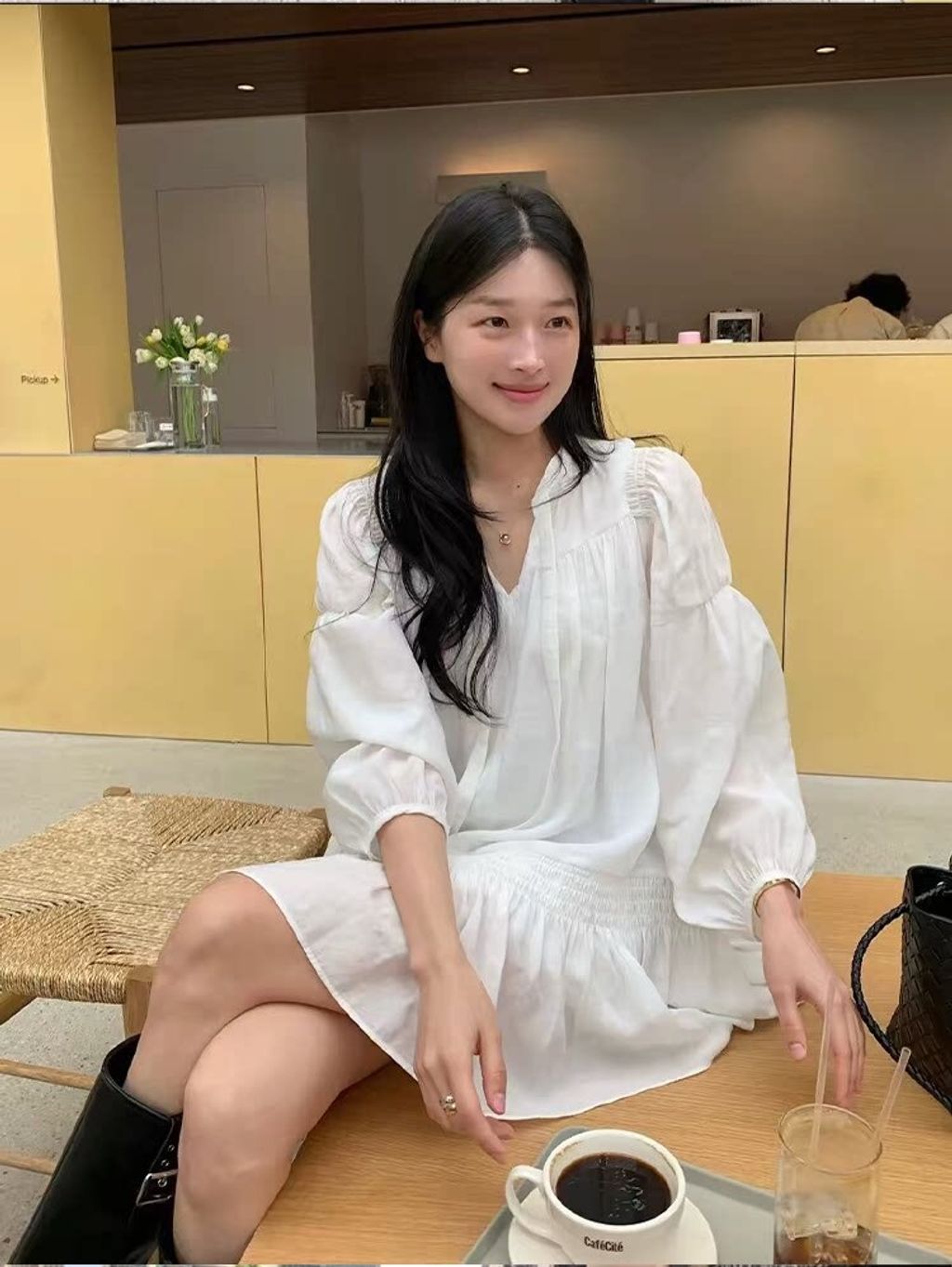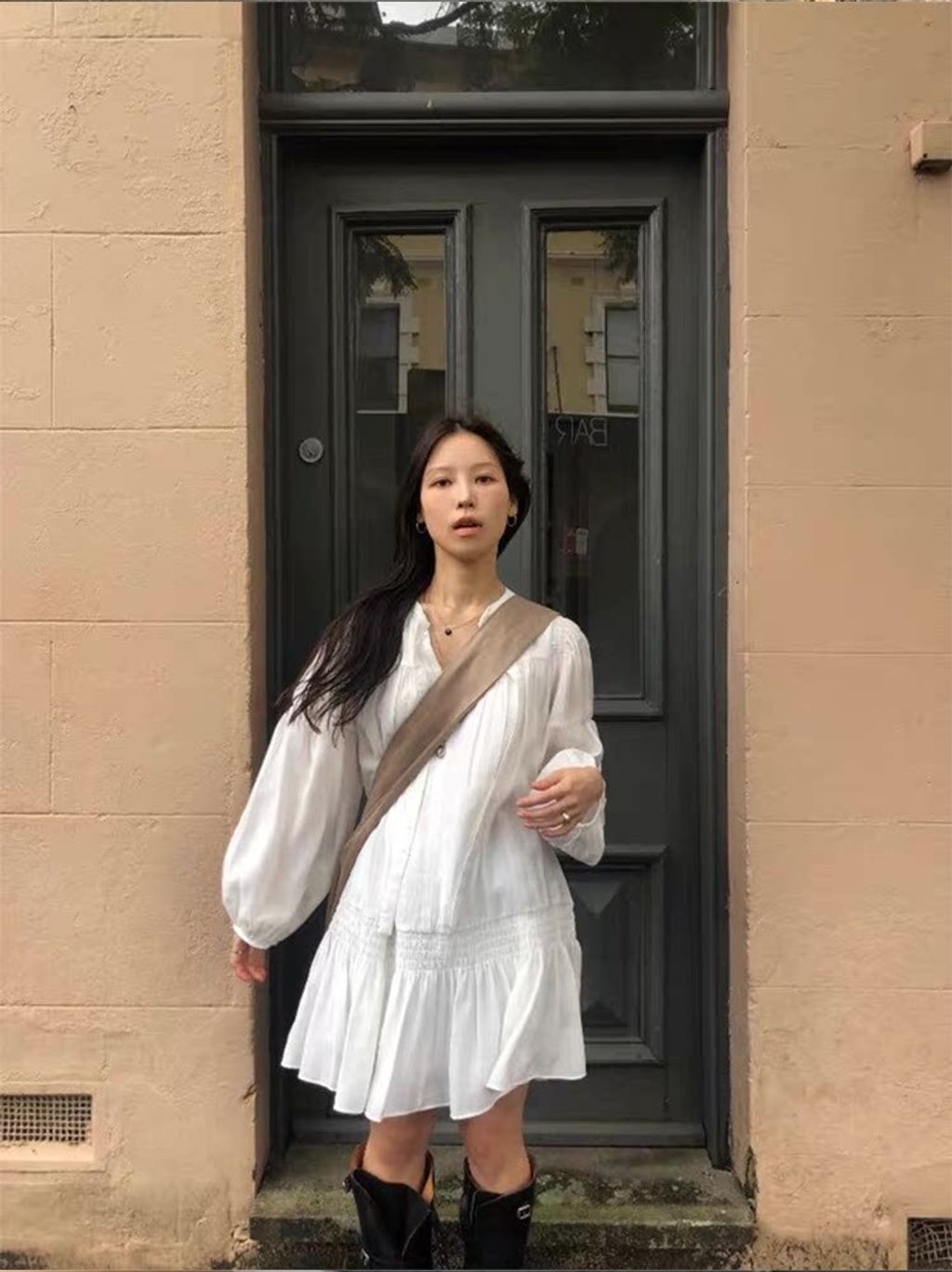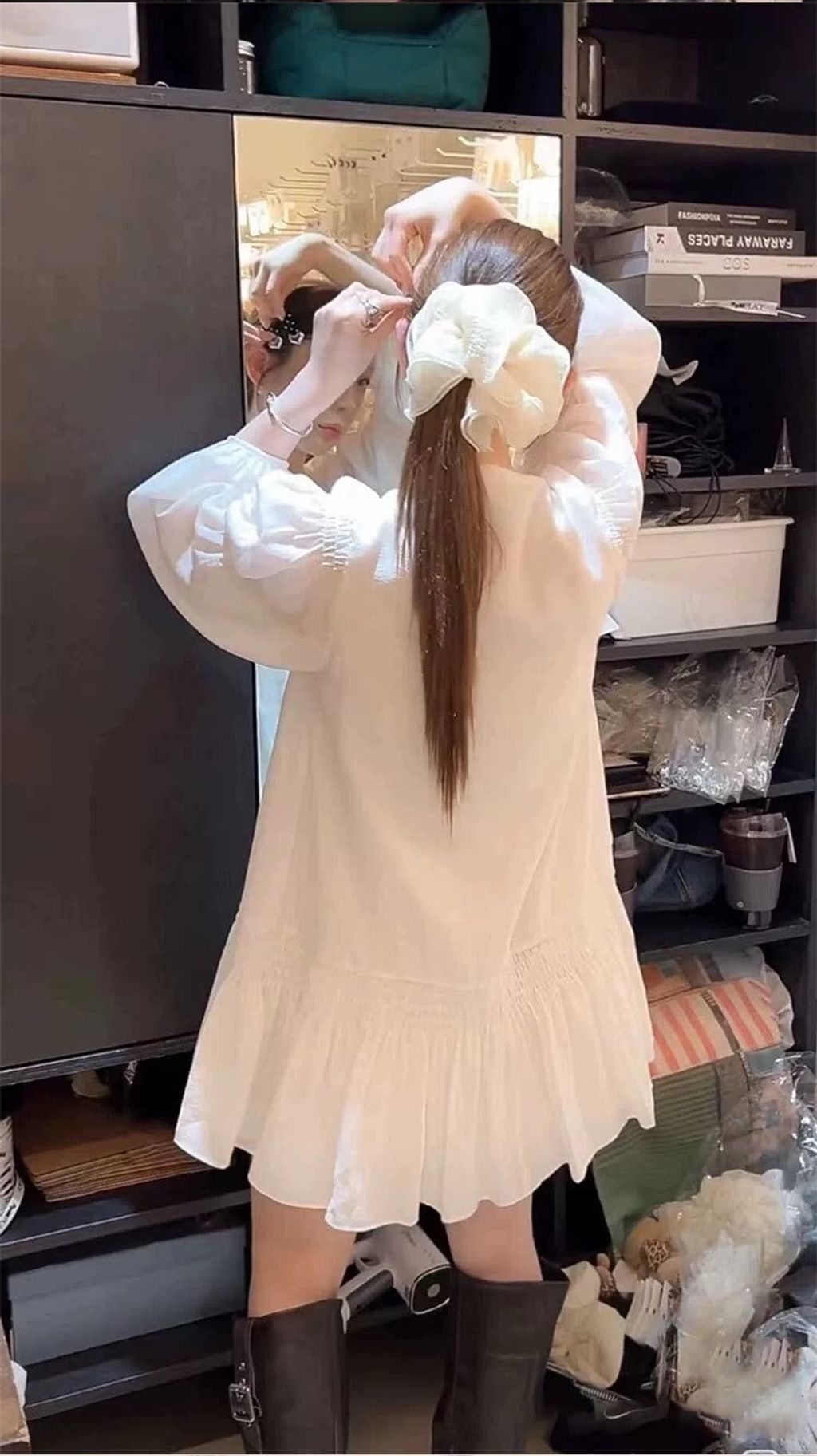 韓 設計款甜美荷葉邊綁帶雪紡連衣裙*白*【S0323-59】