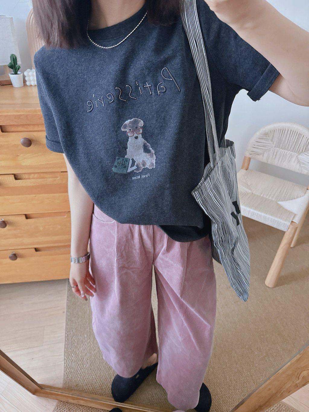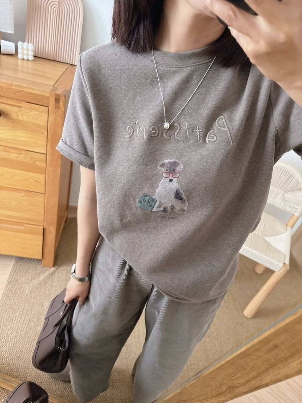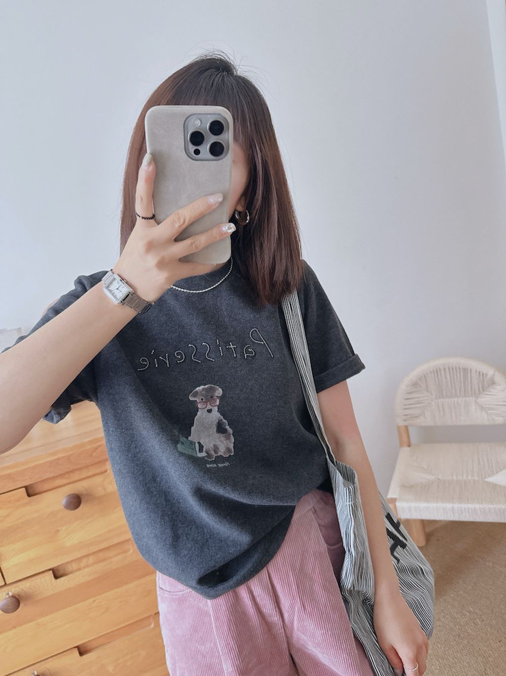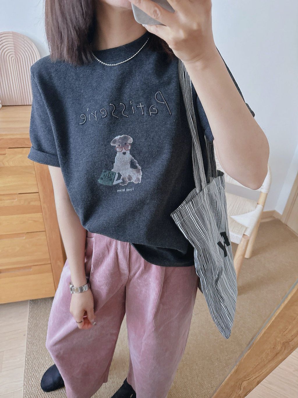 可愛手繪小狗狗短T*咖米深灰*【S0323-301】