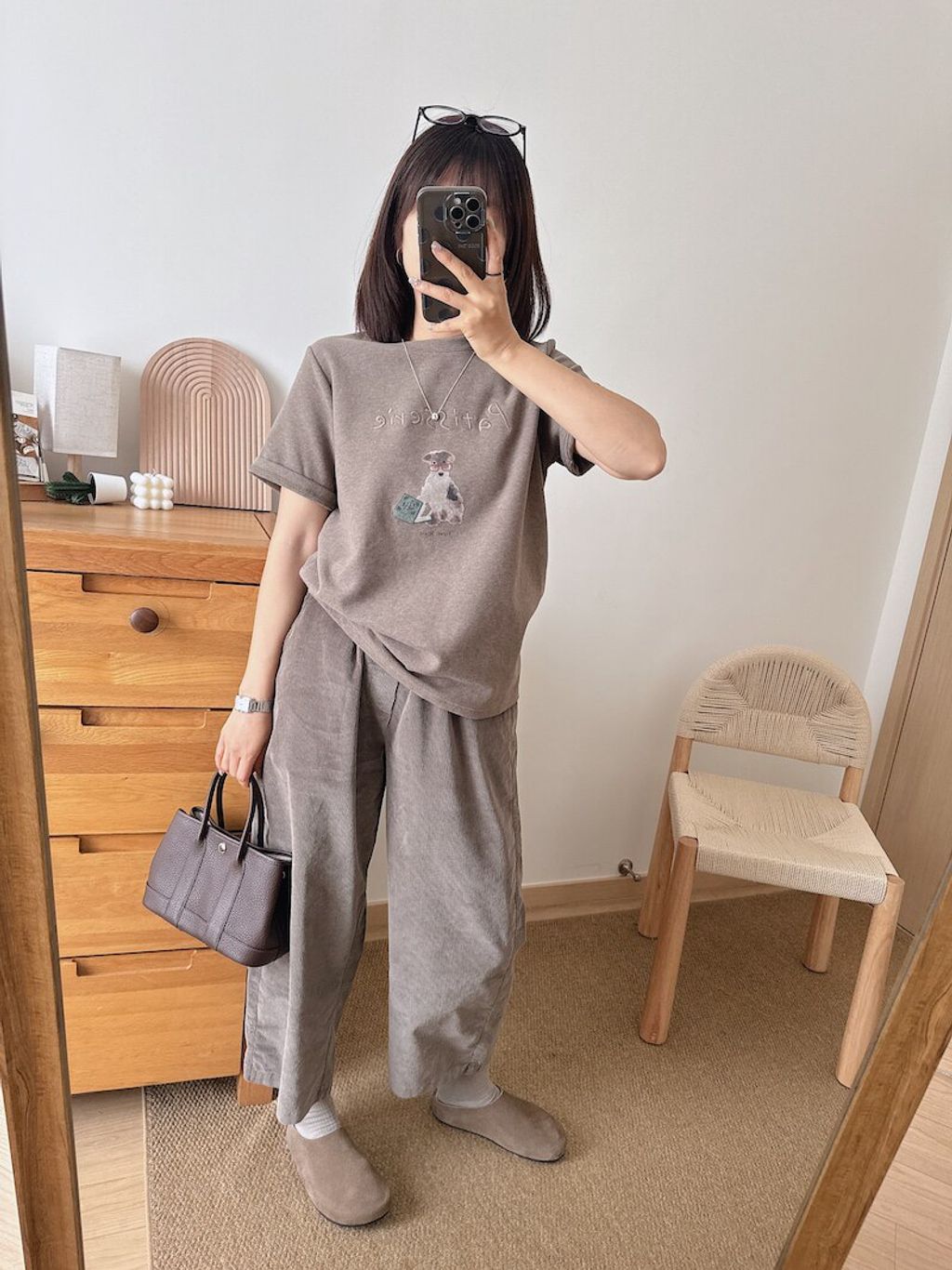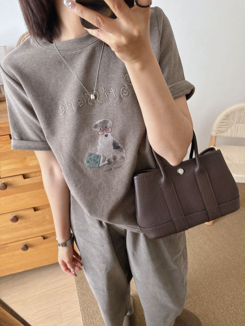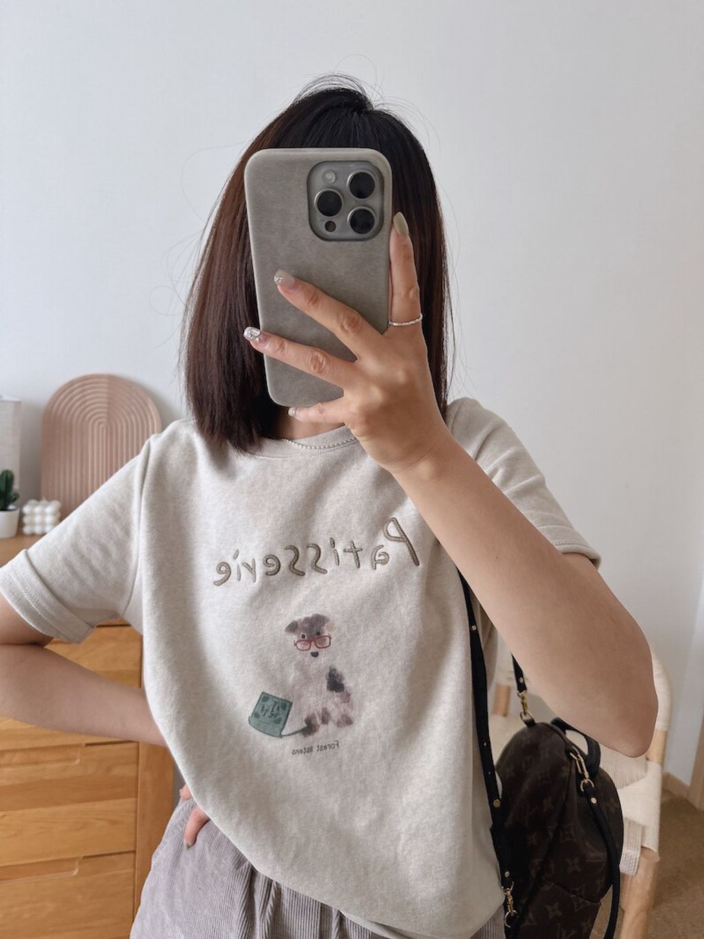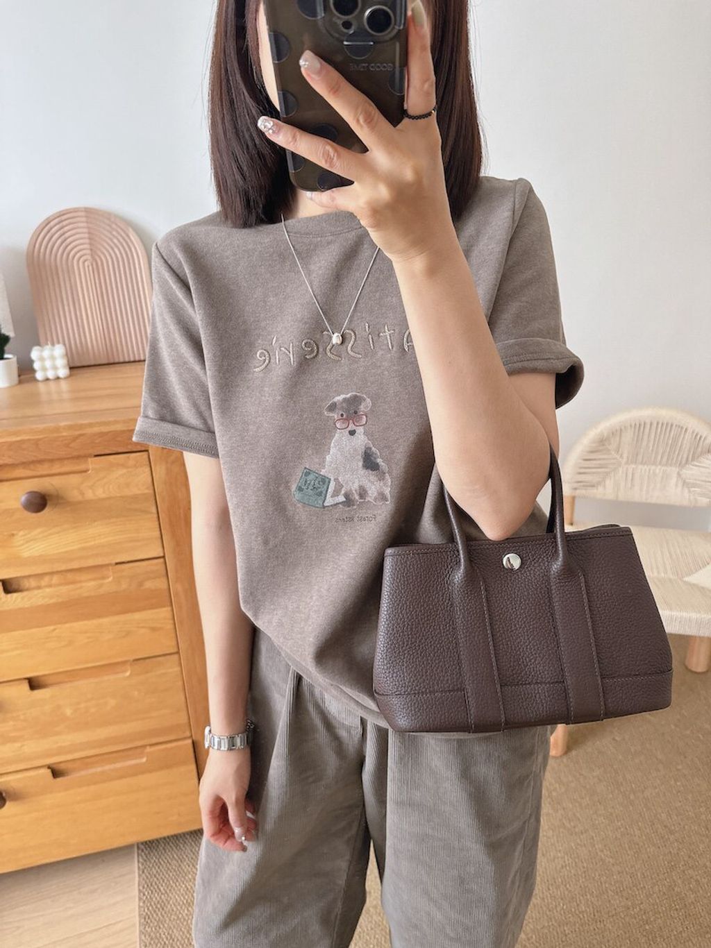 可愛手繪小狗狗短T*咖米深灰*【S0323-301】
