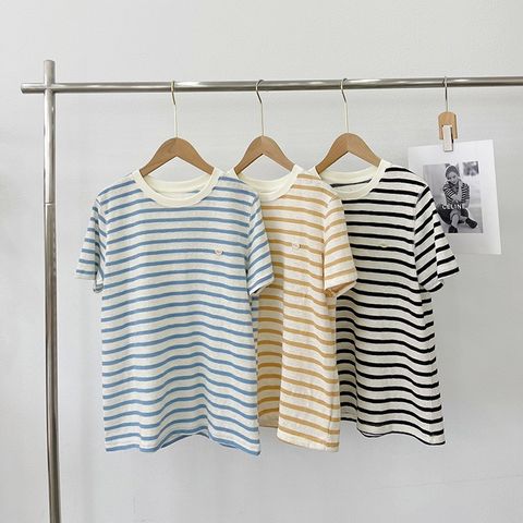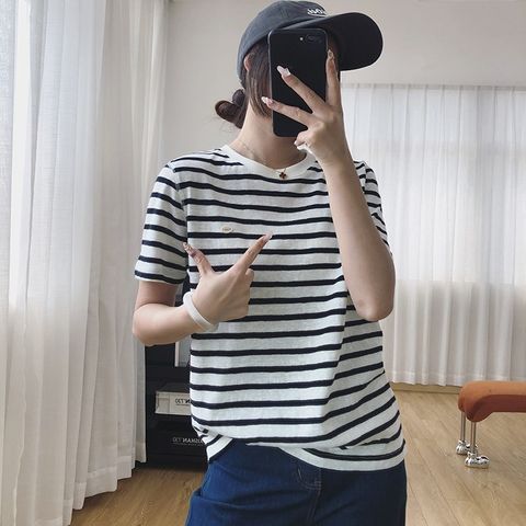 正韓 日系休閒風格條紋寬鬆上衣*黑米*【S1105-134】