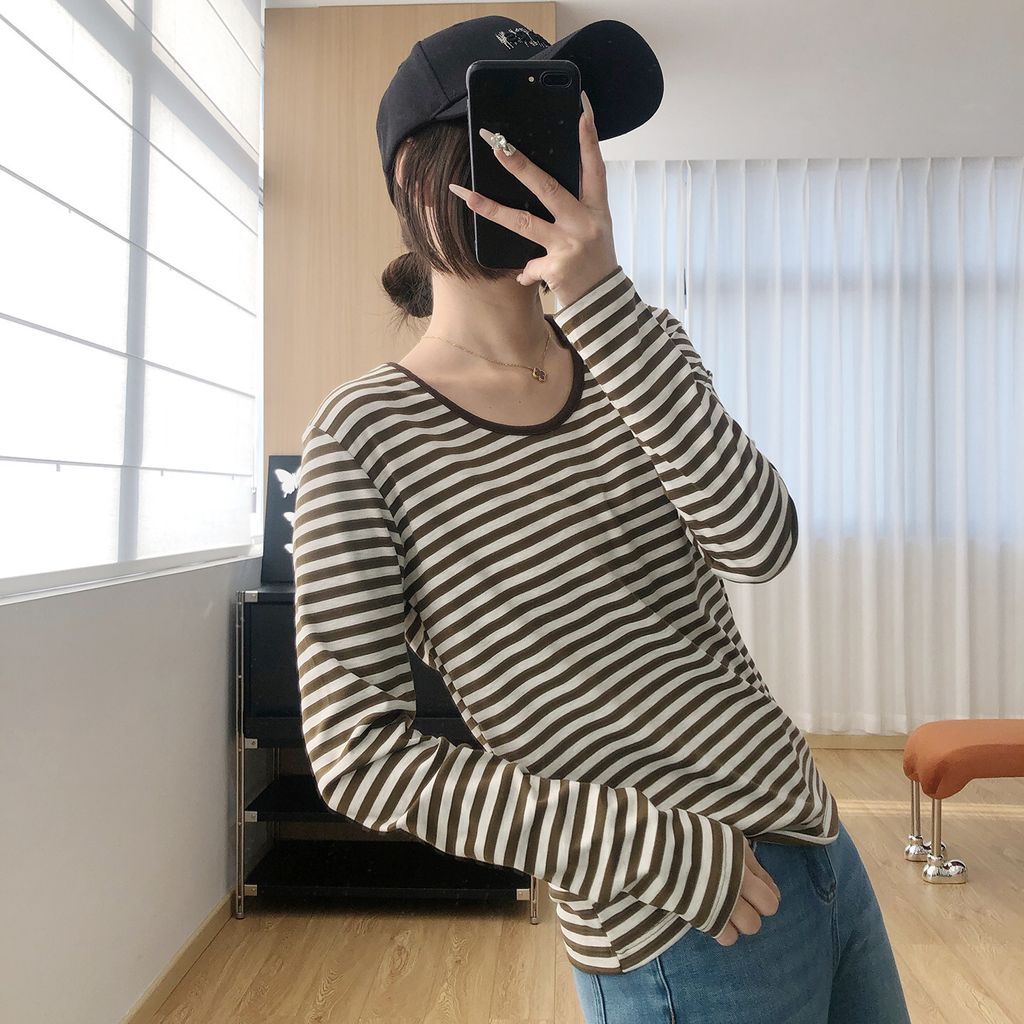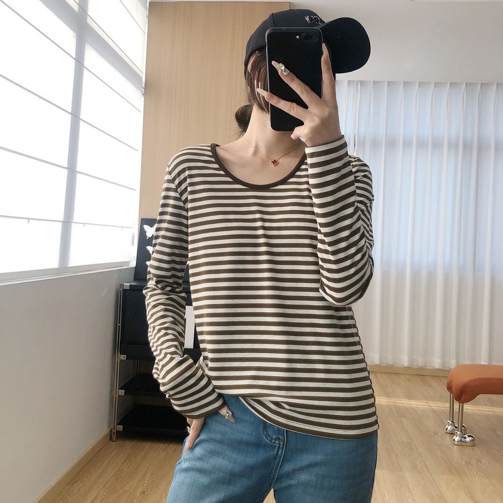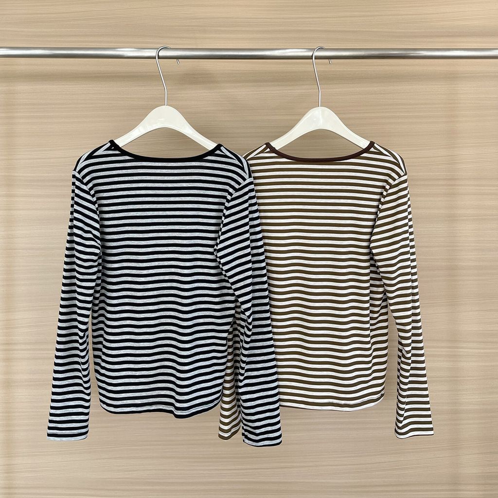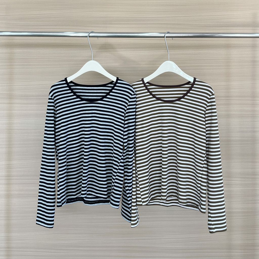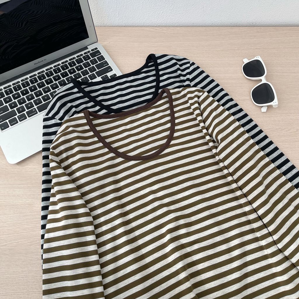 基本好搭撞色條紋天絲棉長T*灰黑條綠杏條*【S0228-55】