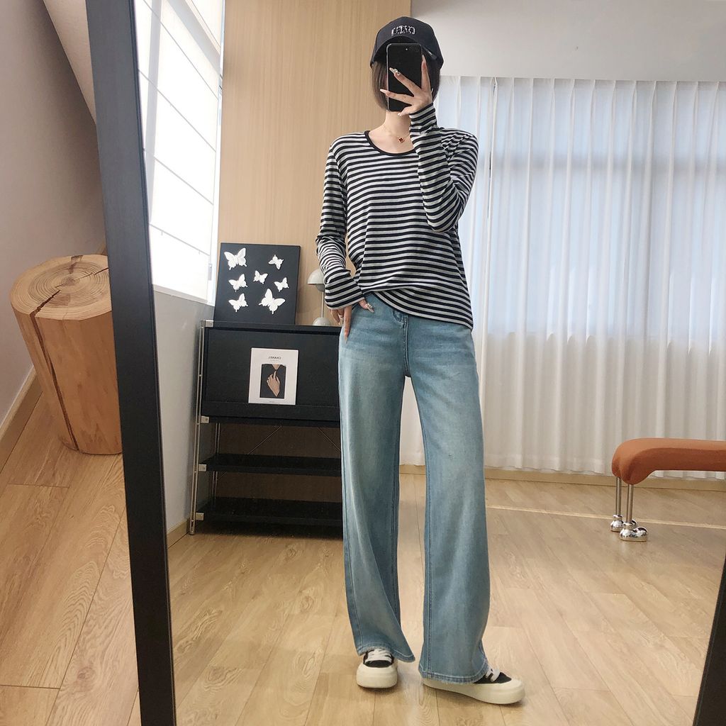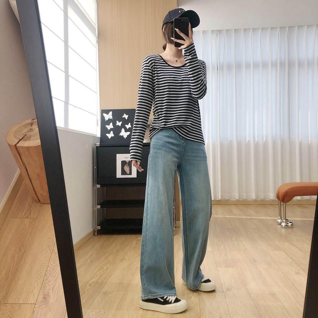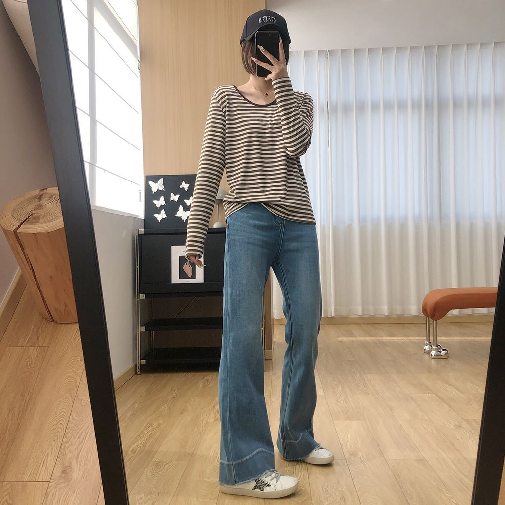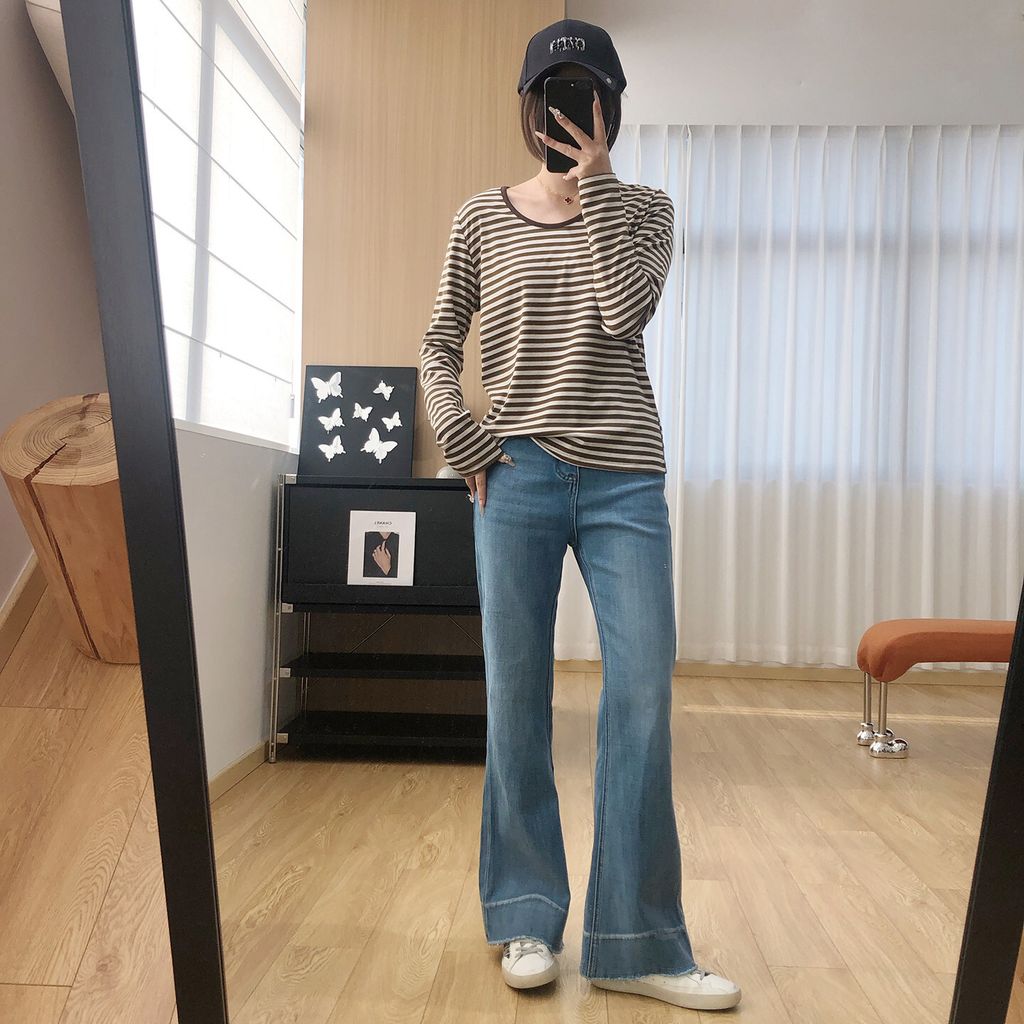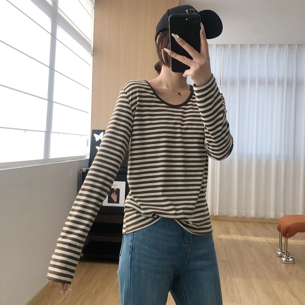 基本好搭撞色條紋天絲棉長T*灰黑條綠杏條*【S0228-55】