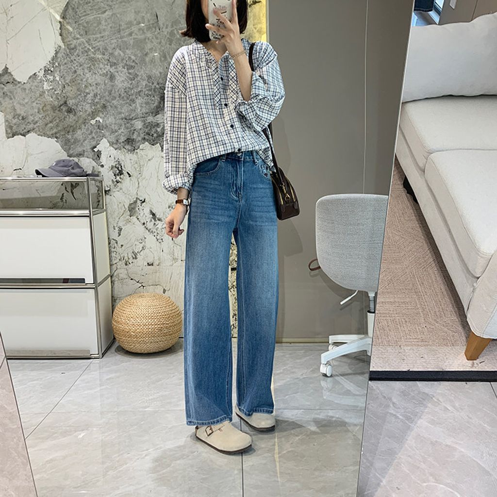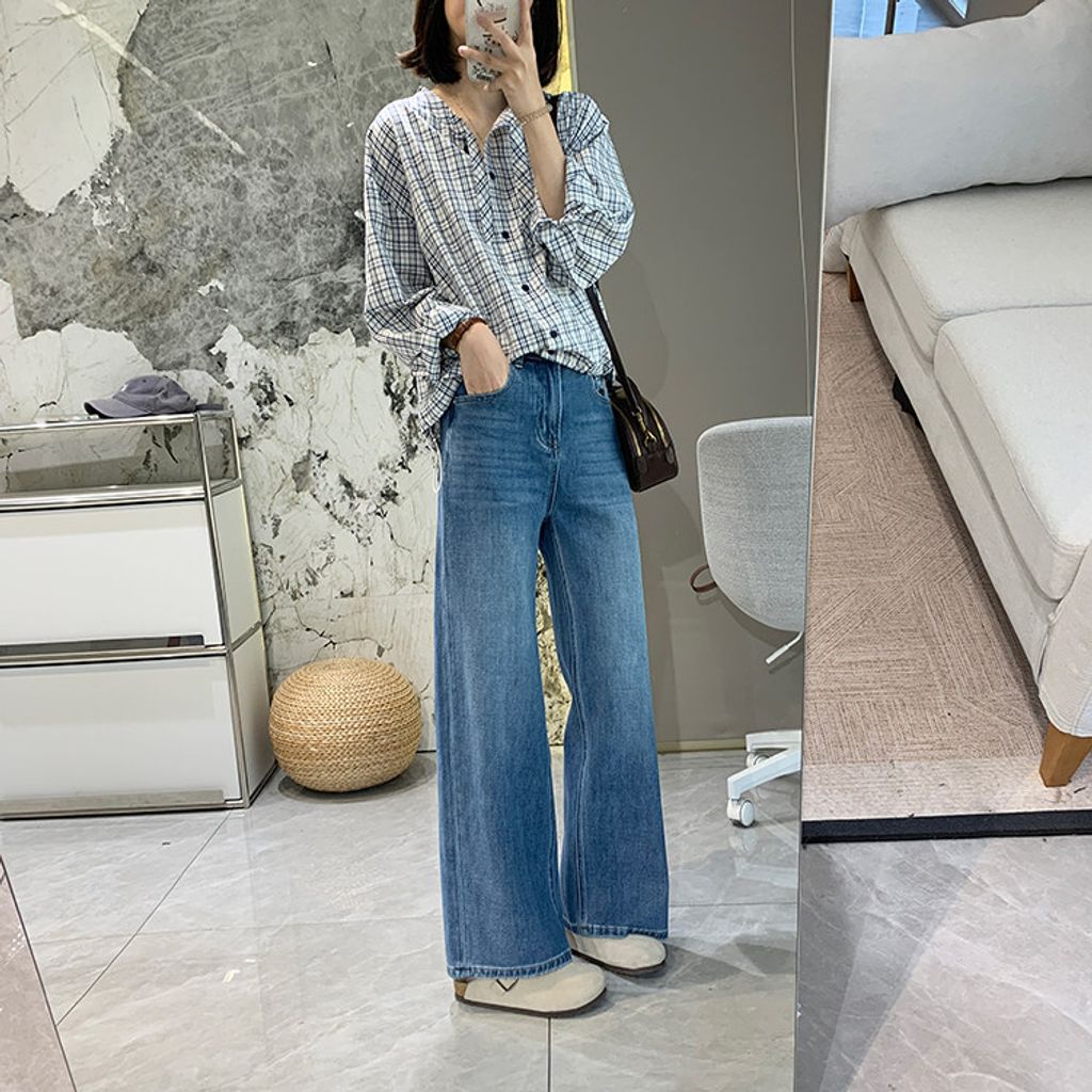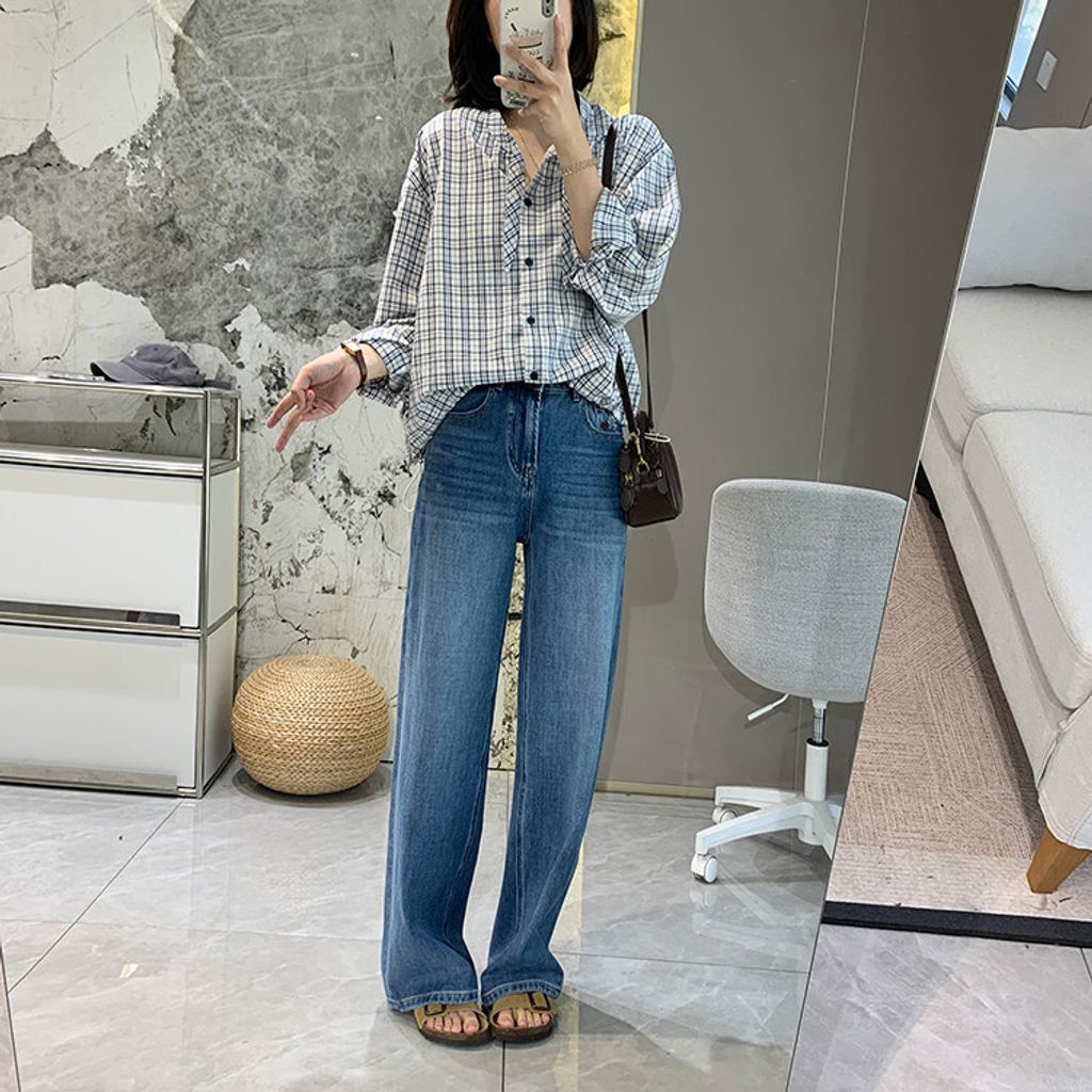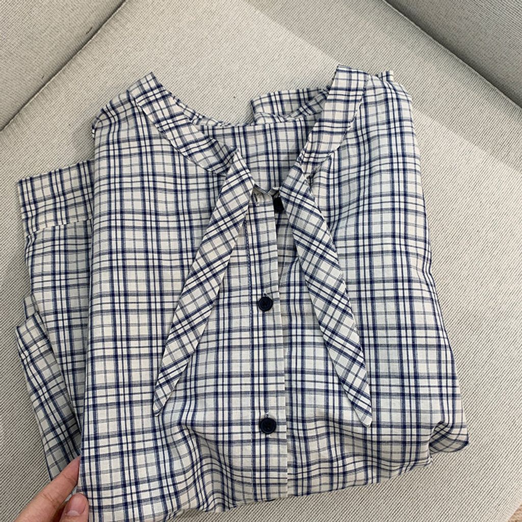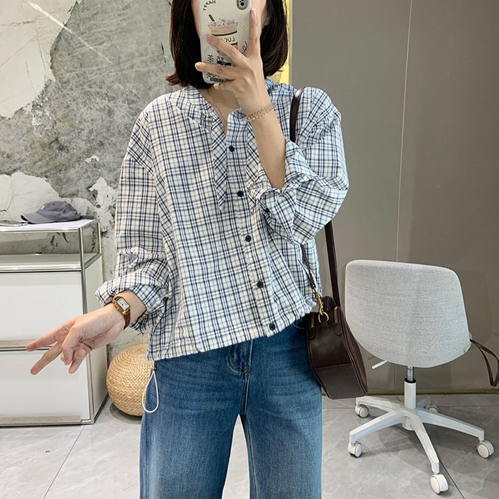 甜美格紋下擺抽繩質感襯衫*淺藍*【S0228-53】