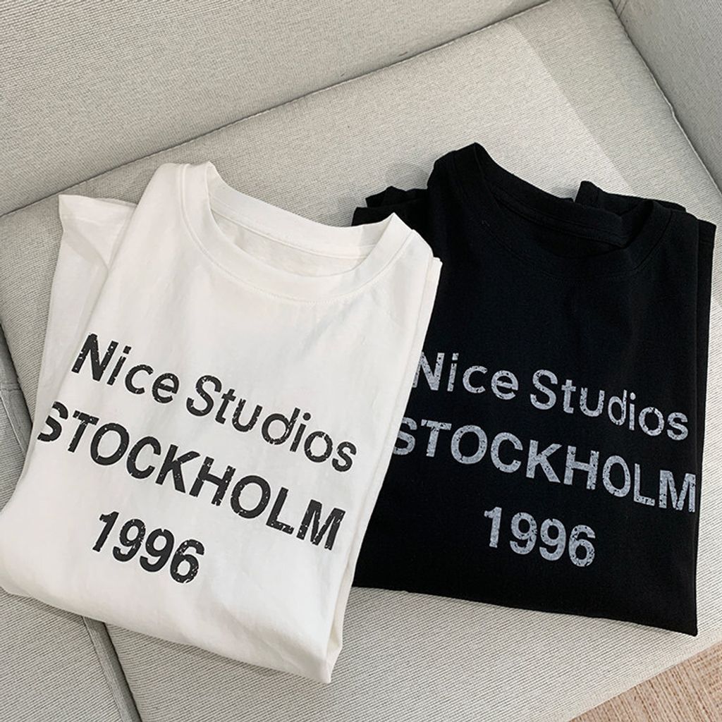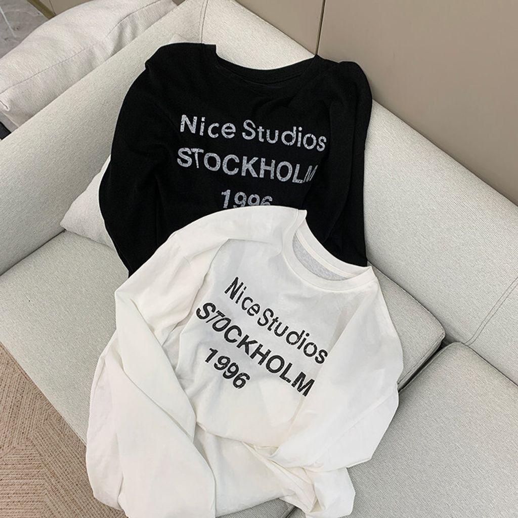 簡約字母設計雪花棉長T*黑白*【S0228-52】