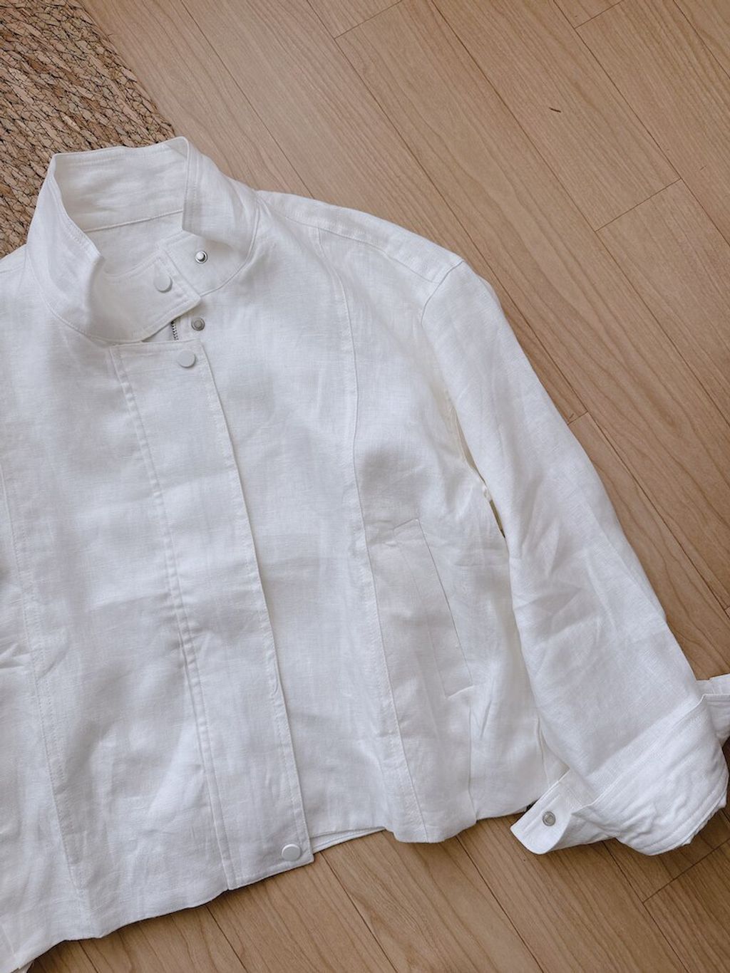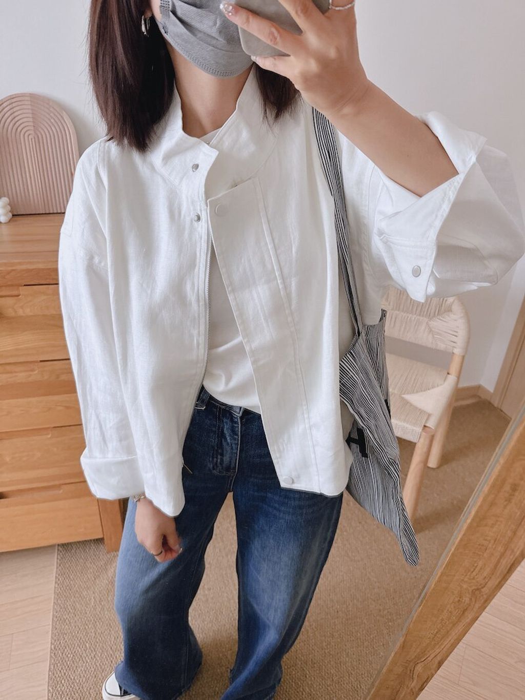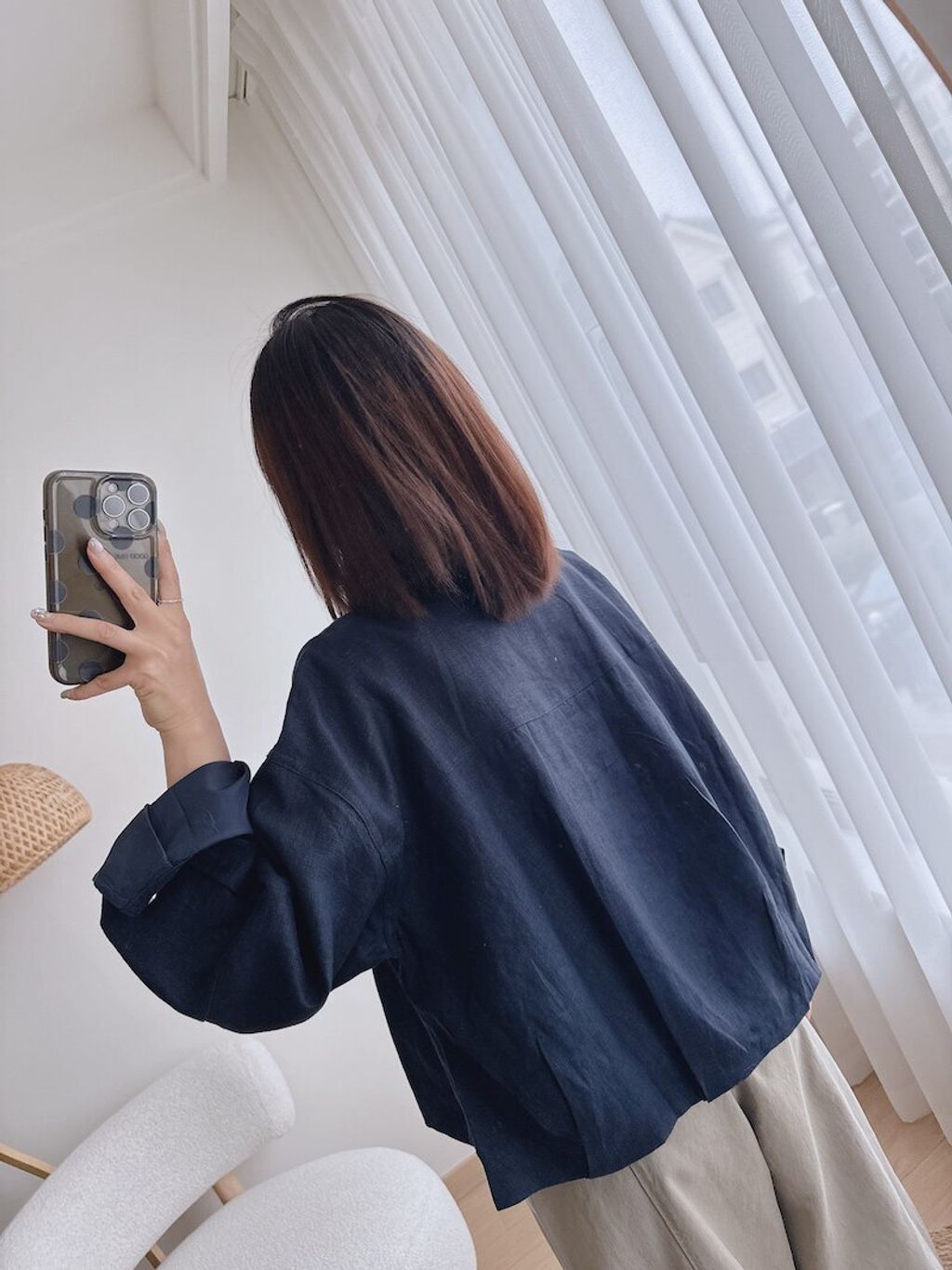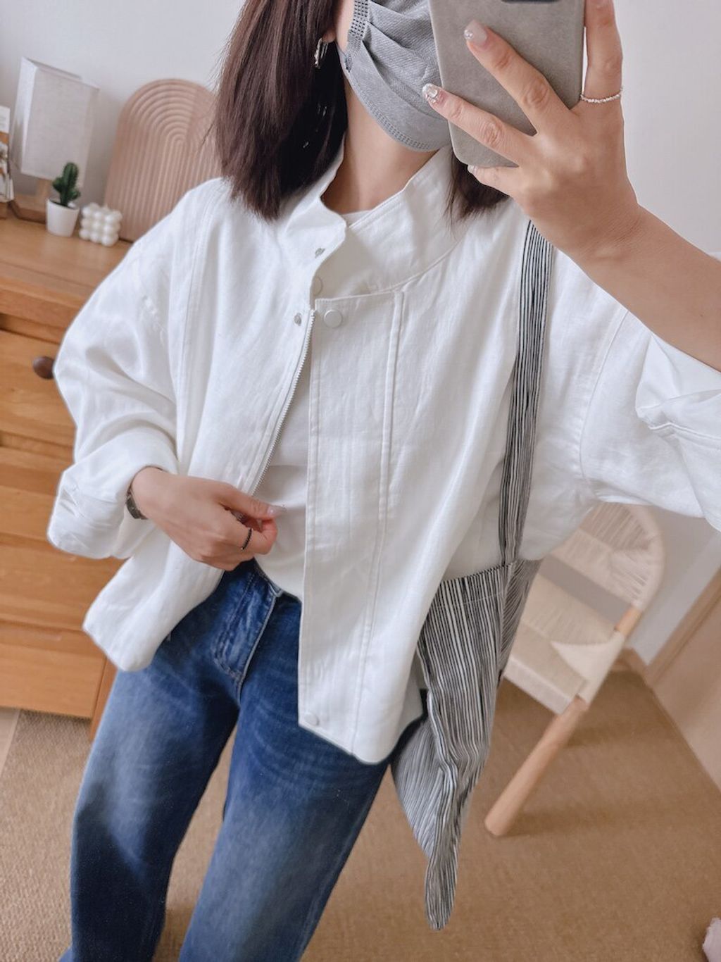 簡約設計感修飾款亞麻質感外套*深藍白*【S0323-134】