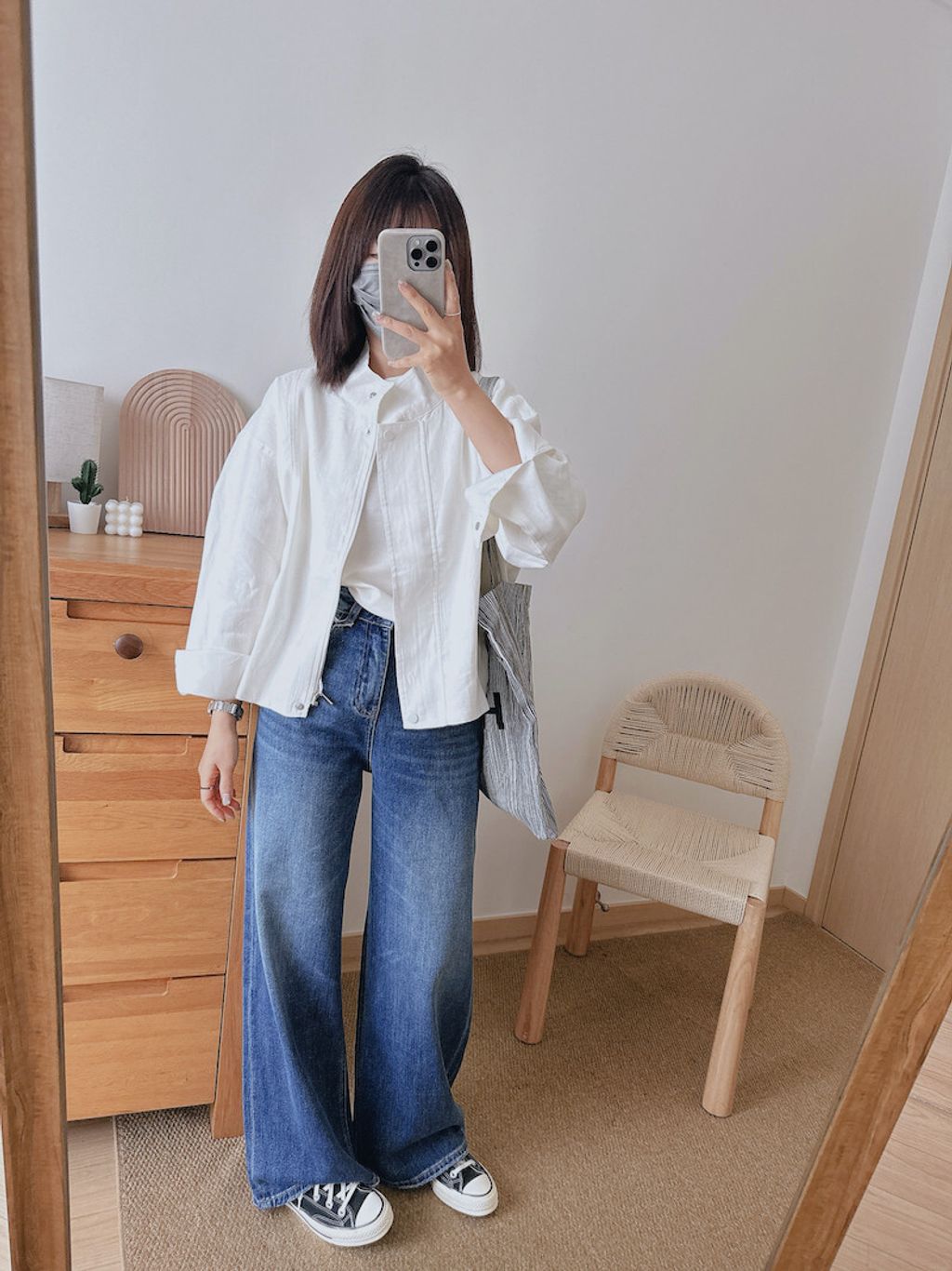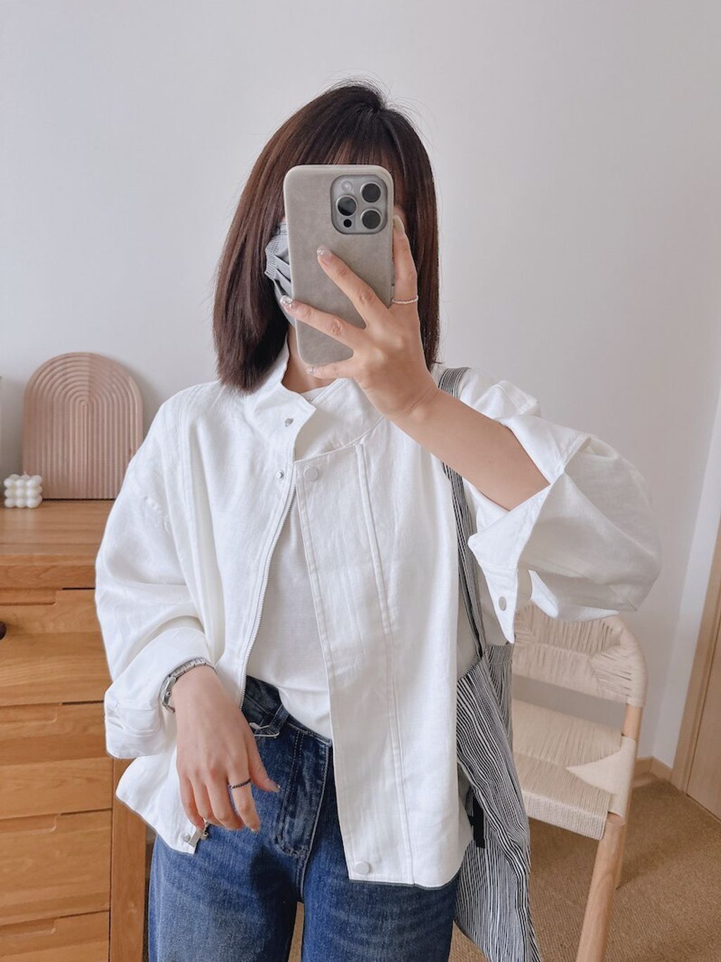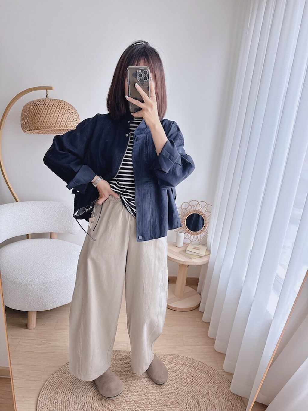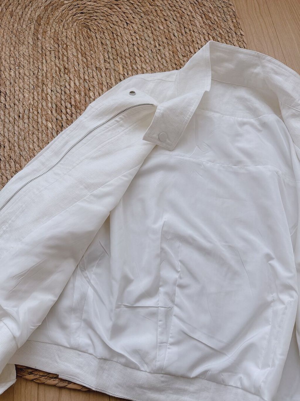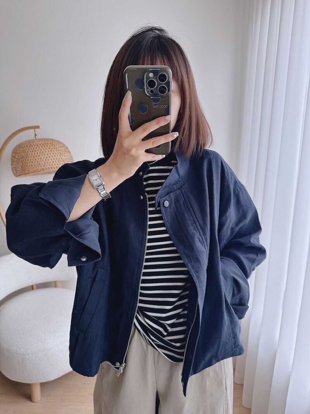 簡約設計感修飾款亞麻質感外套*深藍白*【S0323-134】