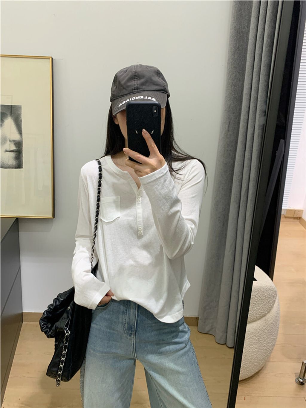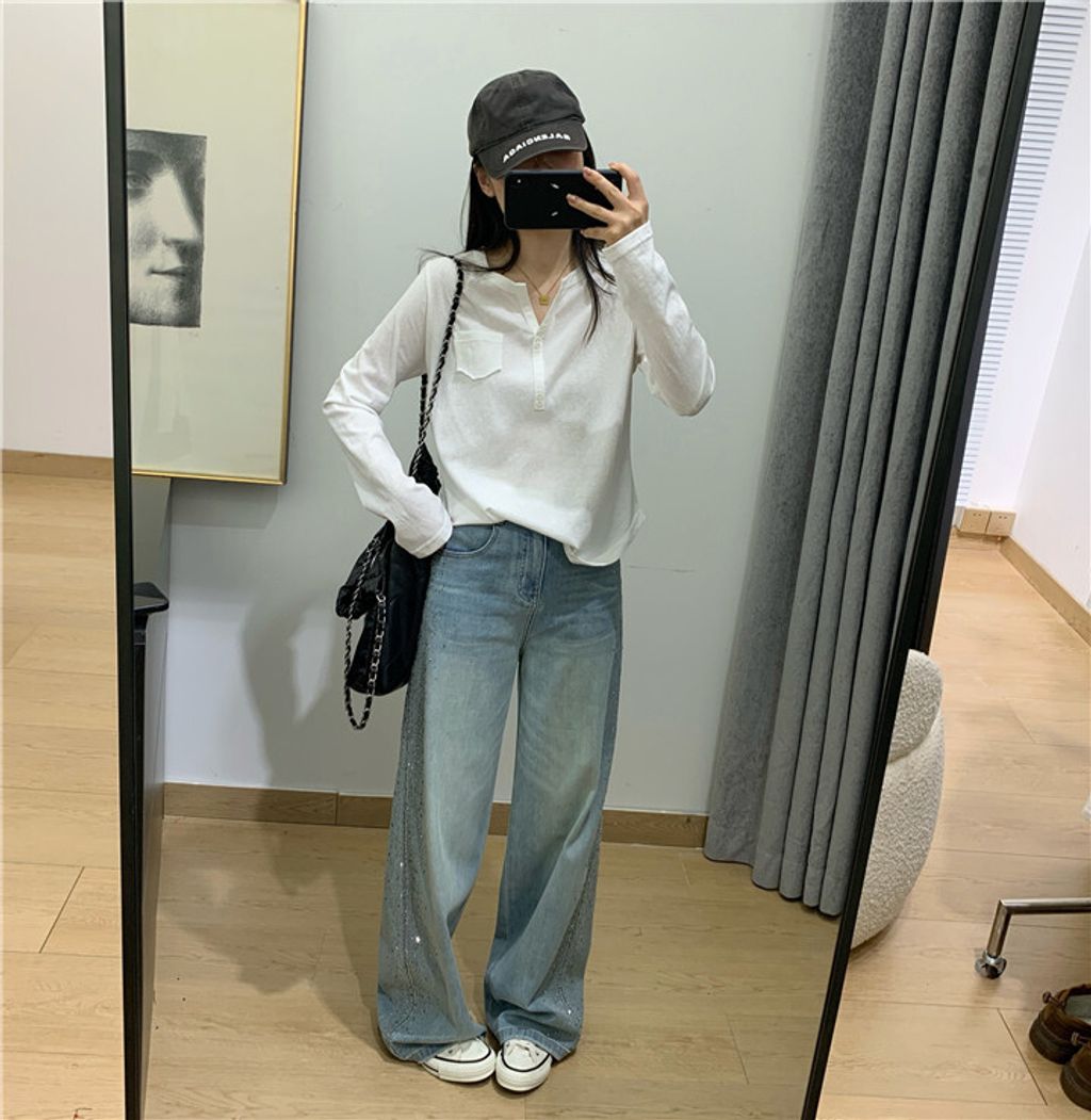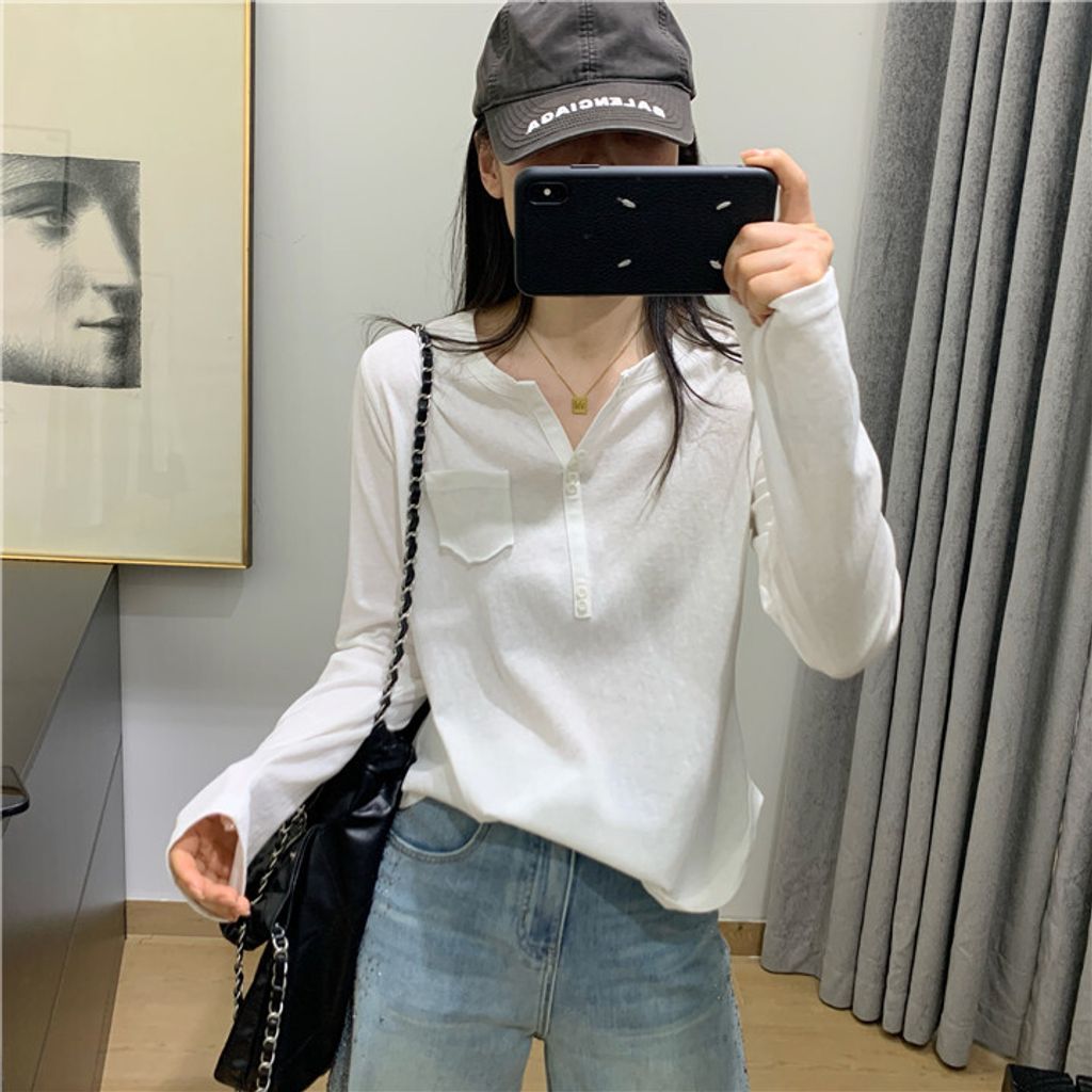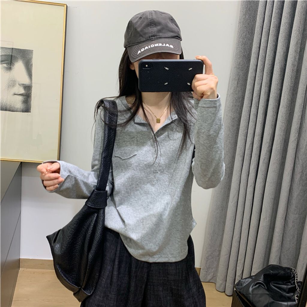 簡約雪花棉排釦親膚長T*黑米白花灰*【S0323-140】
